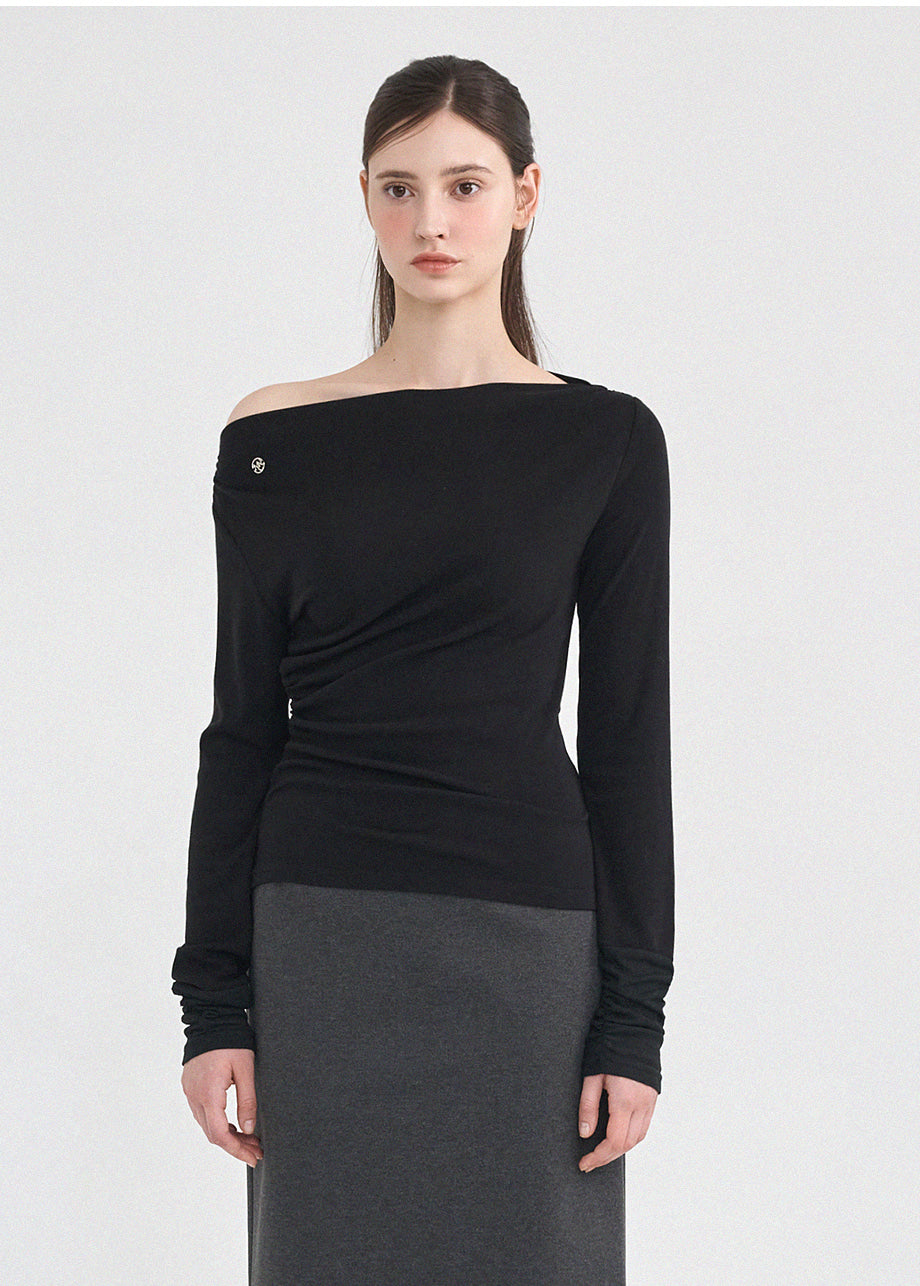 フェミニンなワンショルダーディテールを取り入れたTシャツ。柔らかな肌触りと軽やかな着心地で、ウエストと袖口のギャザーがスリムなラインを演出します。*装飾が施された製品のため、クリーニング専門店でのお手入れをおすすめいたします。やむを得ず洗濯機をご使用の際は、ネットに入れて冷水で洗濯することをおすすめいたします。