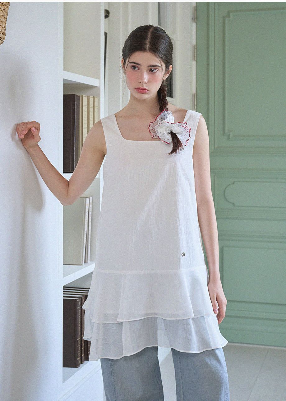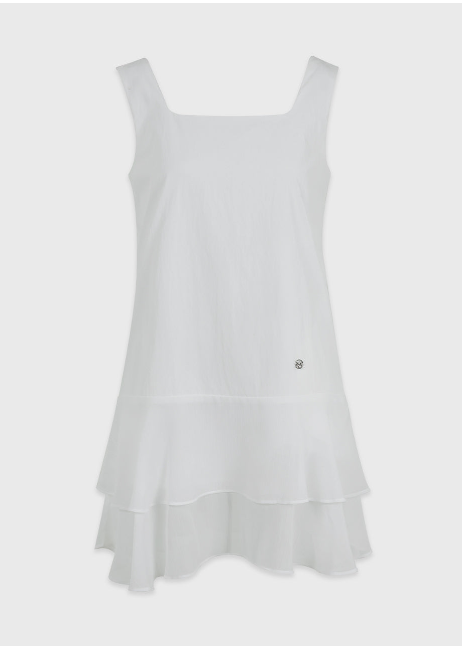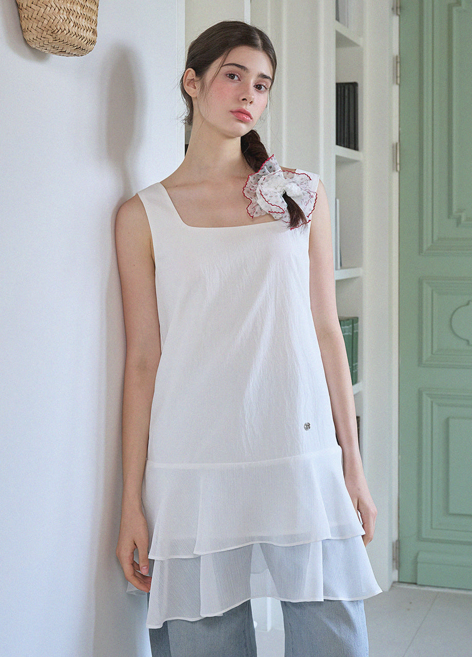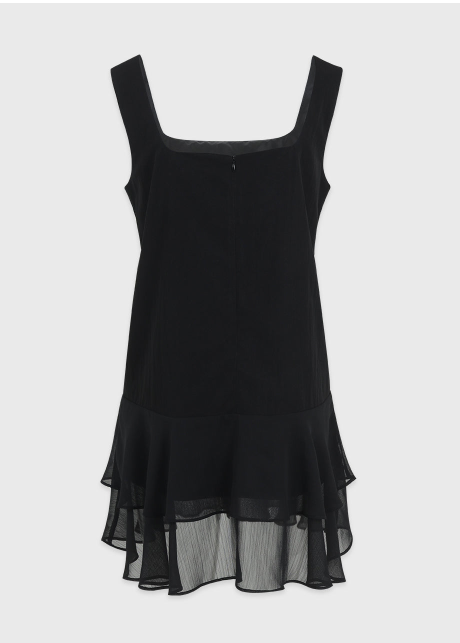 ヴィンテージ×ラブリームードのレイヤードミニドレス。軽やかなシフォンのフリルヘムがロマンチックな印象を与え、単品でもレイヤードでも楽しめます。*装飾が施された製品のため、クリーニング専門店でのお手入れをおすすめいたします。