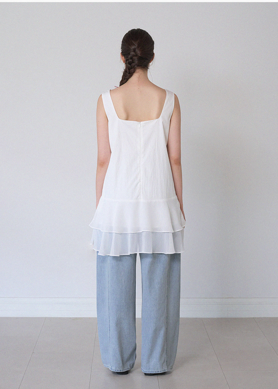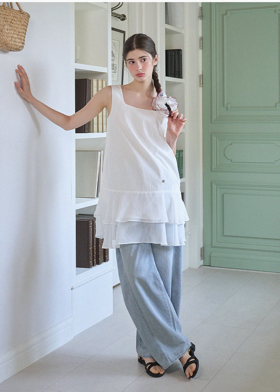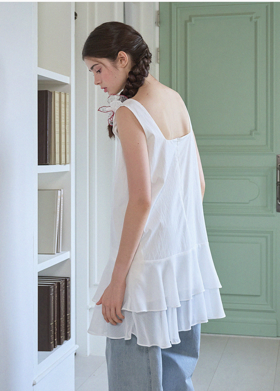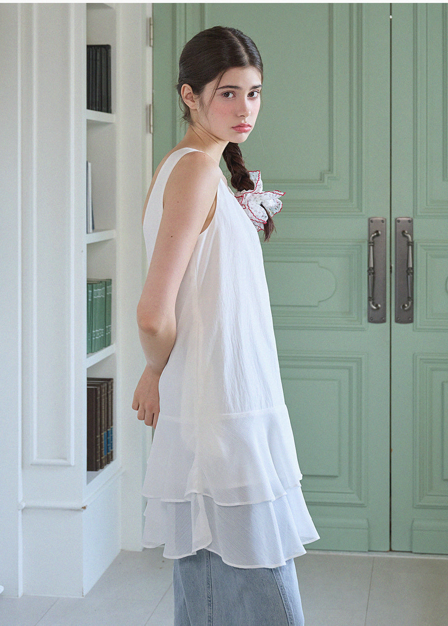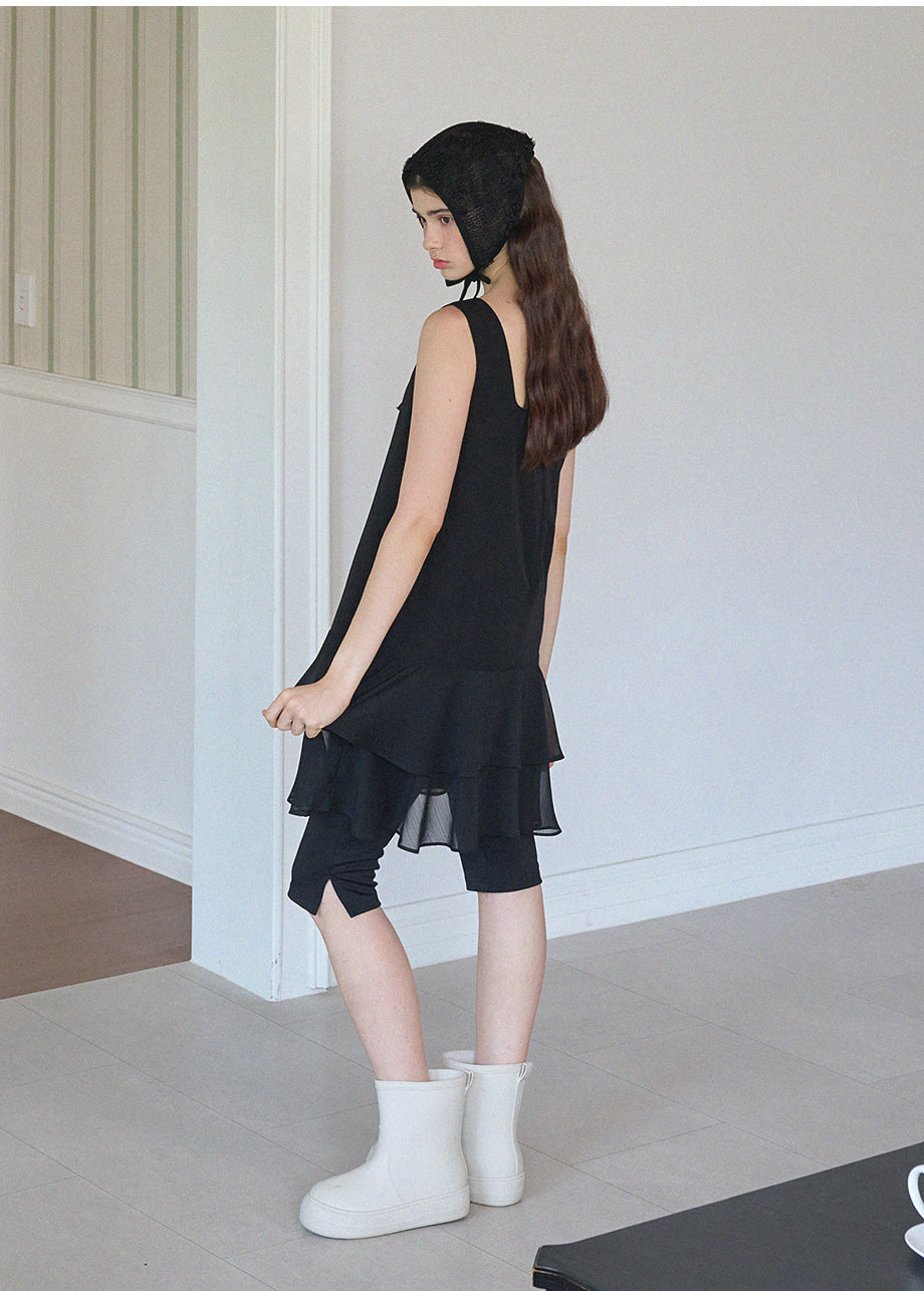 ヴィンテージ×ラブリームードのレイヤードミニドレス。軽やかなシフォンのフリルヘムがロマンチックな印象を与え、単品でもレイヤードでも楽しめます。*装飾が施された製品のため、クリーニング専門店でのお手入れをおすすめいたします。