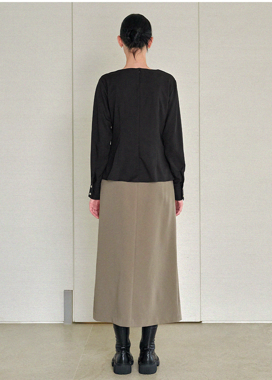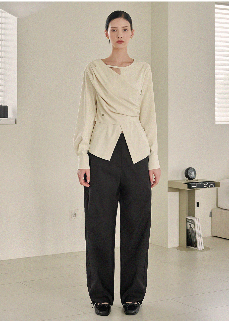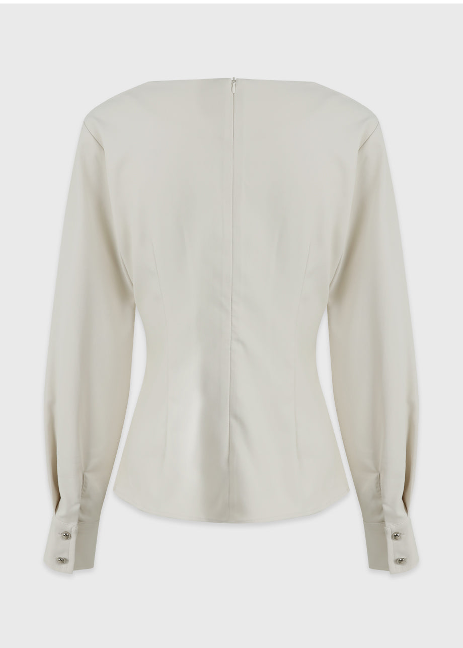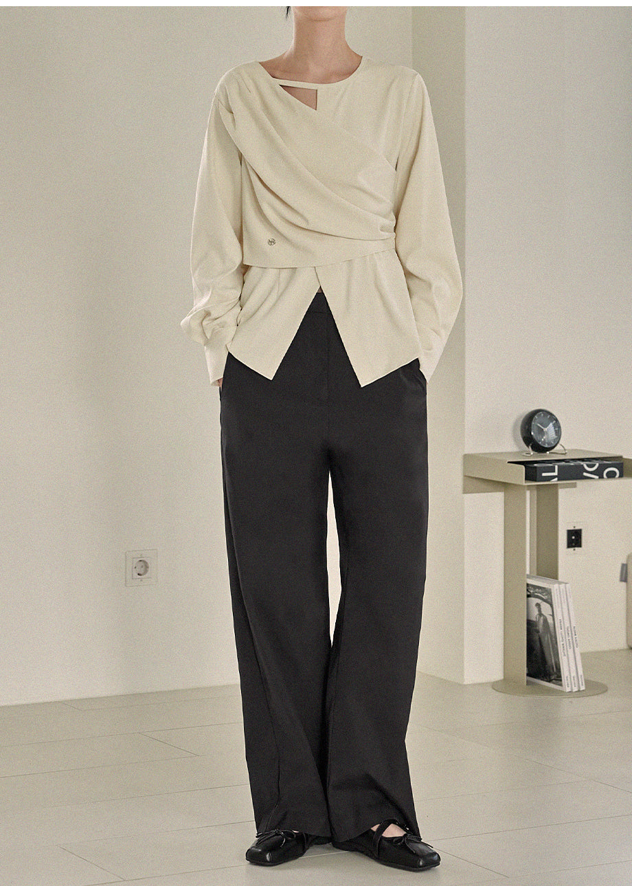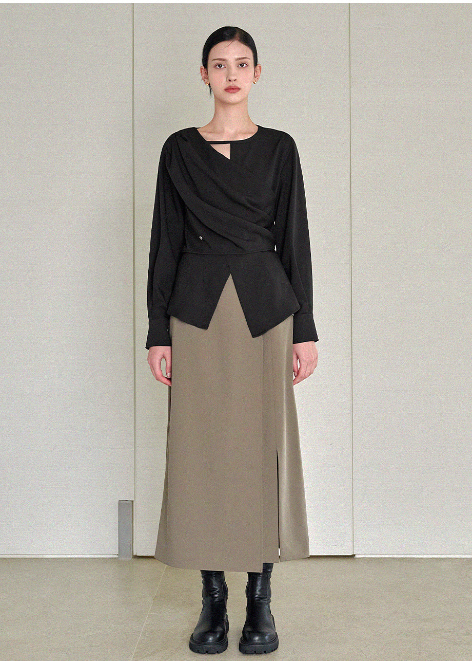 フェミニンで高級感のあるブラウスです。耐久性に優れた生地でフィットとクオリティを高め、ドレープの効いたラップ風レイヤードデザインで洗練されたスタイリングが可能です。