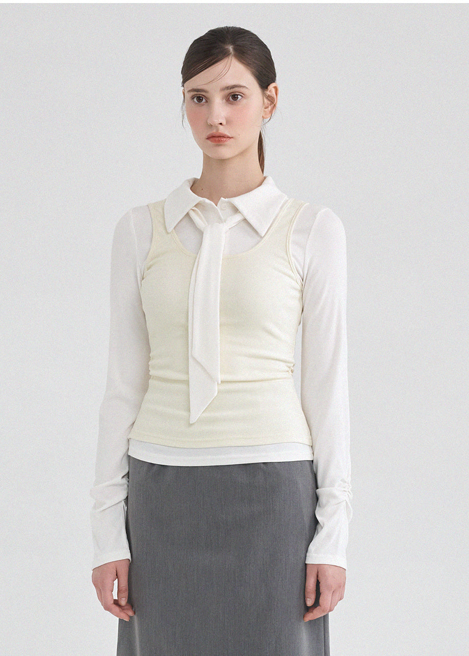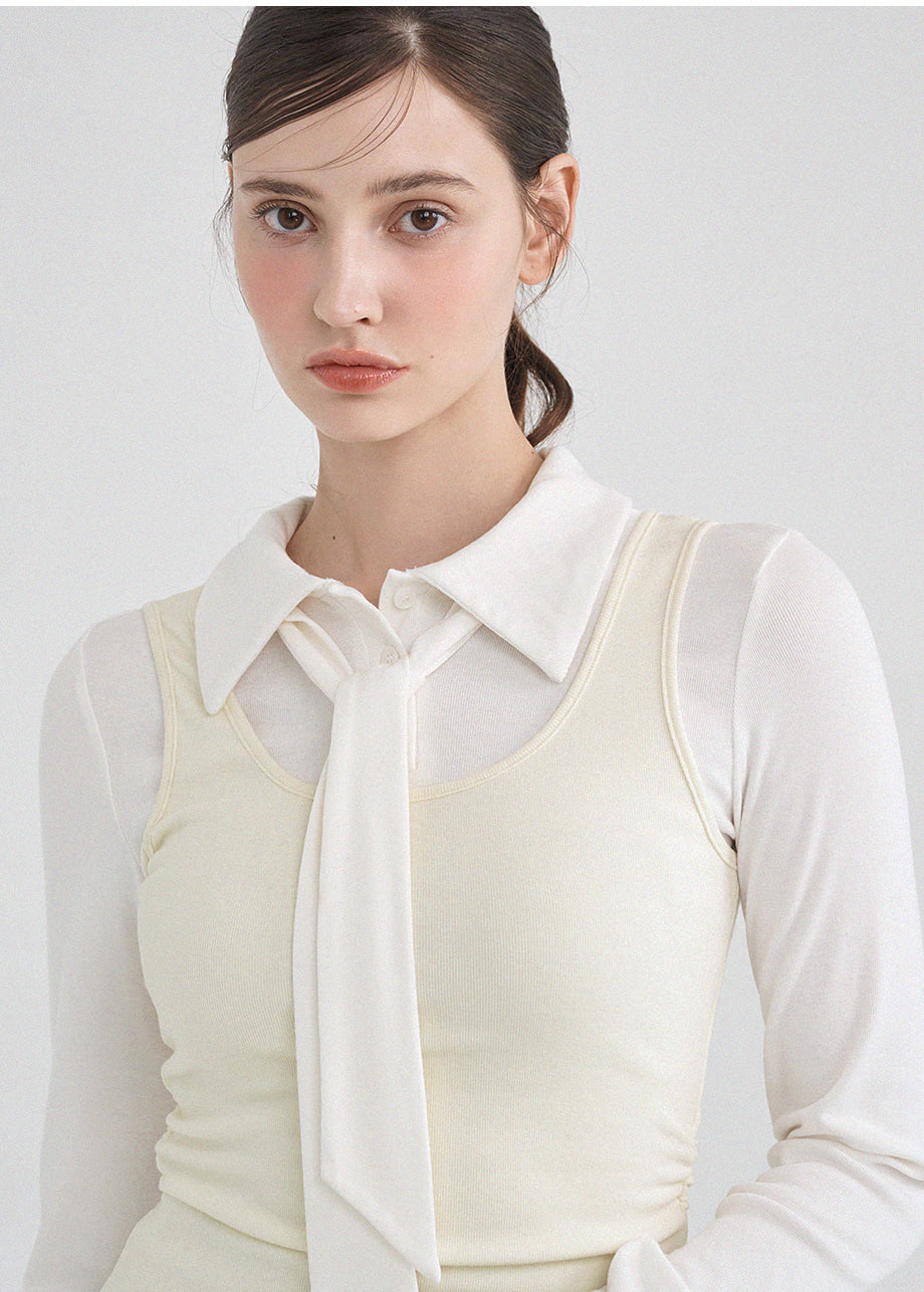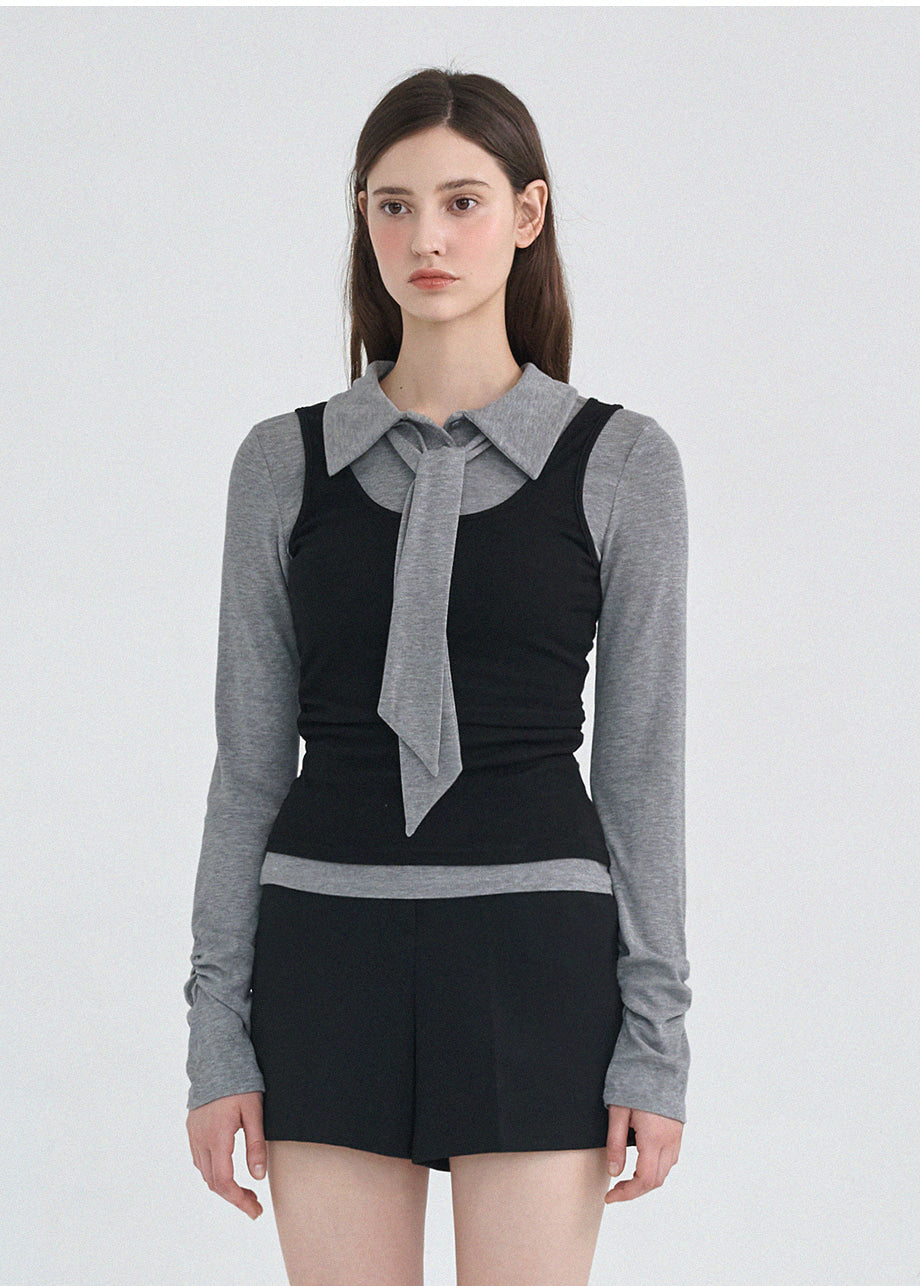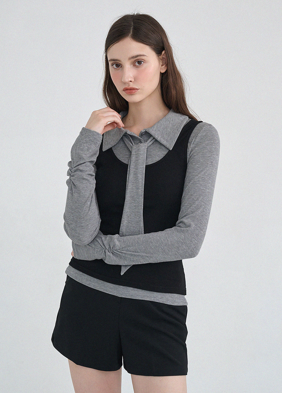 クラシックかつシックなムードのTシャツです。滑らかな手触りで着心地も良く、タイがセットになってさらに色んなスタイリングが楽しめます。袖とウエストのシャーリングディテールを加えてスリムなシルエットも演出できます。*装飾や特殊なデザインが施された製品のため、クリーニング専門店でのお手入れをおすすめいたします。