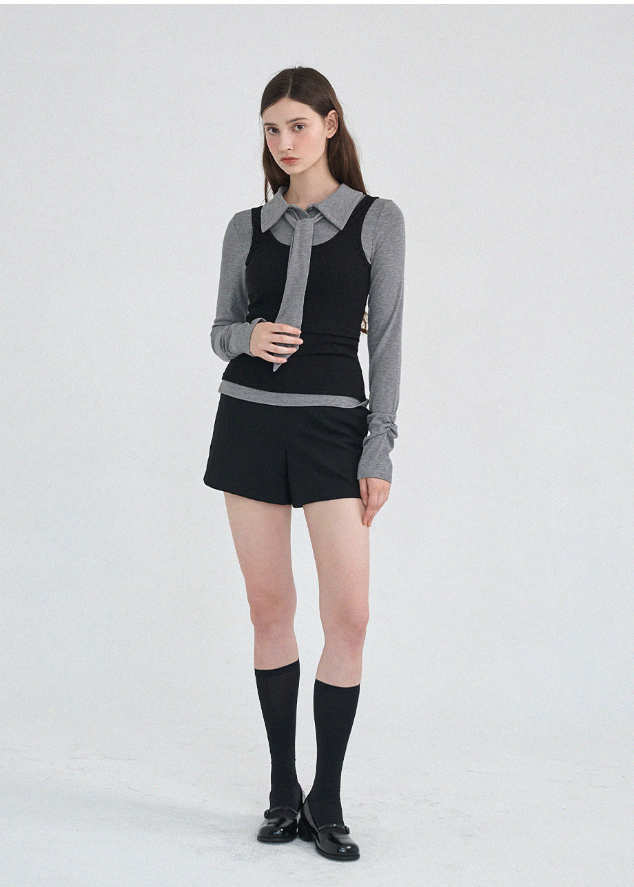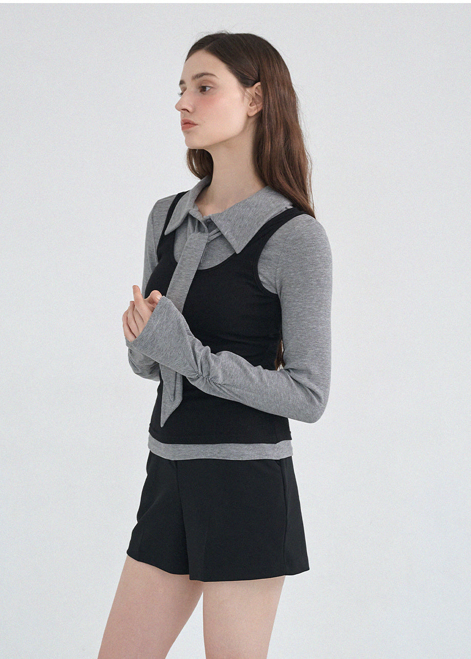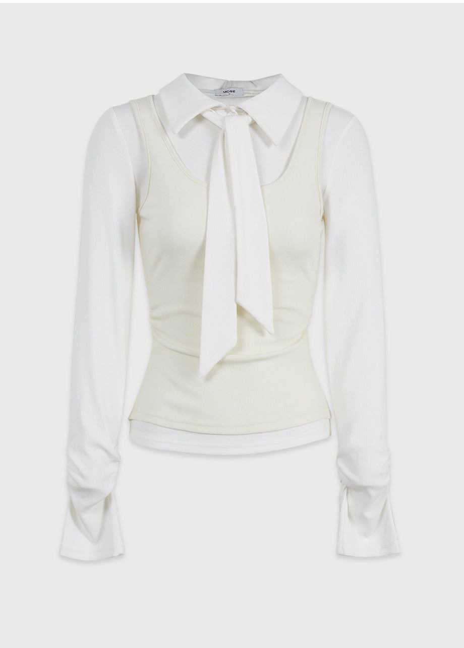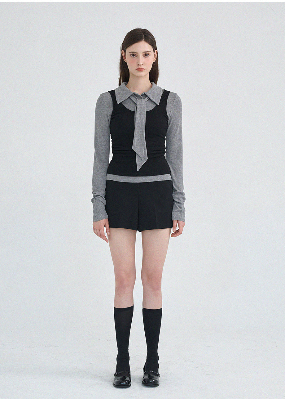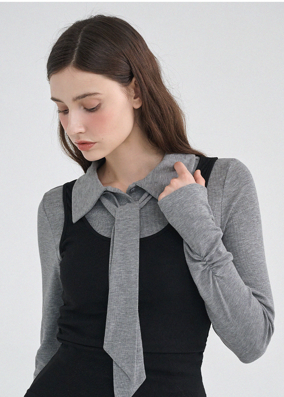 クラシックかつシックなムードのTシャツです。滑らかな手触りで着心地も良く、タイがセットになってさらに色んなスタイリングが楽しめます。袖とウエストのシャーリングディテールを加えてスリムなシルエットも演出できます。*装飾や特殊なデザインが施された製品のため、クリーニング専門店でのお手入れをおすすめいたします。
