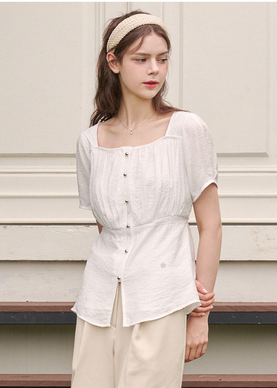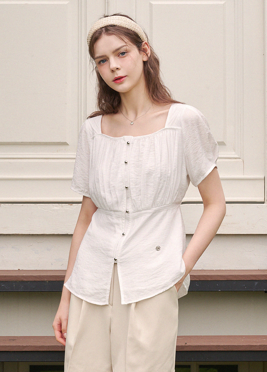 ラブリーでデイリーなムードのブラウスです。涼しく軽やかな素材を使用し、夏のシーズンを快適にお過ごしいただけます。