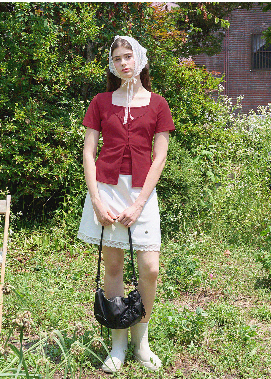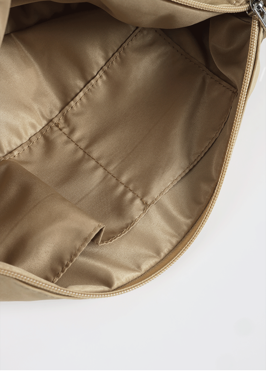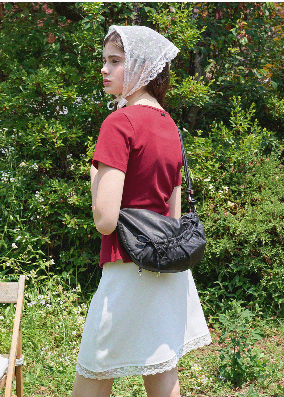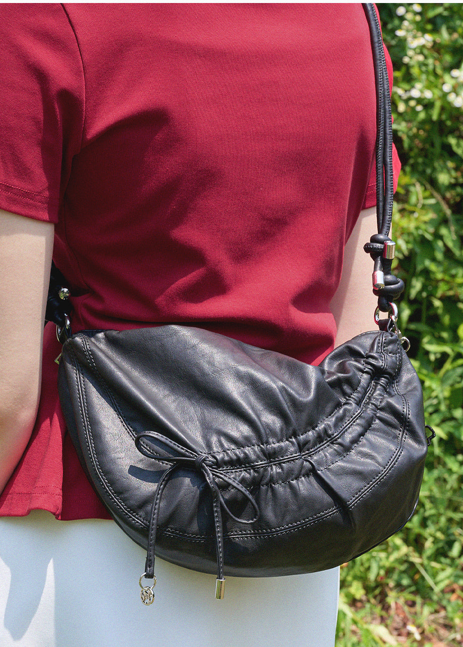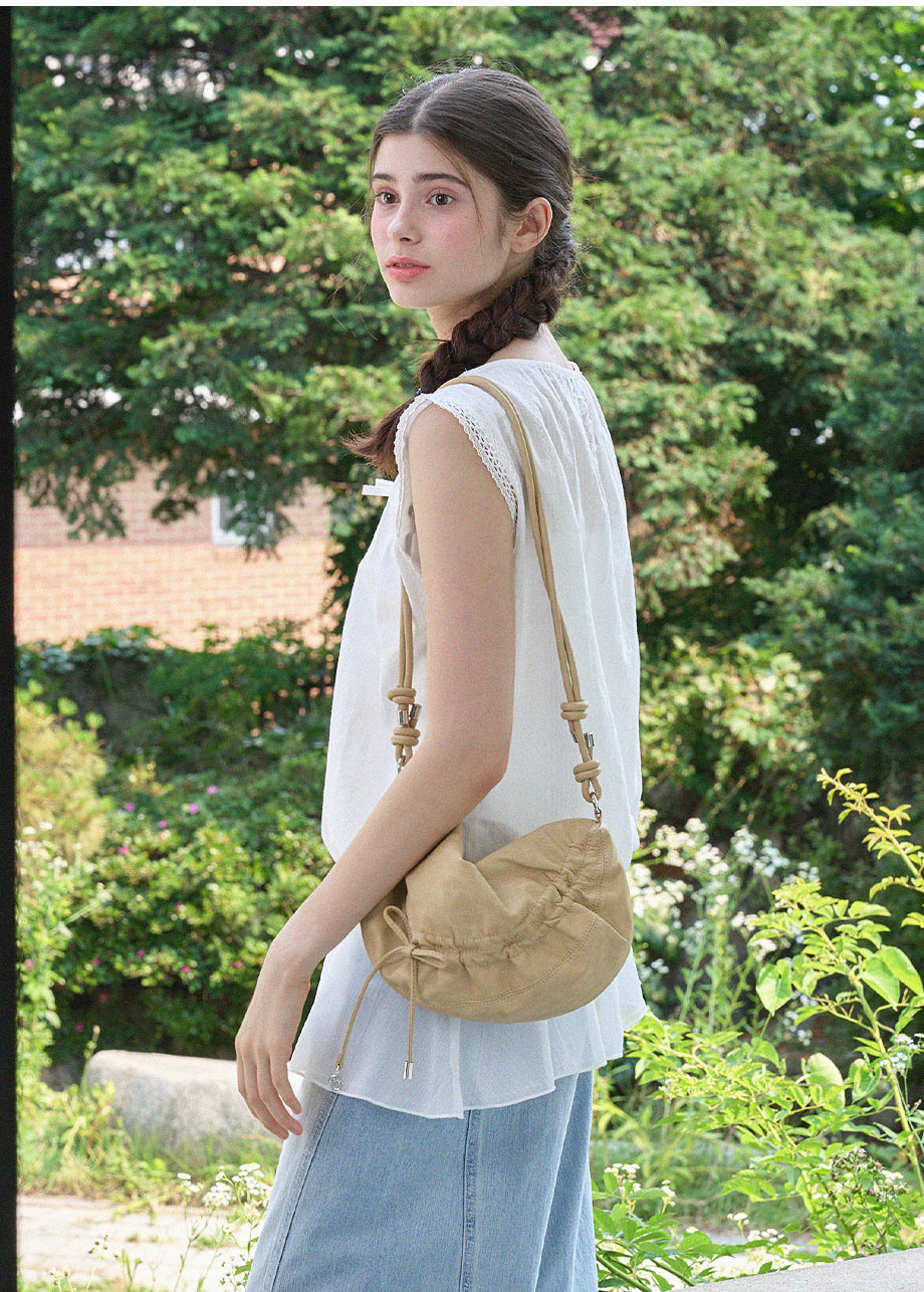 フロントにビーズとペンダントの装飾が施された、ヴィンテージ感漂うストリングバッグ。日常スタイルに個性的なレトロ感をプラスします。