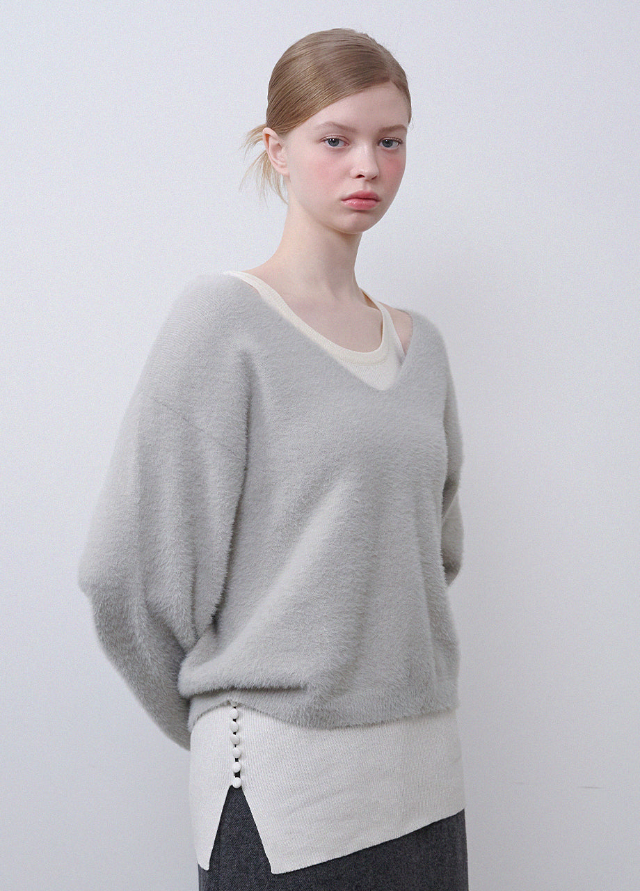 Belita Hairy Knit-Wool Sleeveless Setup