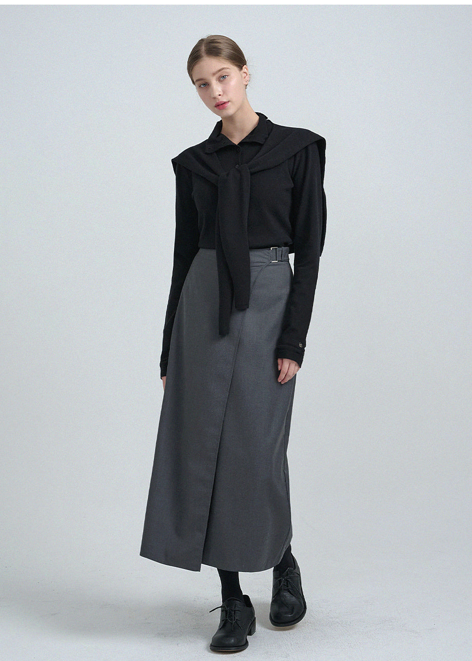 クラシックなムードが際立つロングスカート。耐久性に優れた生地を使用し、快適なフィット感と着心地の良さが魅力です。Iラインにすっきりと落ちるシルエットで、洗練された印象に。バックにはスリットを施し、動きやすさにも配慮しました。裏地付きで、一日中快適な着用感をキープします。シンプルでありながら、さまざまなコーディネートに活躍できる万能デザイン。さらに、ラップスタイルを引き立てるペンダントディテールで、デザイン性とクオリティをさらに高めました。*装飾や特殊なデザインが施された製品のため、クリーニング専門店でのお手入れをおすすめいたします。