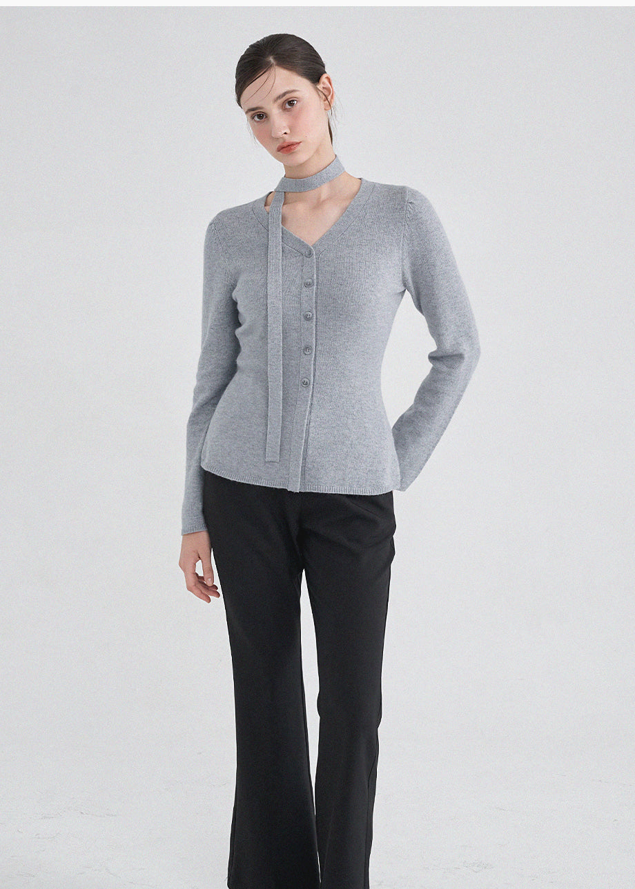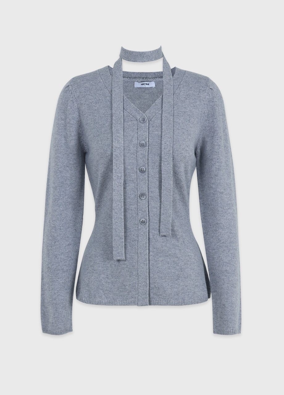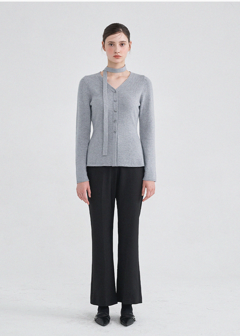 クラシックフェミニンムードのニットです。上質な天然繊維として知られるアンゴラとウールをブレンドした柔らかい素材で上品な着心地が特徴。セットのタイストラップで様々なスタイリングが楽しめます。Vネックデザインにフェイクボタンディテールを加えてクラシックなムードも演出できます。ウエストのラインを整えて裾のペプラムデザインで制作され、体型をカバーしつつ、よりスリムな着こなしを叶えてくれます。肩のピンタックがおしゃれなポイントになり、ネック後ろ中央にはペンダントで装飾を施し、上品に仕上げました。*装飾が施された製品のため、クリーニング専門店でのお手入れをおすすめいたします。ご注意:濃色に白い毛が見える場合がありますが、天然素材の特性であり、不良品ではございません。