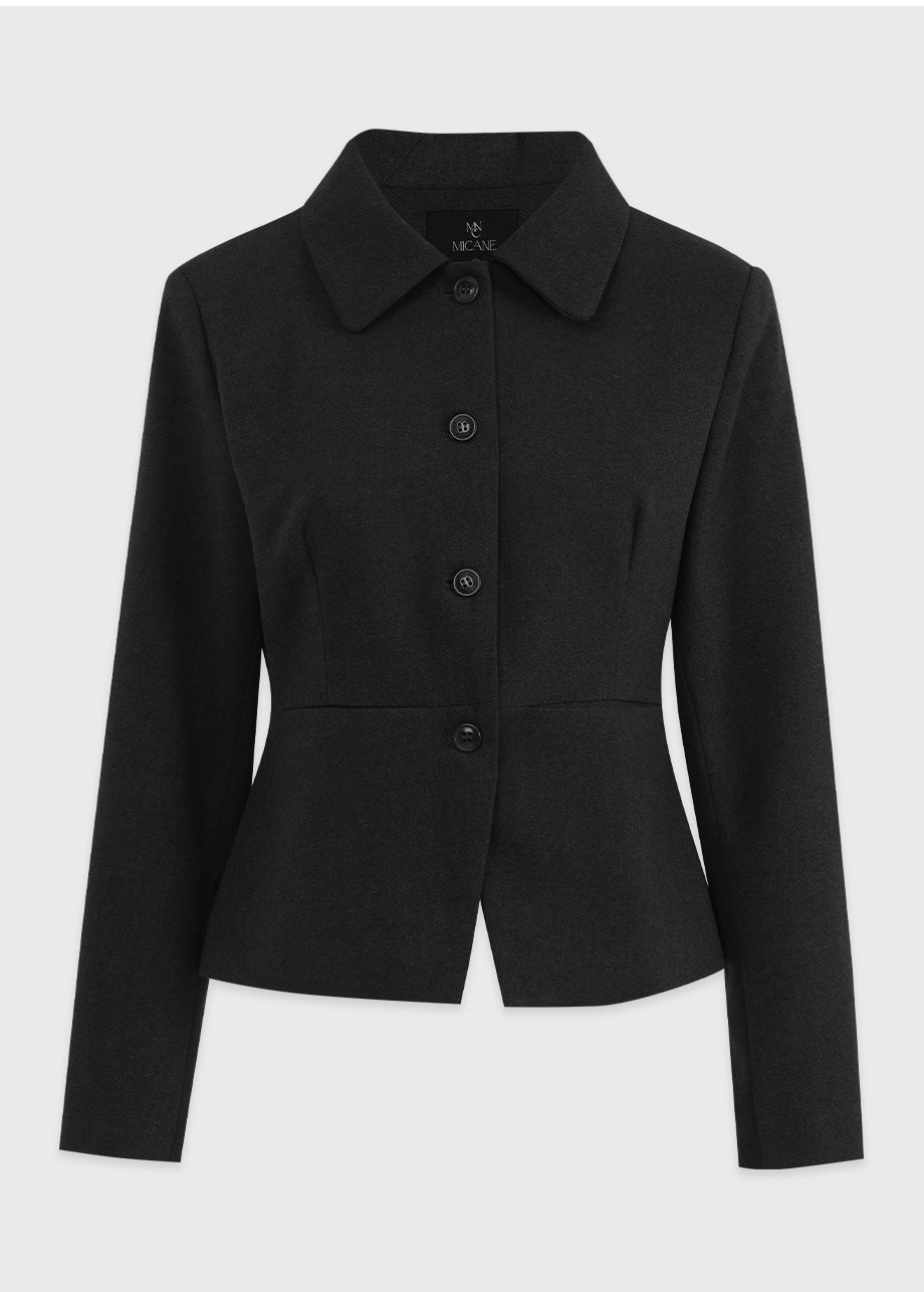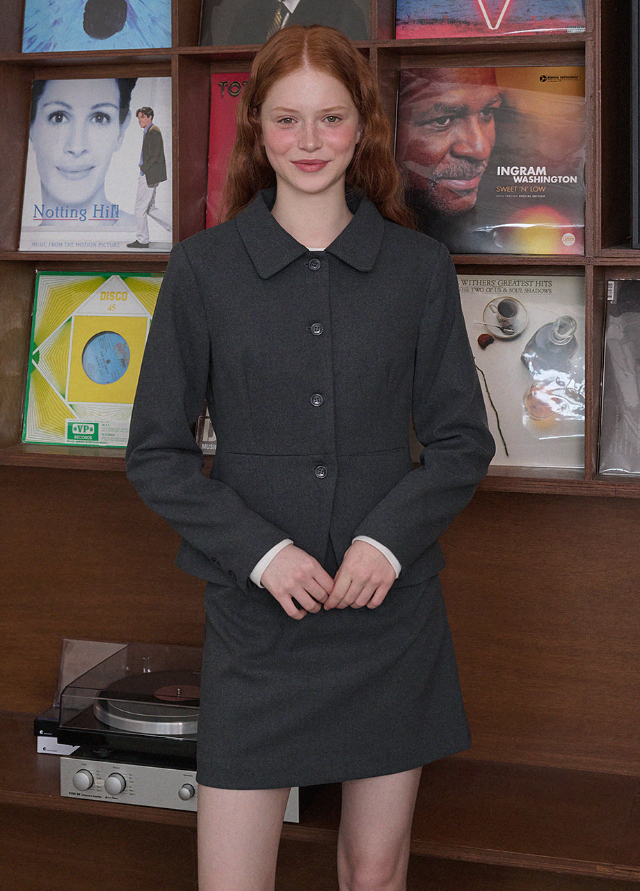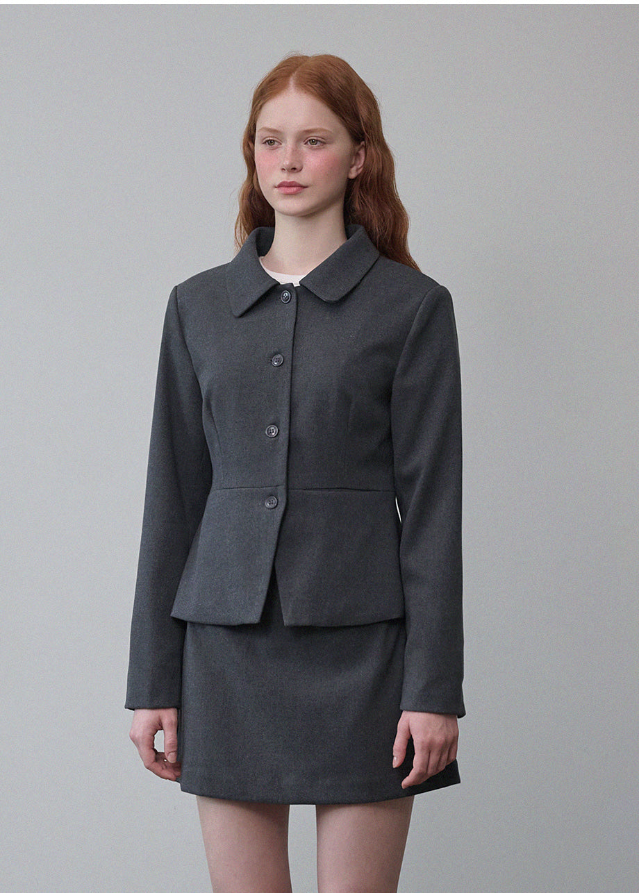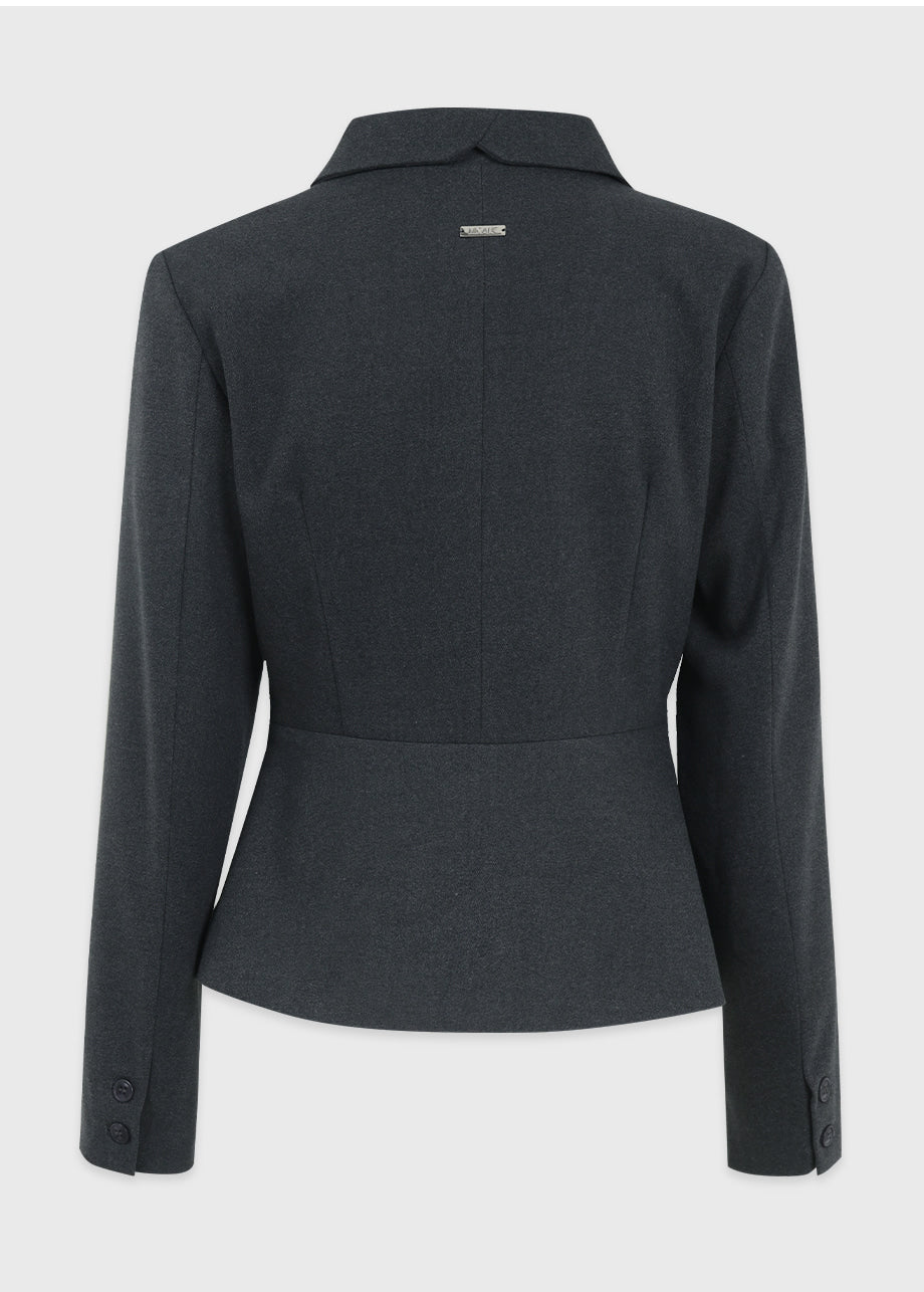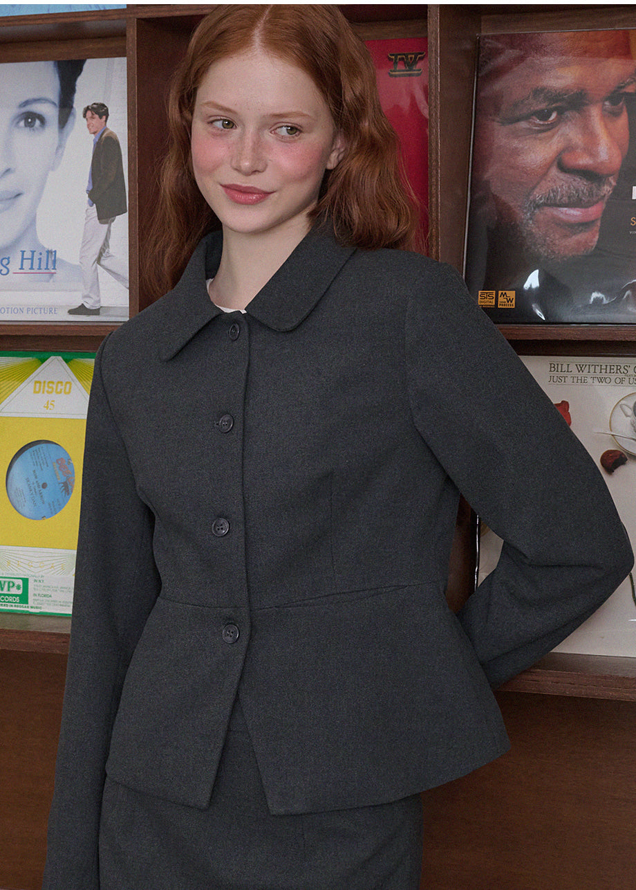 ヴィンテージムードのペプラムジャケットです。お尻がちょこっと隠れる着丈にペプラムスタイルでスリムな演出と体型カバー効果抜群!セットのスカートと合わせてセットアップスタイルも◎*装飾が施された製品のため、クリーニング専門店でのお手入れをおすすめいたします。