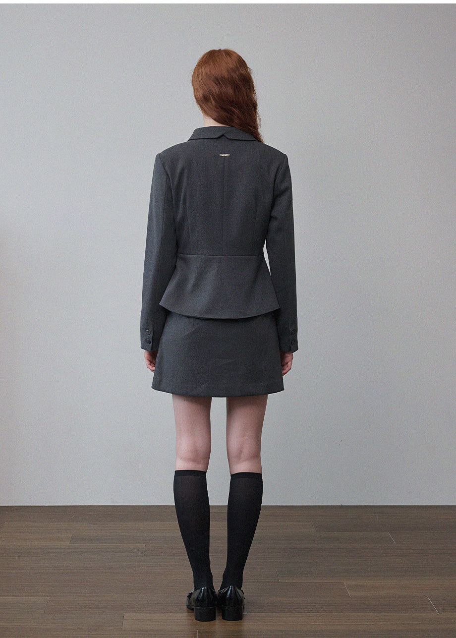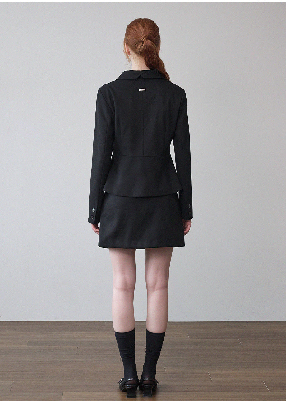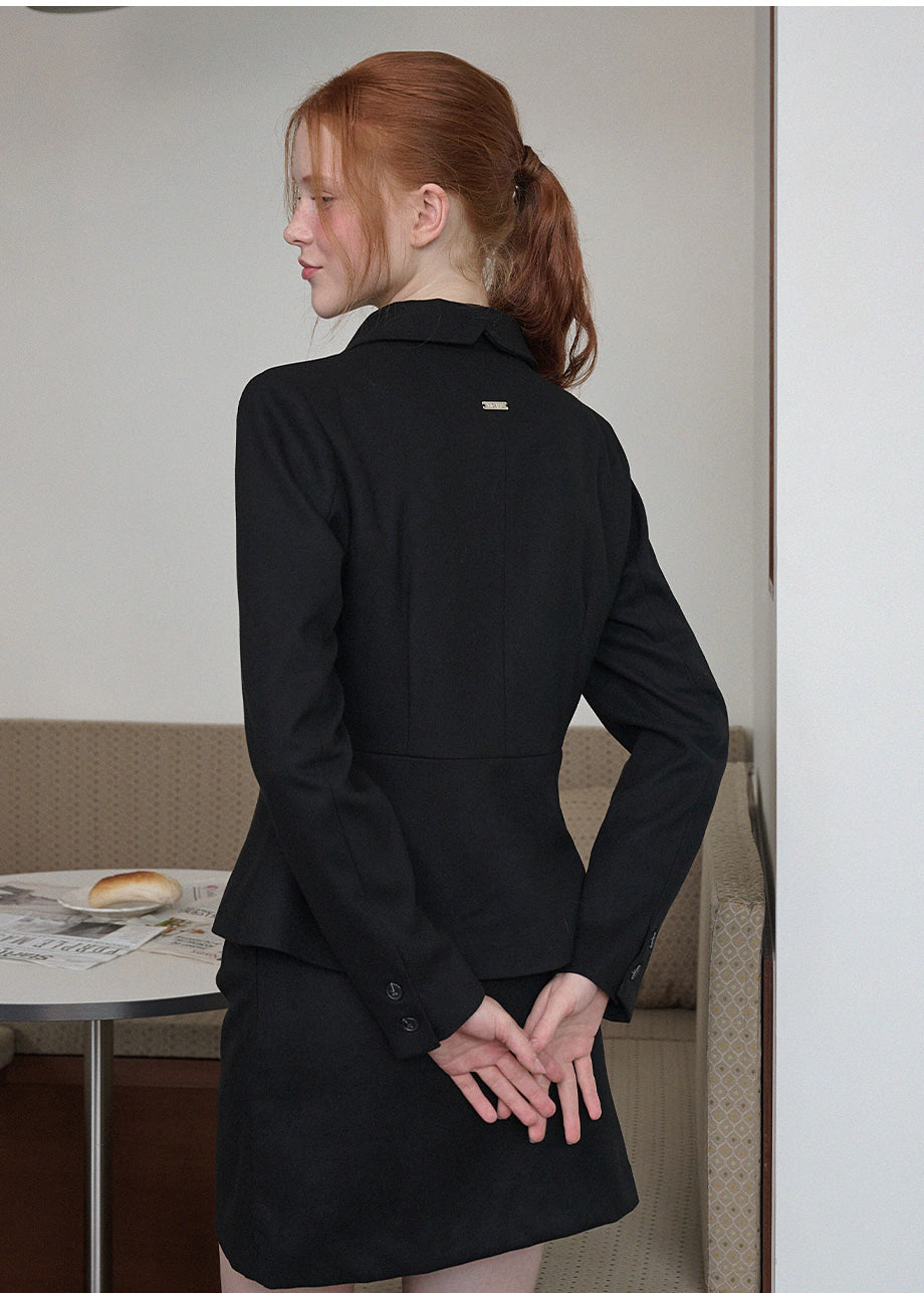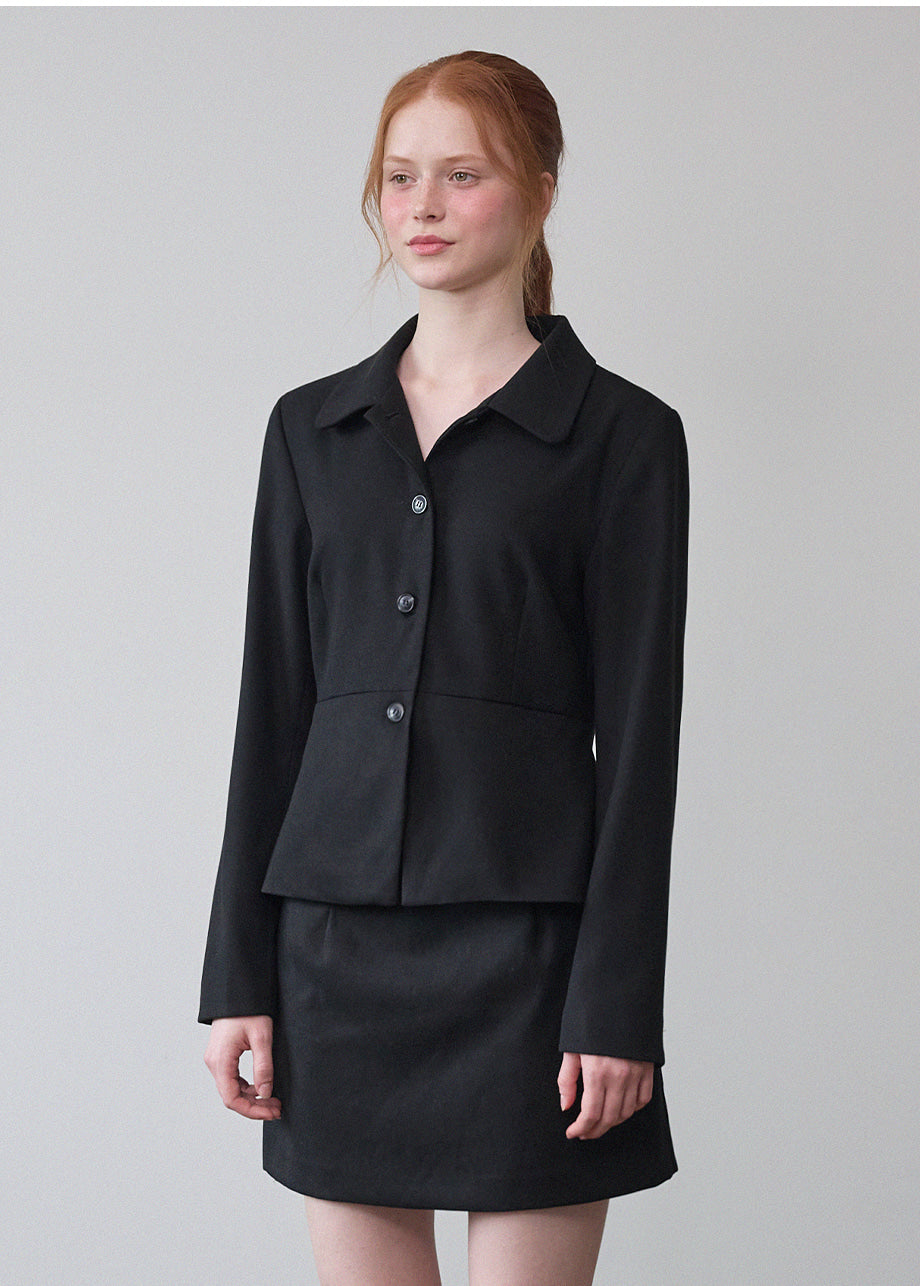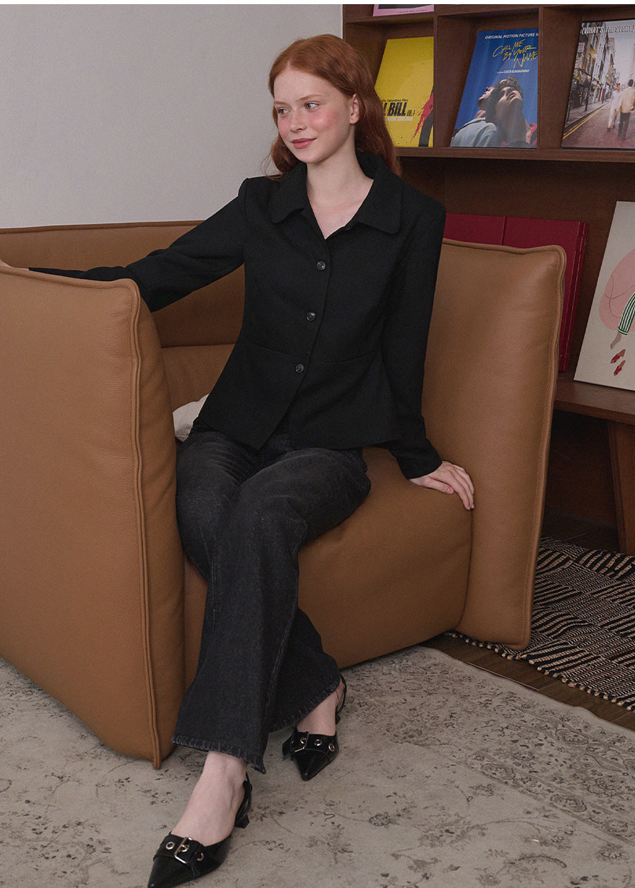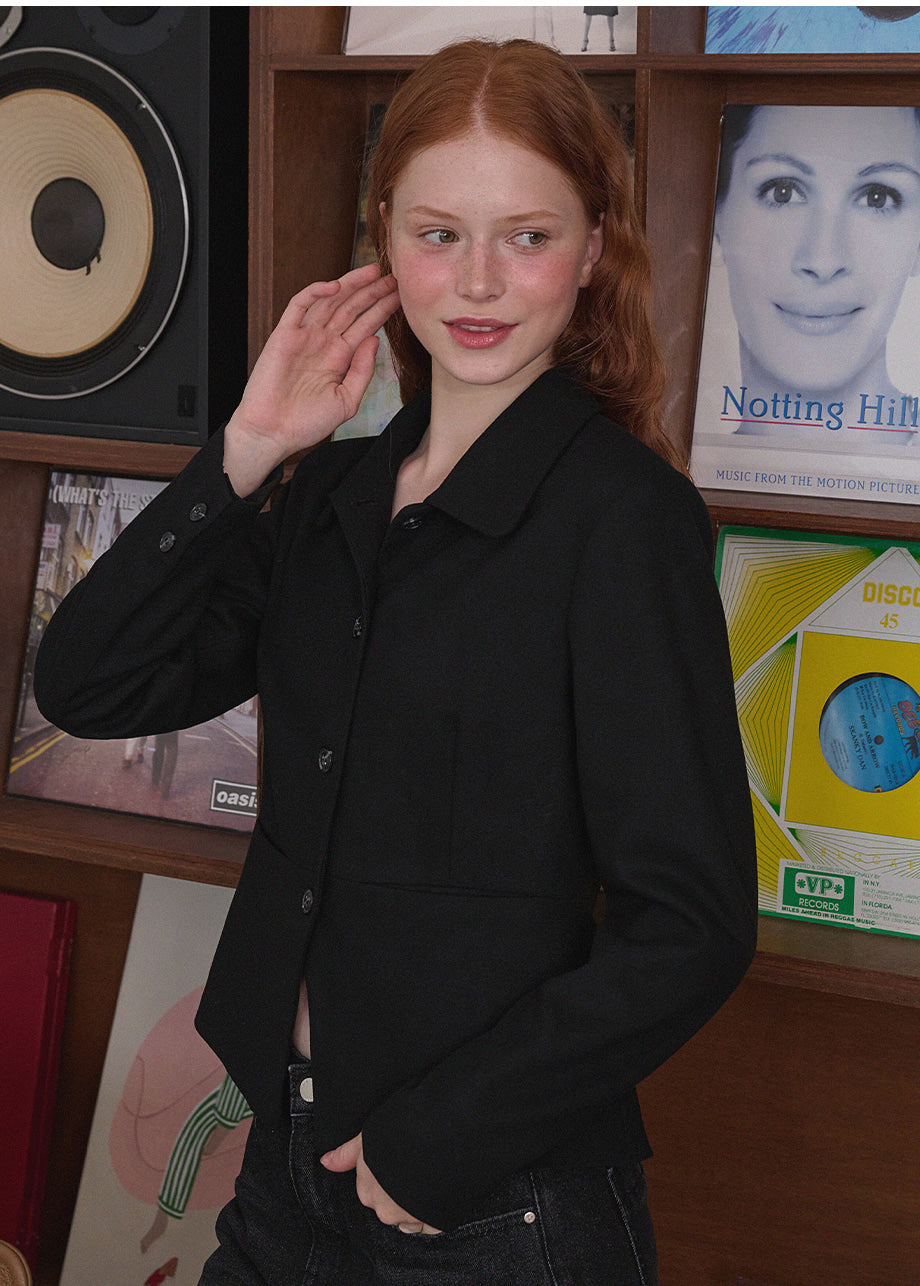 ヴィンテージムードのペプラムジャケットです。お尻がちょこっと隠れる着丈にペプラムスタイルでスリムな演出と体型カバー効果抜群!セットのスカートと合わせてセットアップスタイルも◎*装飾が施された製品のため、クリーニング専門店でのお手入れをおすすめいたします。