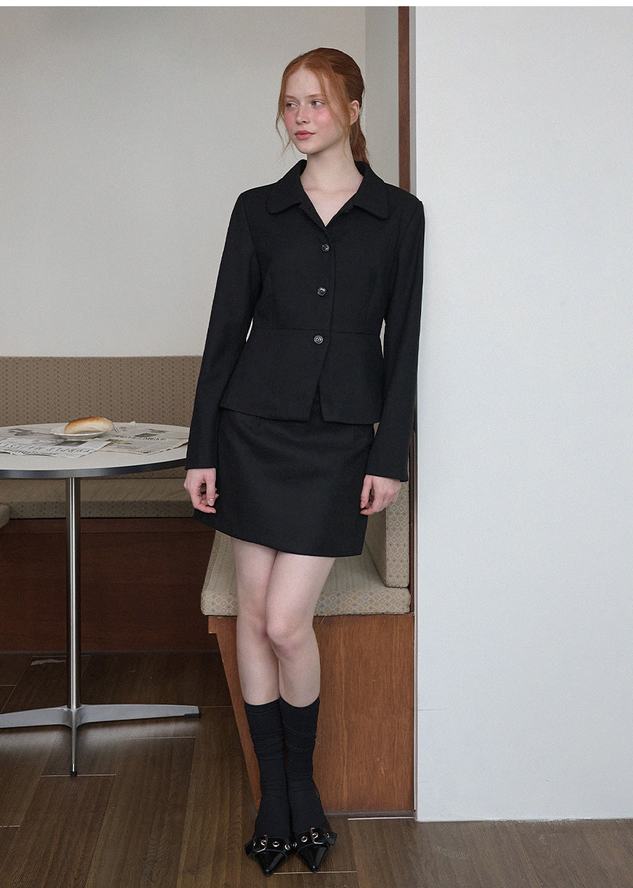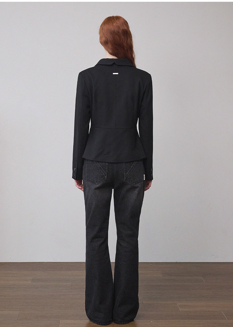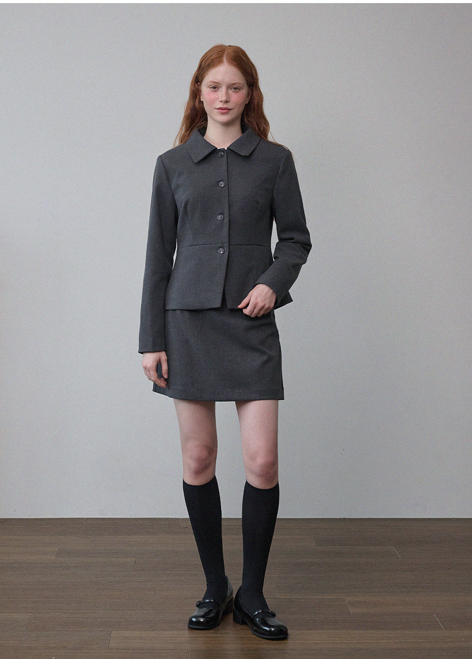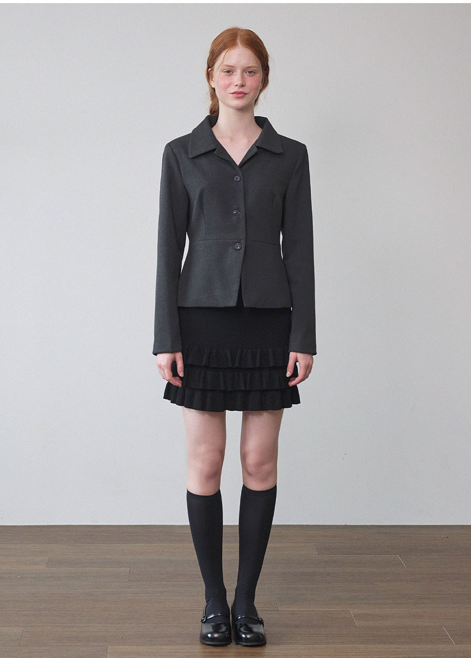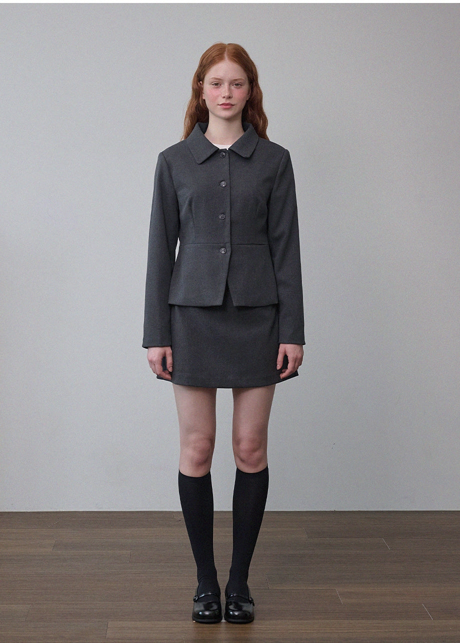 ヴィンテージムードのペプラムジャケットです。お尻がちょこっと隠れる着丈にペプラムスタイルでスリムな演出と体型カバー効果抜群!セットのスカートと合わせてセットアップスタイルも◎*装飾が施された製品のため、クリーニング専門店でのお手入れをおすすめいたします。