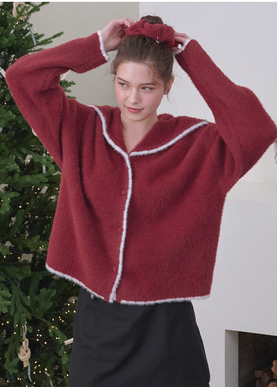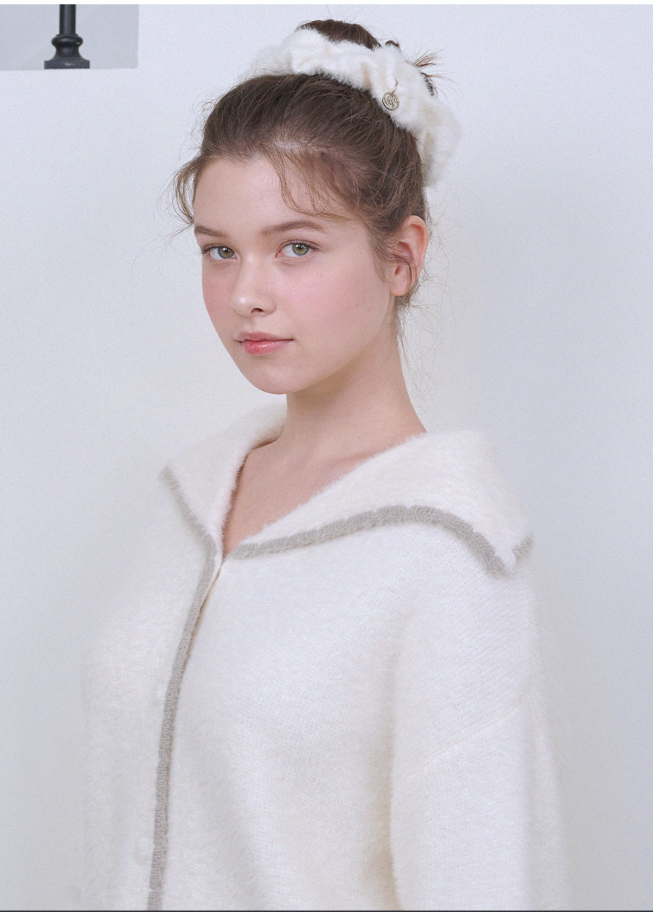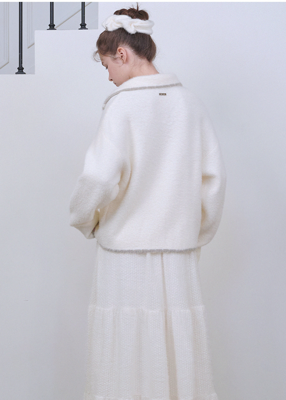 ラブリービンテージムードのカーディガンとシュシュのセットです。抜け毛を最小限に抑えつつ密度感を高めたヘアリー糸を使用し、シーズンらしい雰囲気とともに柔らかく暖かな着心地が特徴です。オープンネックデザインにルーズフィットで仕立てられ、セットのシュシュでポイントを加えて着用できます。ウェーブラインの配色がポイントとなり、シンプルすぎずに演出が可能です。さまざまなボトムスと相性が良いデザインでおすすめです。カーディガンのバックネック中央にはペンダント装飾を施して仕上げ、シュシュにもラウンドペンダントをあしらい感性豊かに仕上げました。*装飾や特殊な素材を使用した製品のため、クリーニング専門店でのお手入れをおすすめいたします。