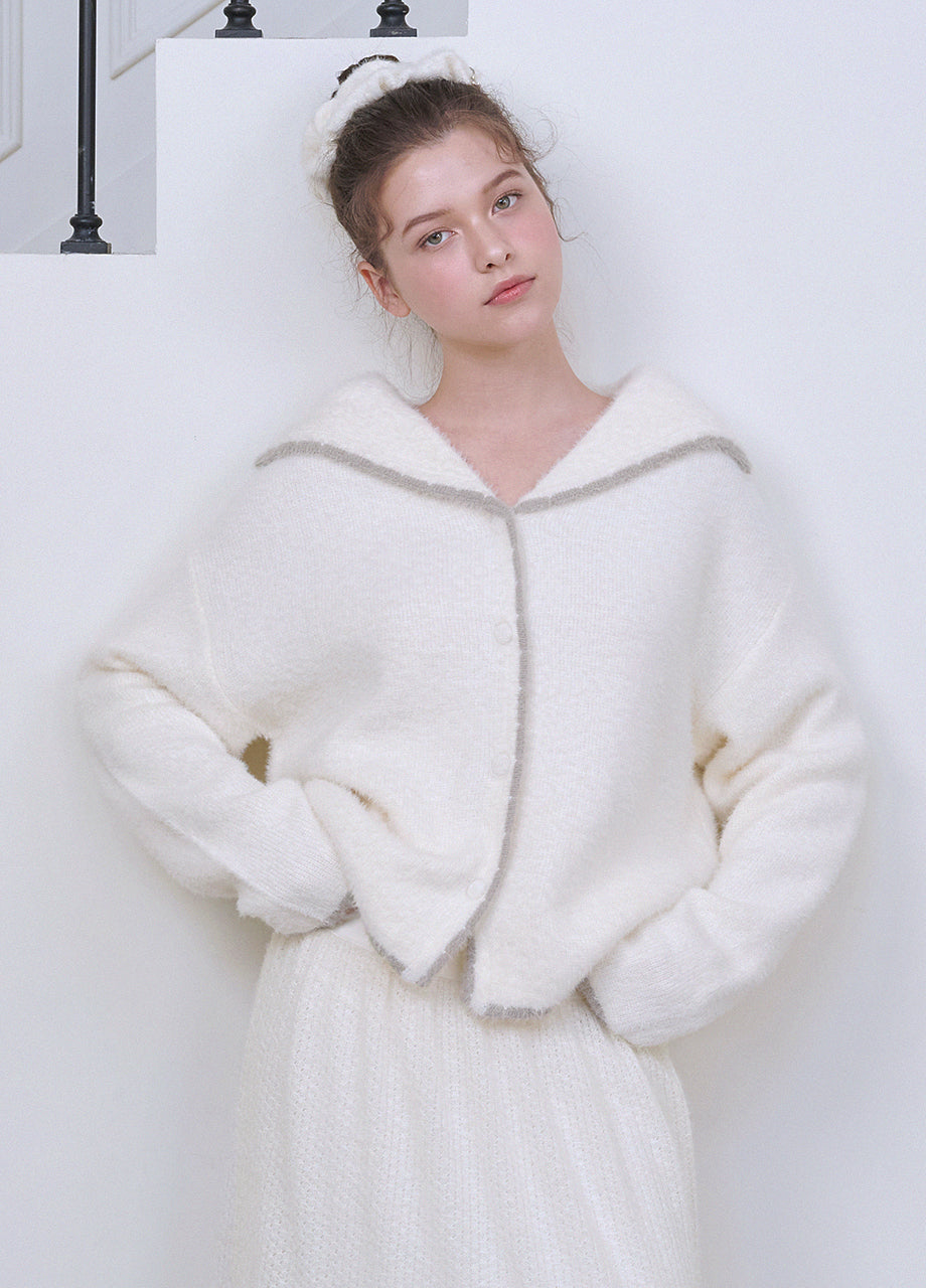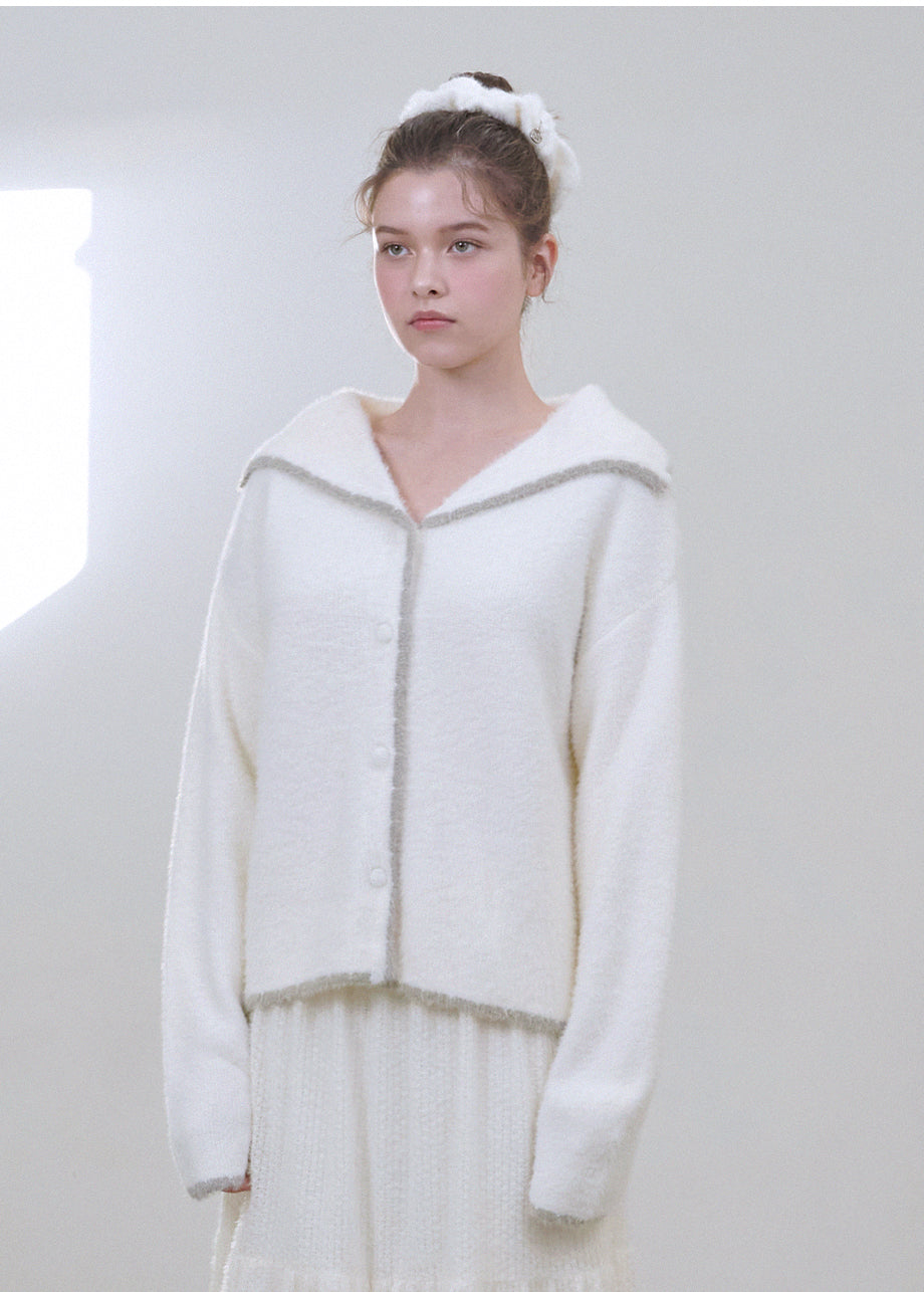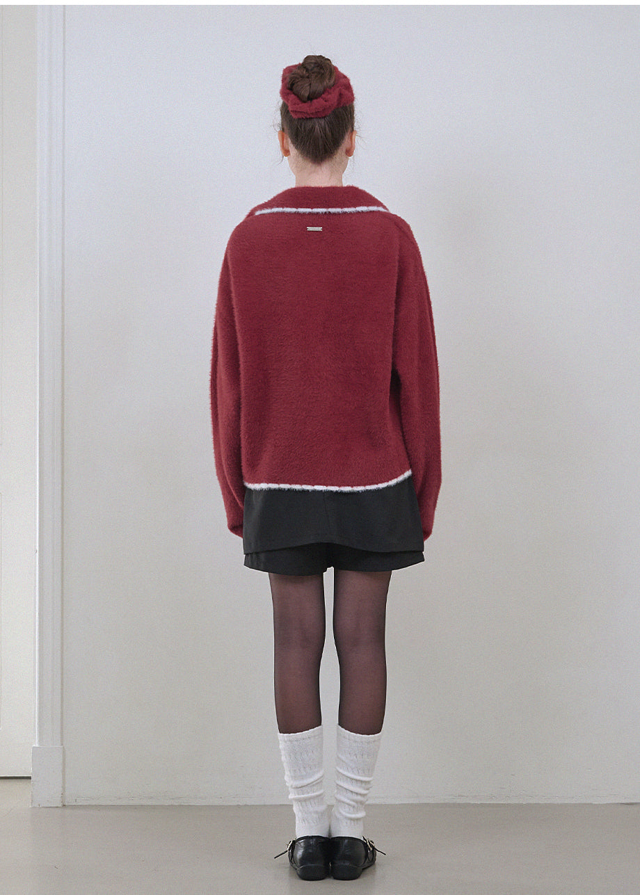 ラブリービンテージムードのカーディガンとシュシュのセットです。抜け毛を最小限に抑えつつ密度感を高めたヘアリー糸を使用し、シーズンらしい雰囲気とともに柔らかく暖かな着心地が特徴です。オープンネックデザインにルーズフィットで仕立てられ、セットのシュシュでポイントを加えて着用できます。ウェーブラインの配色がポイントとなり、シンプルすぎずに演出が可能です。さまざまなボトムスと相性が良いデザインでおすすめです。カーディガンのバックネック中央にはペンダント装飾を施して仕上げ、シュシュにもラウンドペンダントをあしらい感性豊かに仕上げました。*装飾や特殊な素材を使用した製品のため、クリーニング専門店でのお手入れをおすすめいたします。