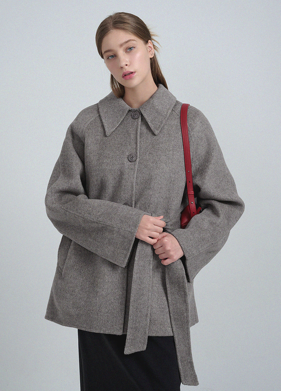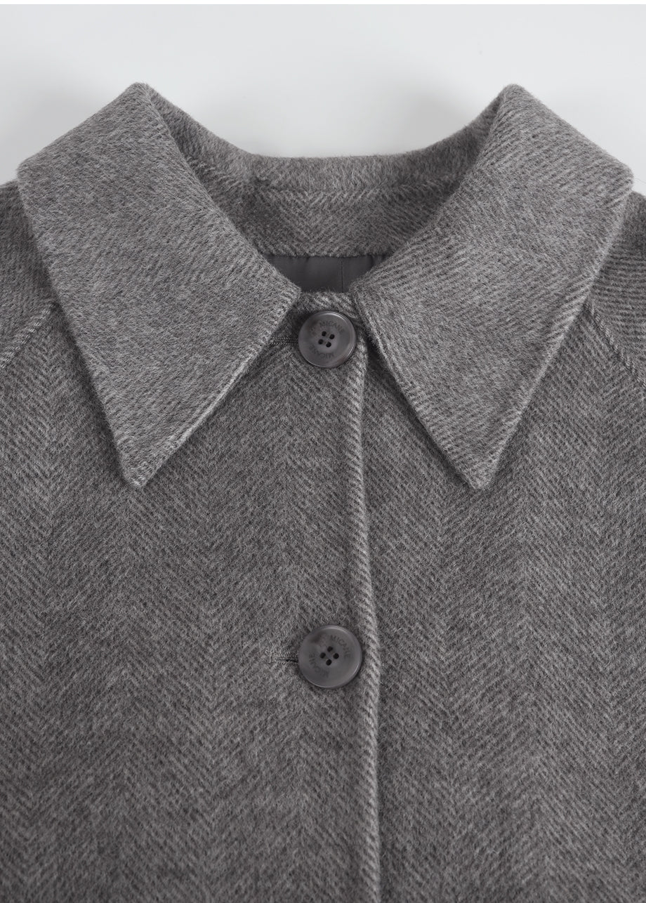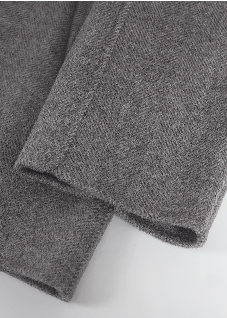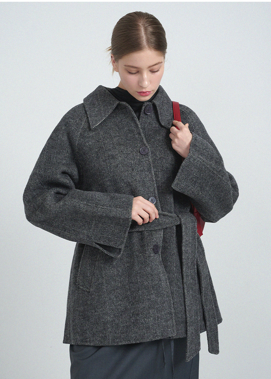 クラシックなムードが漂うハンドメイドコート。高品質な天然ウール100%のヘリンボーン生地を使用し、優れた保温性とラグジュアリーな着心地を実現しました。ハーフ丈のオーバーフィットで、リラックス感のある着こなしが楽しめます。同素材のベルトが付属しており、スタイリングの幅を広げてくれます。背中の襟中央にはミケネオリジナルの切替とスリットが施され、シンプルながらも洗練された印象に。袖口のスリットディテールと、背中心のプリーツにより、裾に向かって広がる美しいシルエットを演出します。後ろ襟の中央にはペンダントディテールをあしらい、ディテールまでこだわった上質な仕上がりに仕上げました。*装飾が施された製品のため、クリーニング専門店でのお手入れをおすすめいたします。
