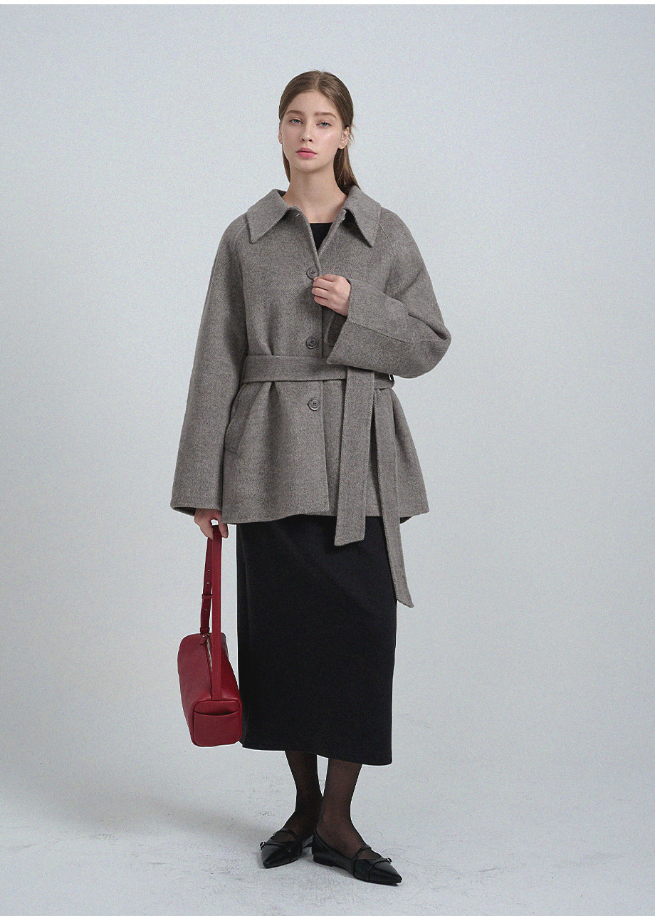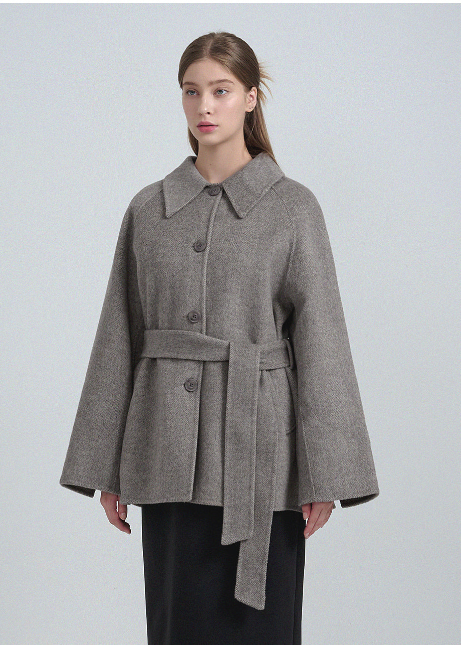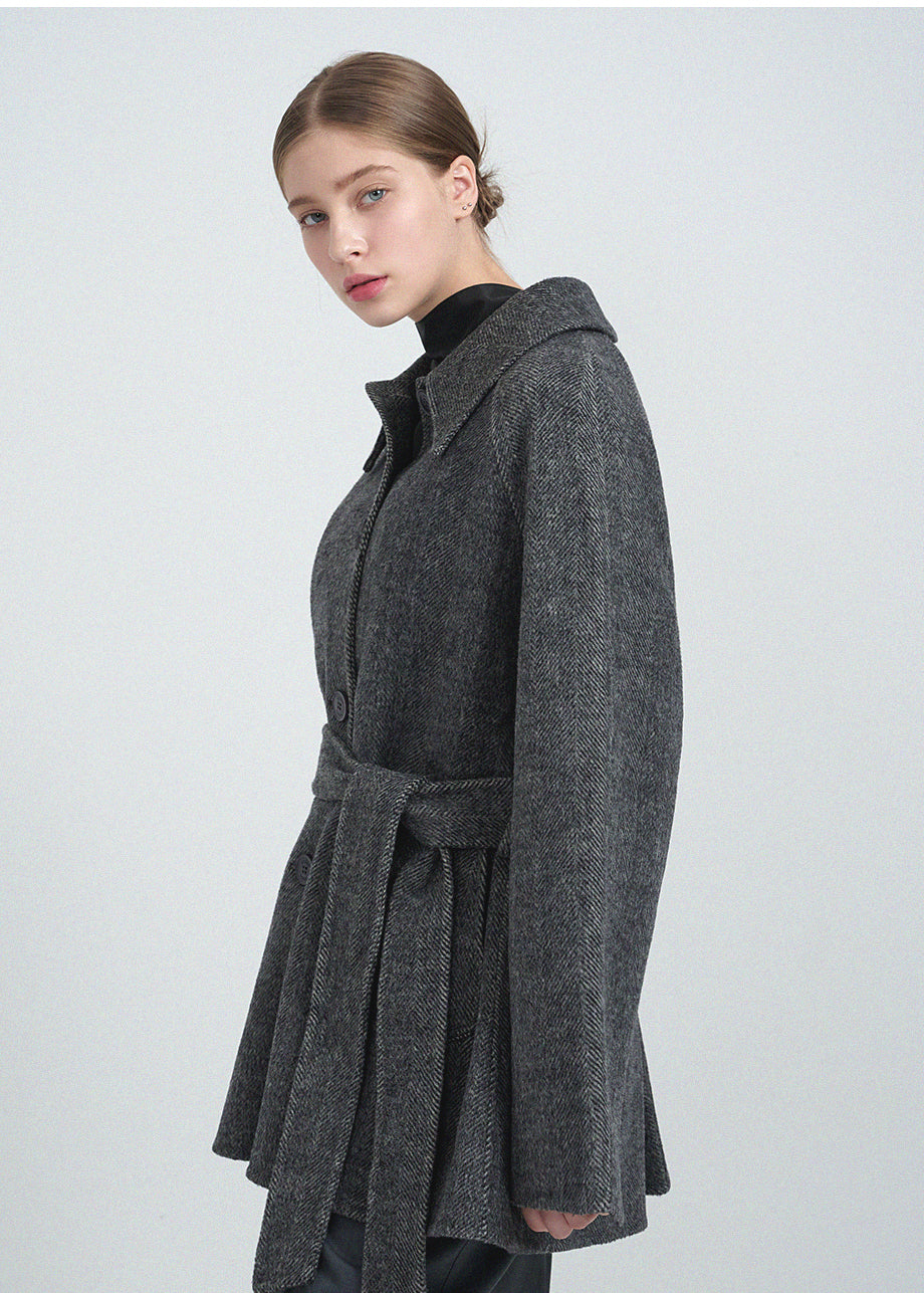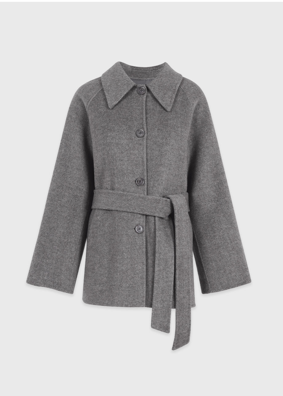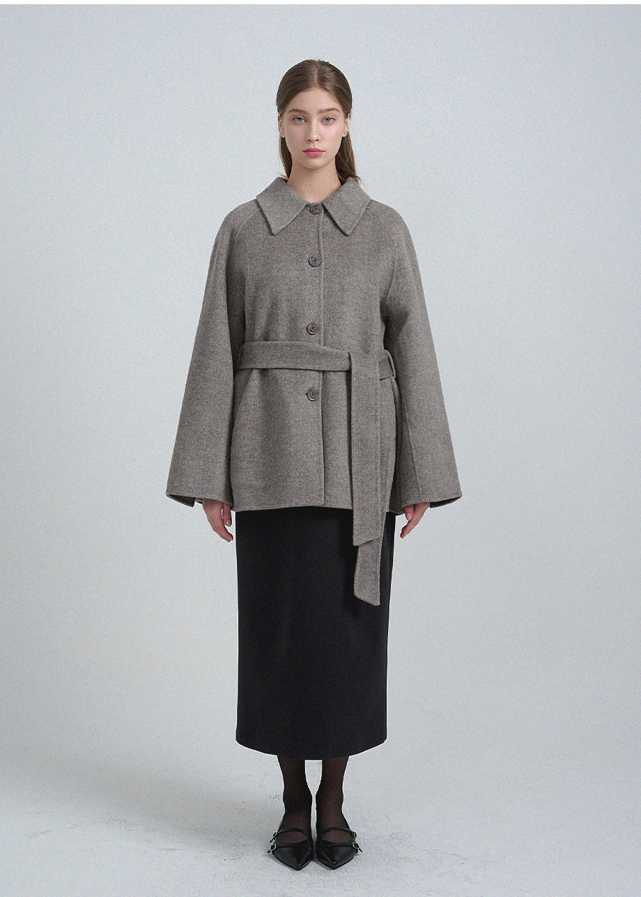 クラシックなムードが漂うハンドメイドコート。高品質な天然ウール100%のヘリンボーン生地を使用し、優れた保温性とラグジュアリーな着心地を実現しました。ハーフ丈のオーバーフィットで、リラックス感のある着こなしが楽しめます。同素材のベルトが付属しており、スタイリングの幅を広げてくれます。背中の襟中央にはミケネオリジナルの切替とスリットが施され、シンプルながらも洗練された印象に。袖口のスリットディテールと、背中心のプリーツにより、裾に向かって広がる美しいシルエットを演出します。後ろ襟の中央にはペンダントディテールをあしらい、ディテールまでこだわった上質な仕上がりに仕上げました。*装飾が施された製品のため、クリーニング専門店でのお手入れをおすすめいたします。