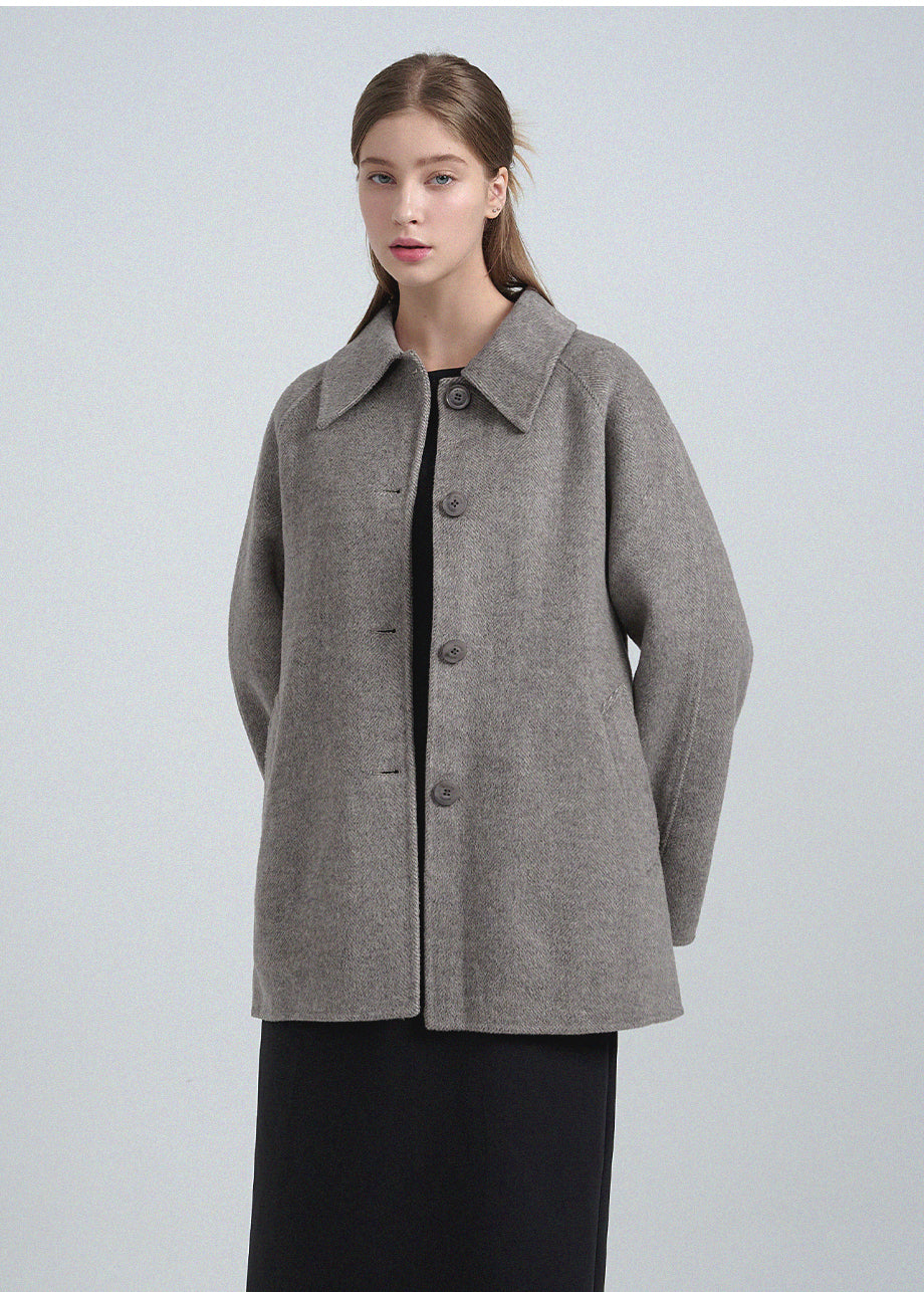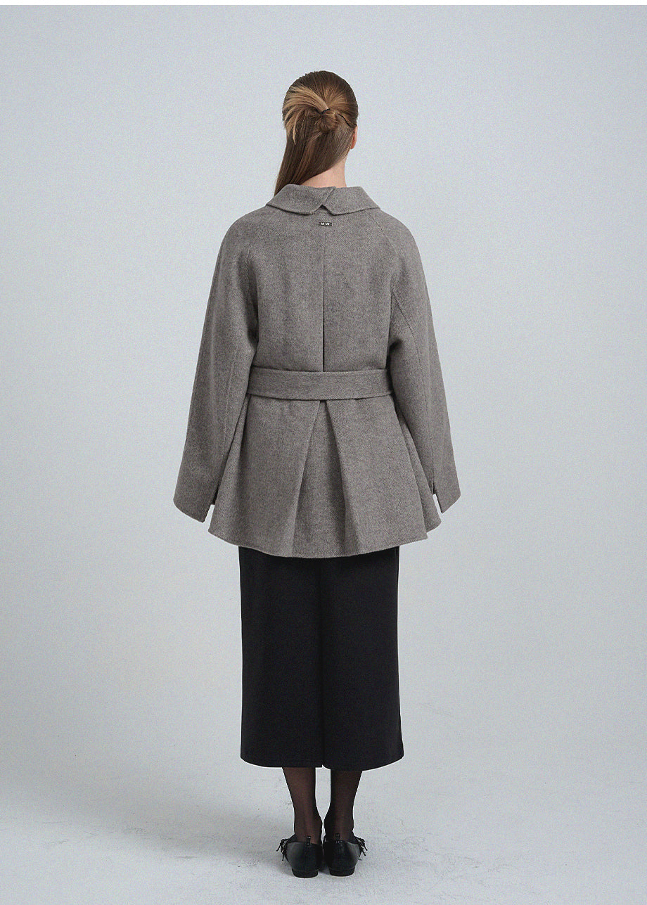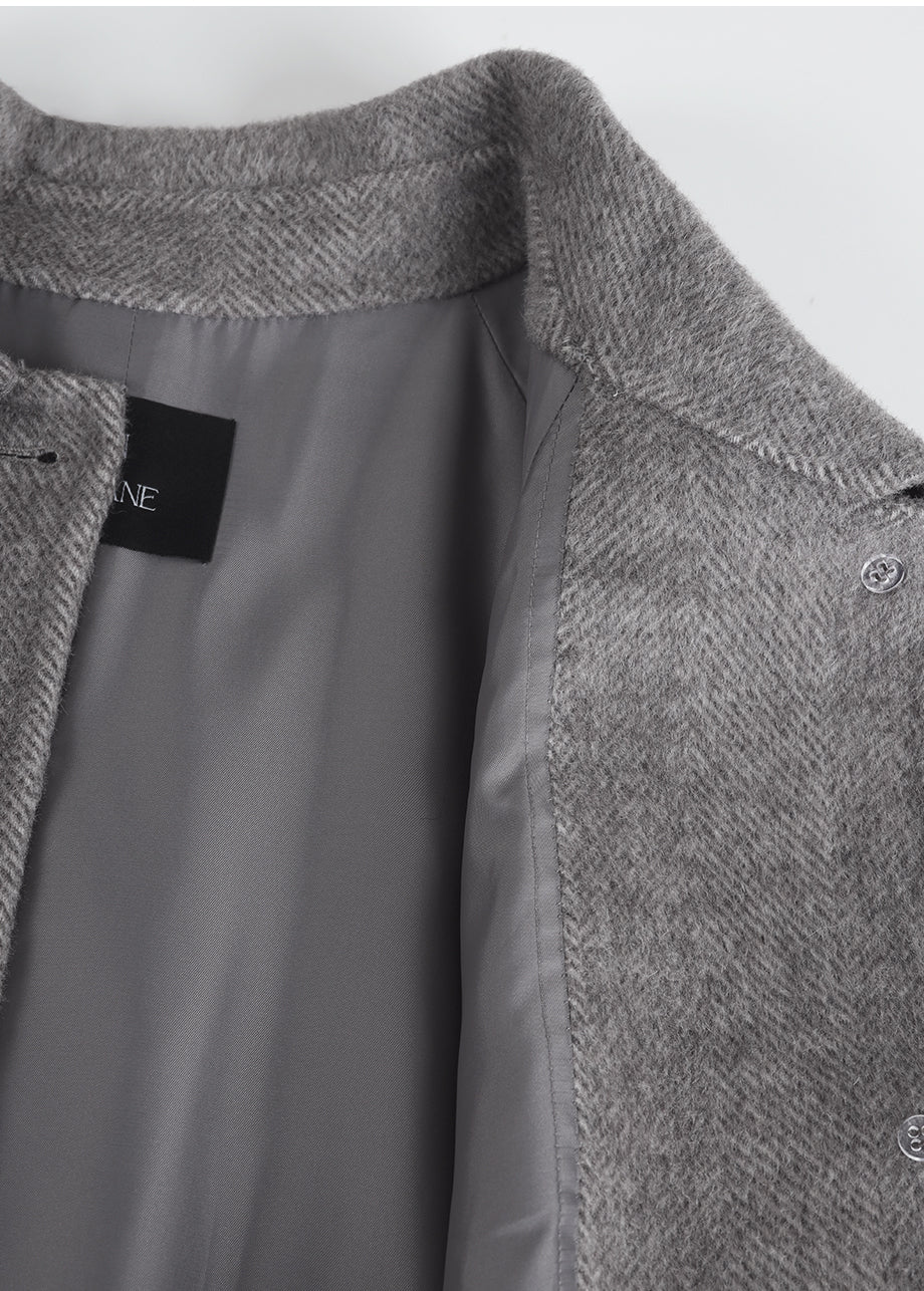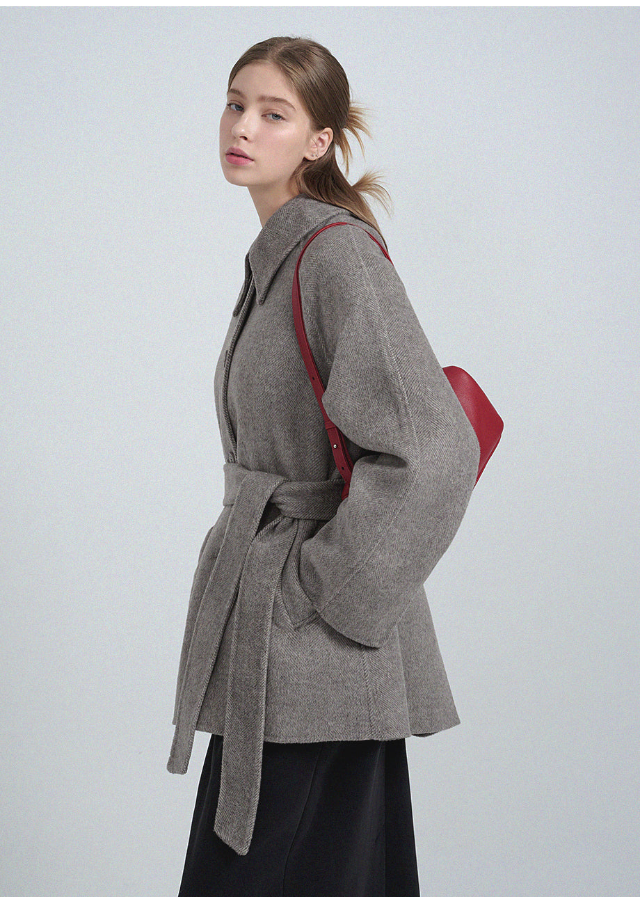 クラシックなムードが漂うハンドメイドコート。高品質な天然ウール100%のヘリンボーン生地を使用し、優れた保温性とラグジュアリーな着心地を実現しました。ハーフ丈のオーバーフィットで、リラックス感のある着こなしが楽しめます。同素材のベルトが付属しており、スタイリングの幅を広げてくれます。背中の襟中央にはミケネオリジナルの切替とスリットが施され、シンプルながらも洗練された印象に。袖口のスリットディテールと、背中心のプリーツにより、裾に向かって広がる美しいシルエットを演出します。後ろ襟の中央にはペンダントディテールをあしらい、ディテールまでこだわった上質な仕上がりに仕上げました。*装飾が施された製品のため、クリーニング専門店でのお手入れをおすすめいたします。