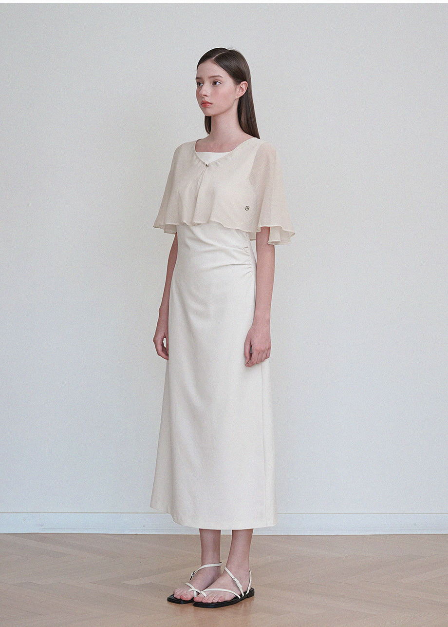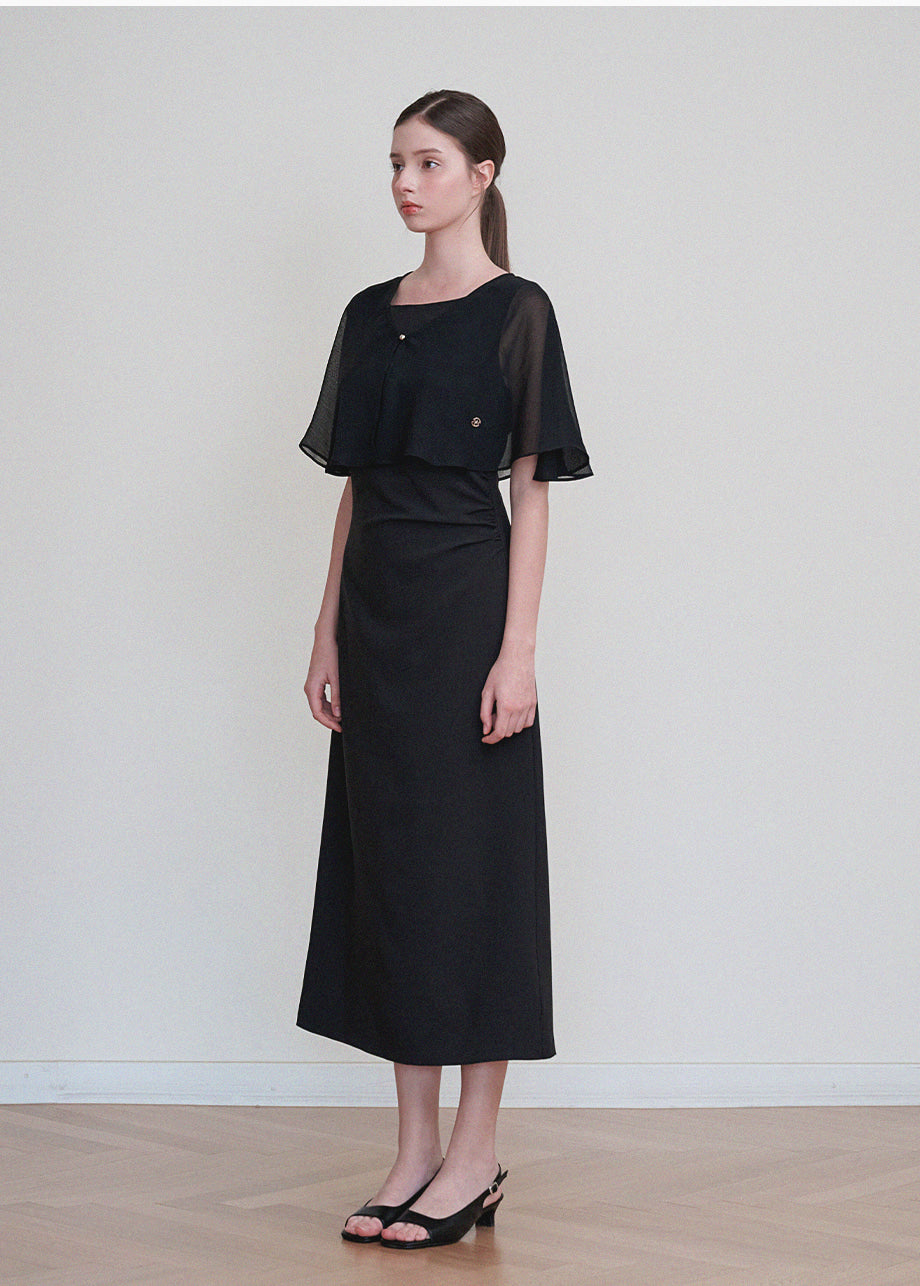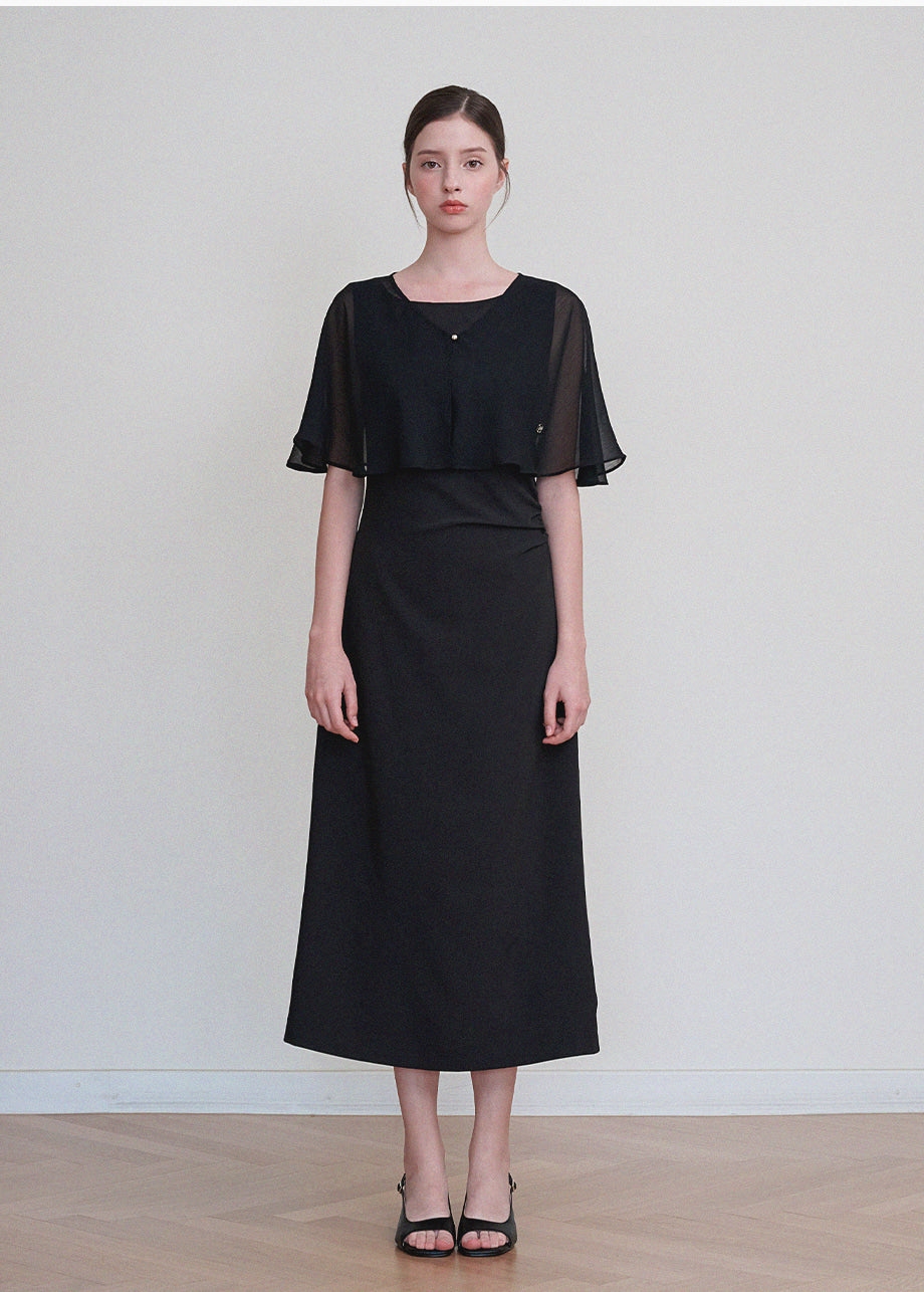 上品なクラシック感のあるノースリーブロングドレスとケープのセット。ウエストのドレープピンタックがスリムな印象を与え、軽やかなケープが優雅さと快適さをプラスします。*装飾や特殊なデザインが施された製品のため、クリーニング専門店でのお手入れをおすすめいたします。