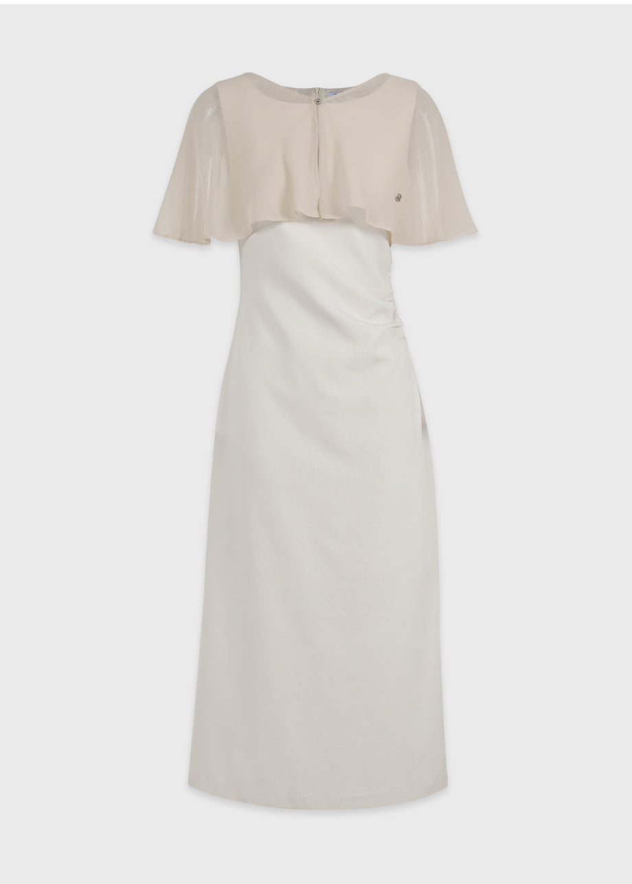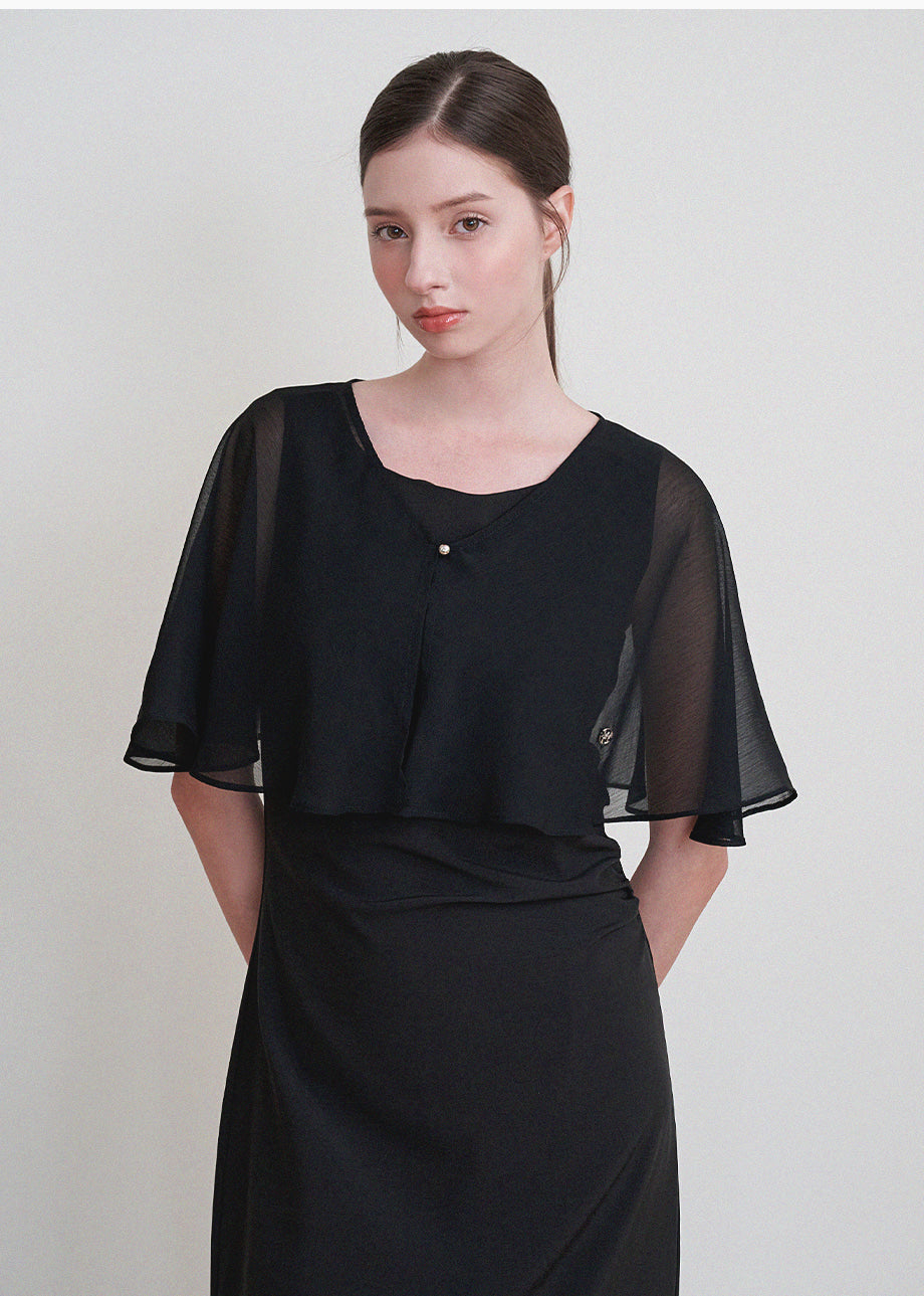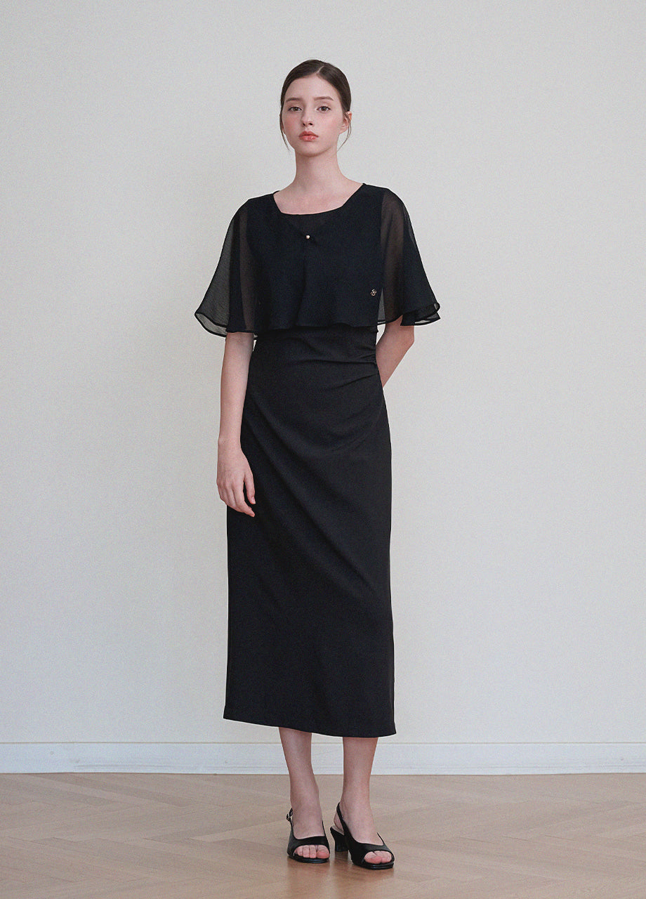 上品なクラシック感のあるノースリーブロングドレスとケープのセット。ウエストのドレープピンタックがスリムな印象を与え、軽やかなケープが優雅さと快適さをプラスします。*装飾や特殊なデザインが施された製品のため、クリーニング専門店でのお手入れをおすすめいたします。