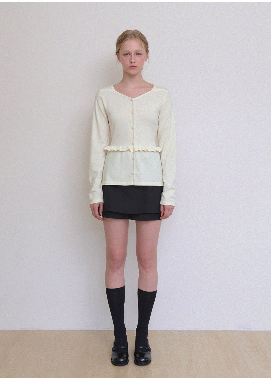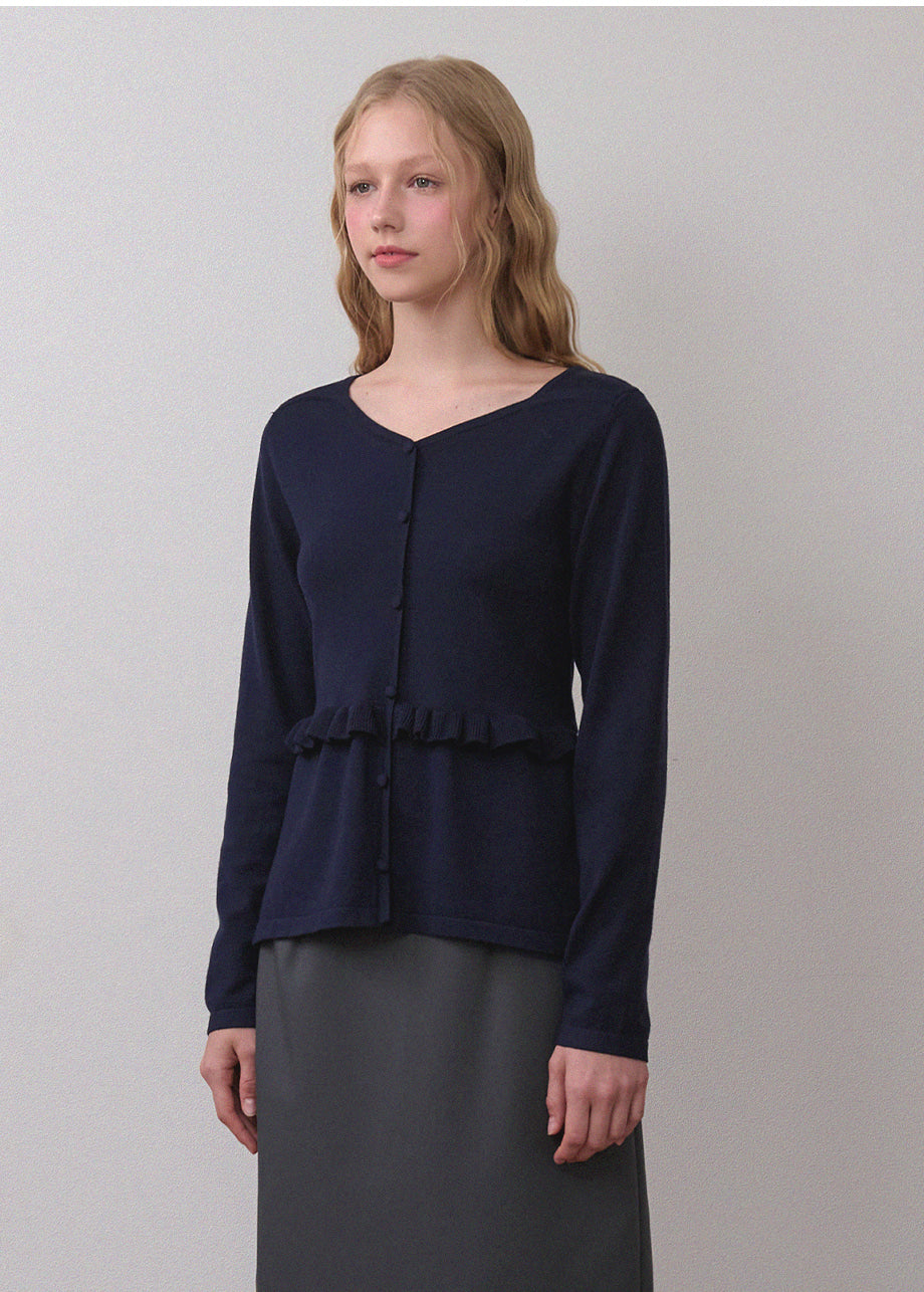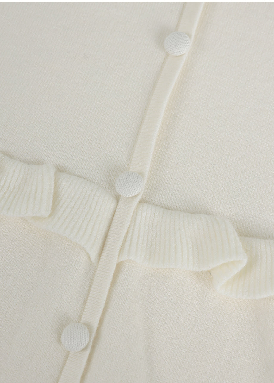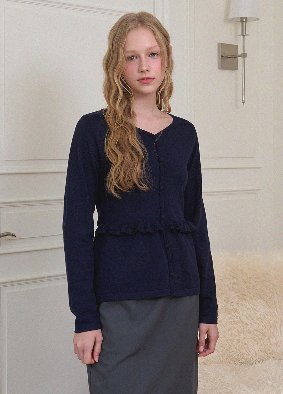ビンテージラブリームードが際立つニットです。柔らかく、密度の高い生地で仕立てられており、快適な着心地を楽しめます。スクエアハートラインのデザインにルーズフィットなシルエットで、様々なコーディネートに活用できます。ウエストのサイドにストラップを加え、後ろで結ぶことで、よりスリムなウエストラインを演出。また、ウエストラインに施されたフリルディテールがシンプルすぎず、ラブリーな雰囲気を添えてくれます。ネック後ろ中央にはペンダントで装飾を施し、上品に仕上げました。*装飾が施された製品のため、クリーニング専門店でのお手入れをおすすめいたします。