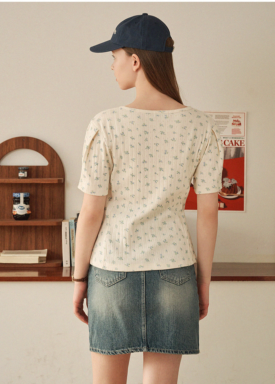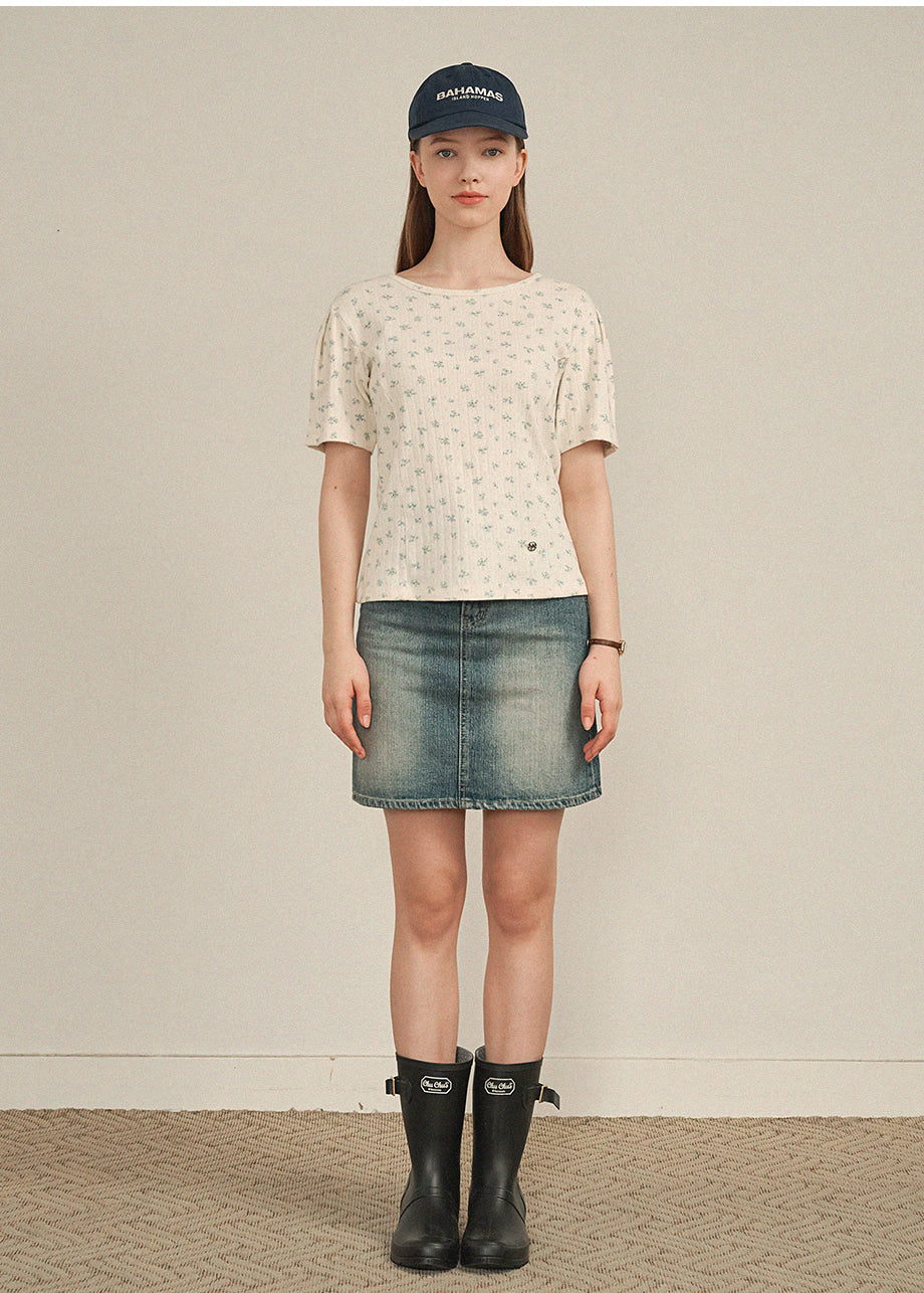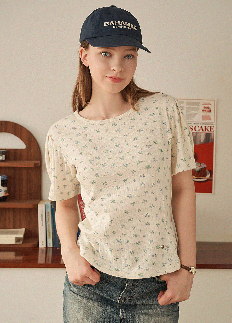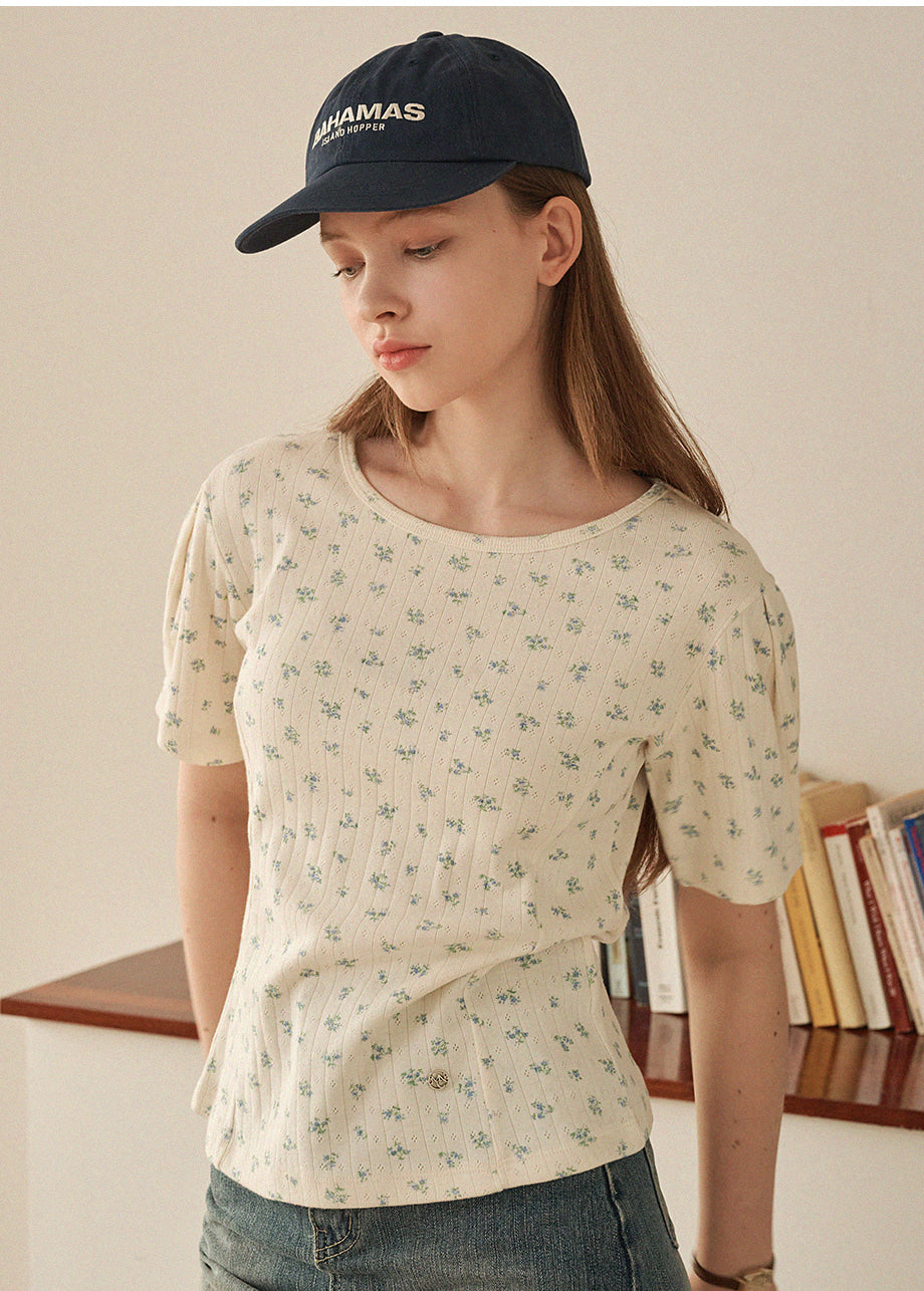 ラブリーでデイリーなムードのTシャツです。柔らかく伸縮性のある素材を使用し、クオリティを高めました。さり気ないフラワーパターンがポイントとなり、シンプルすぎない着こなしが可能です。