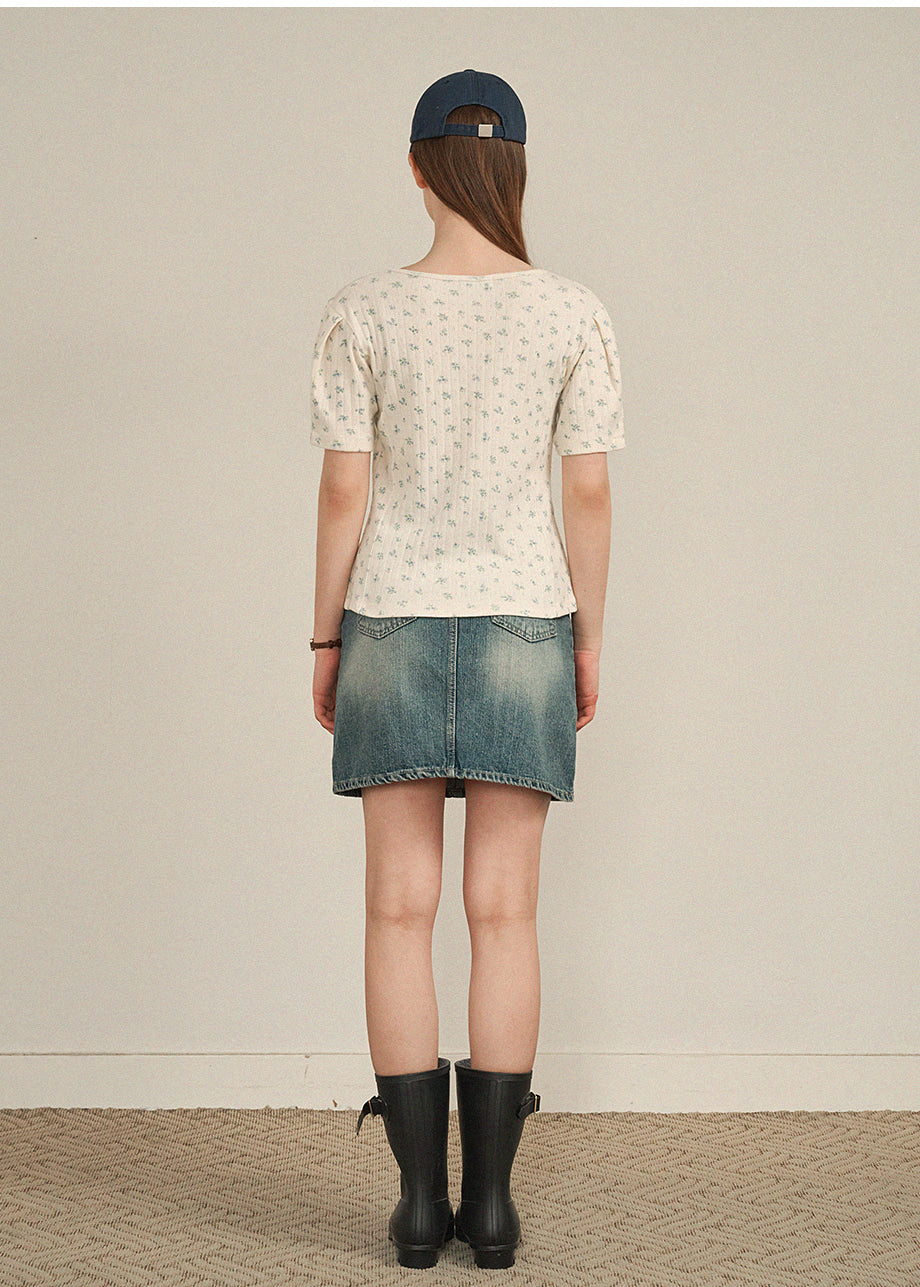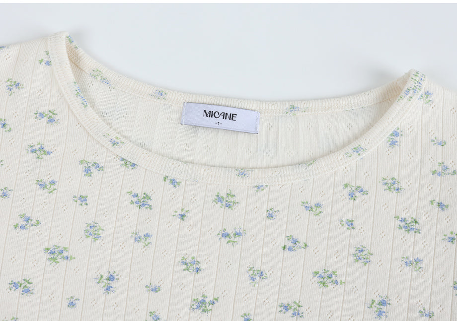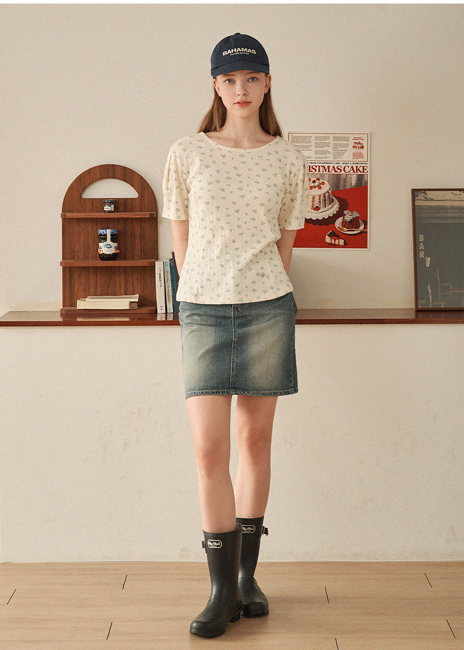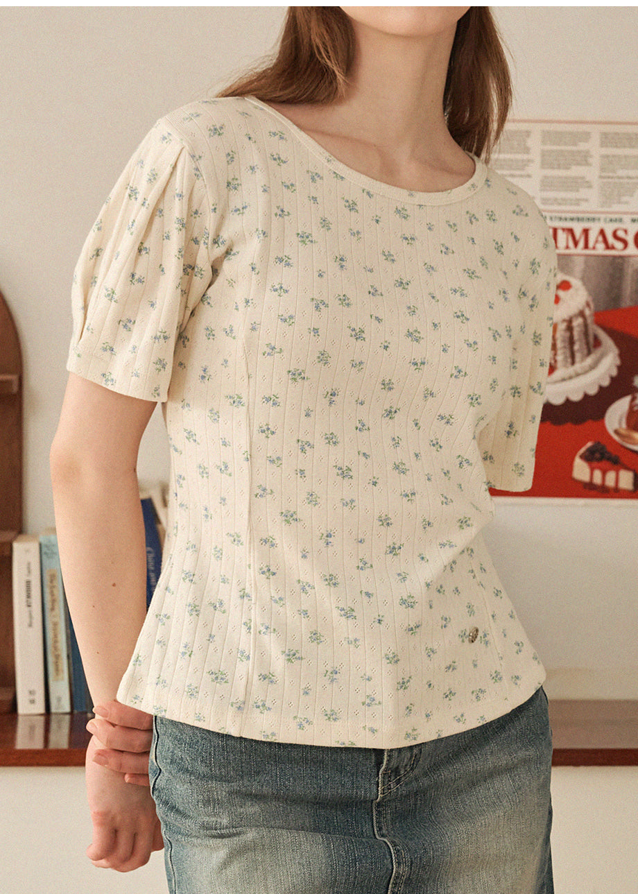 ラブリーでデイリーなムードのTシャツです。柔らかく伸縮性のある素材を使用し、クオリティを高めました。さり気ないフラワーパターンがポイントとなり、シンプルすぎない着こなしが可能です。