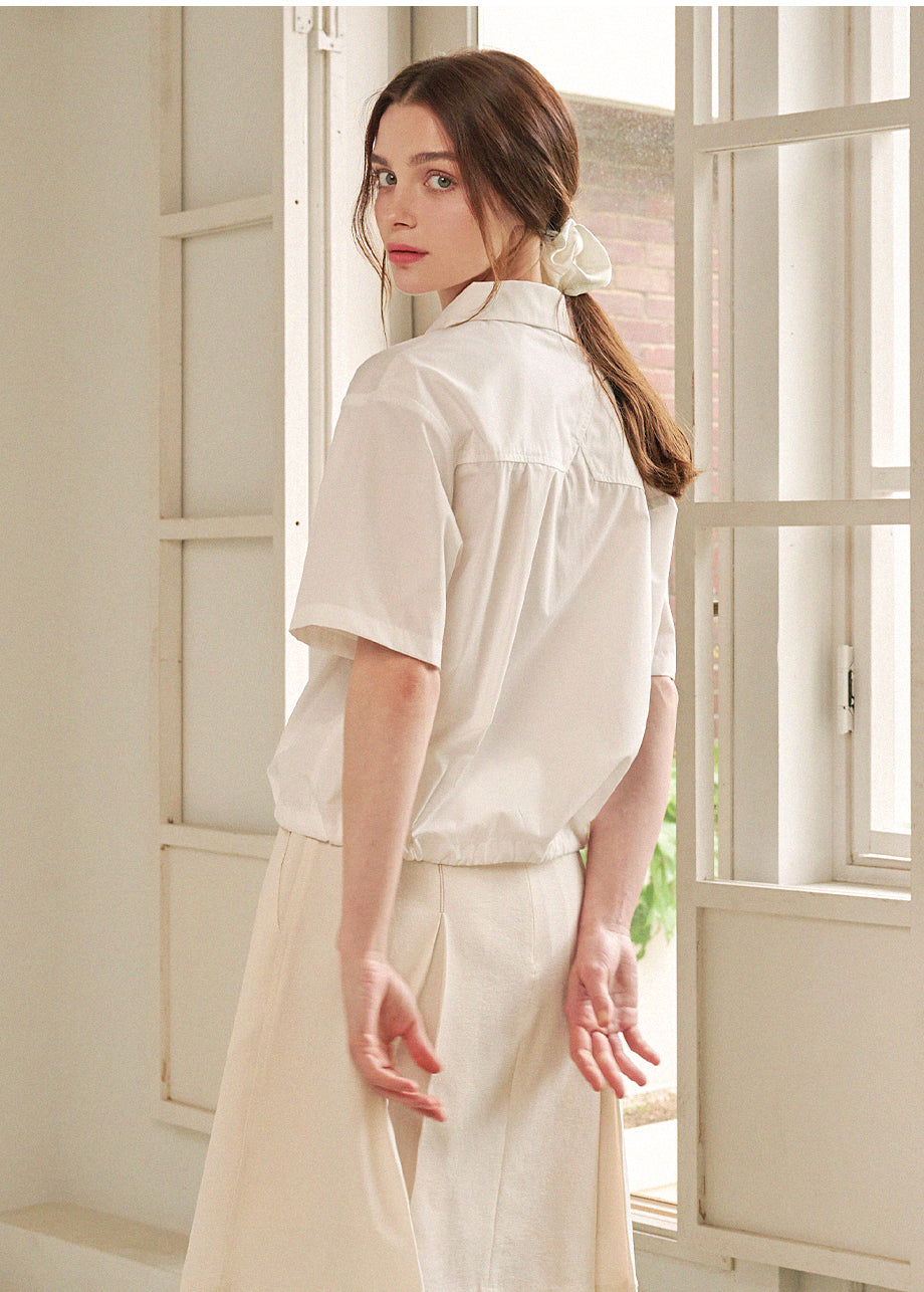 デイリームードで着用可能なブラウスです。しっかりとした柔らかい生地を使用し、シルエットとクオリティを高めました。シワになりにくく軽やかな素材で、快適な着用をサポートします。