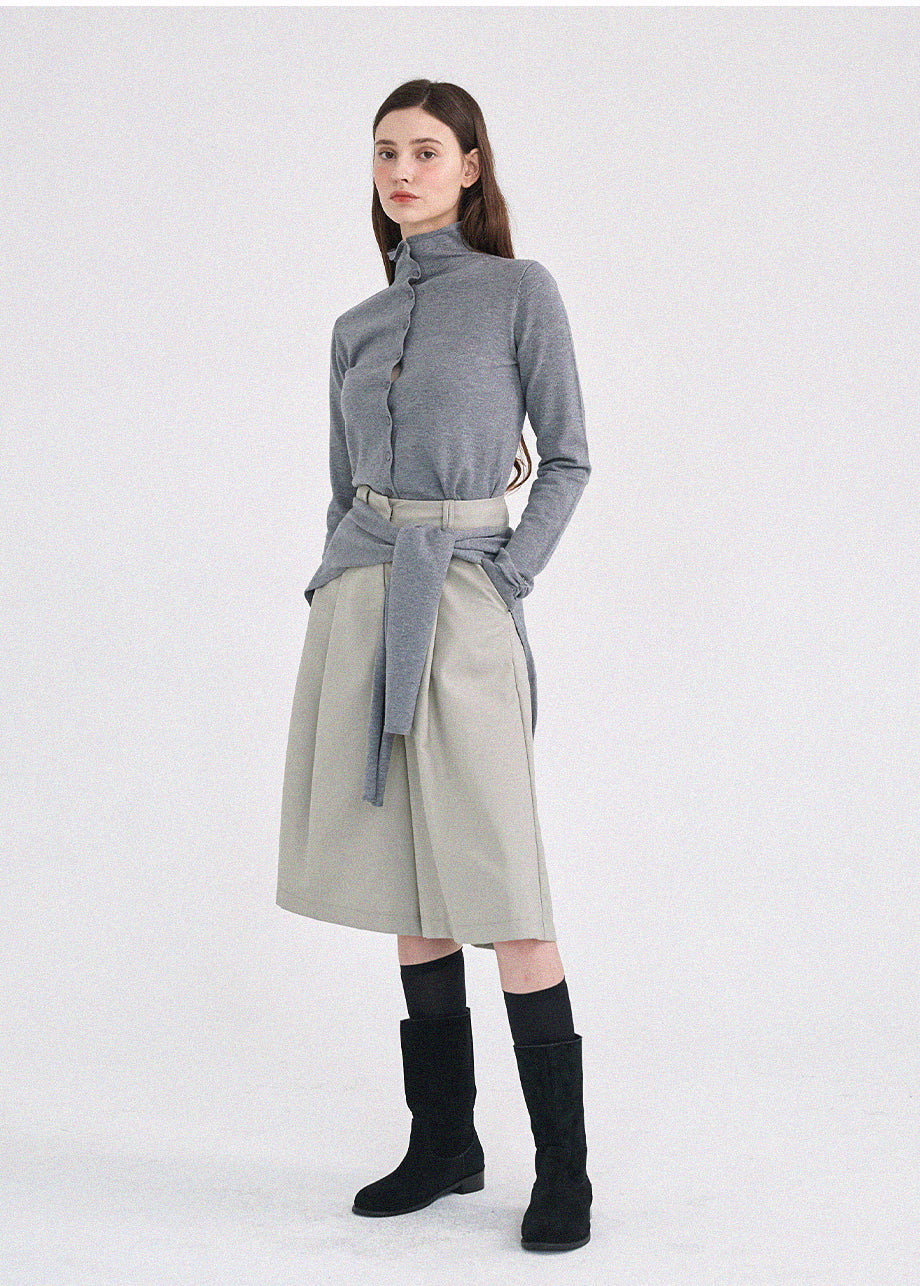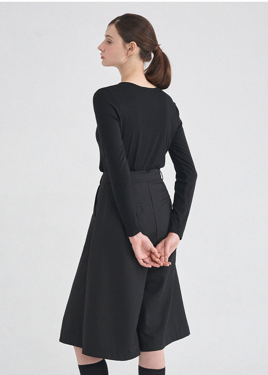クラシックな雰囲気を漂わせるワイドシルエットのパンツ。ハリのある生地で美しいラインと快適な穿き心地を実現し、後ろウエストの切り替えとスリットがスタイルのアクセントに。*装飾が施された製品のため、クリーニング専門店でのお手入れをおすすめいたします。