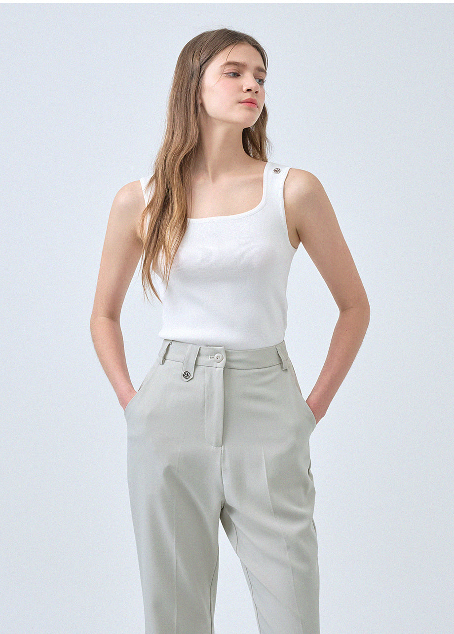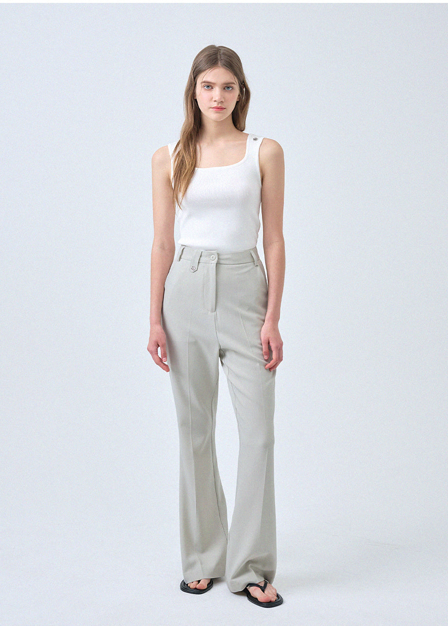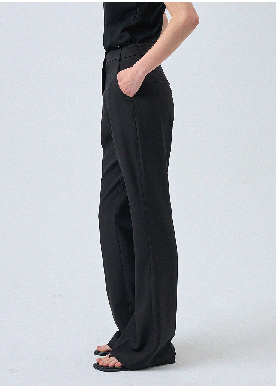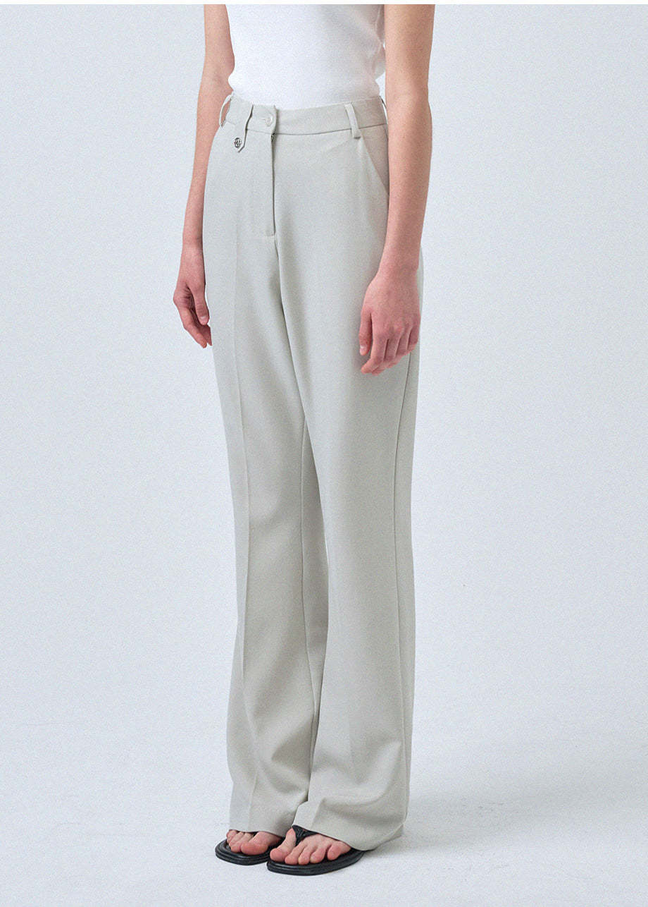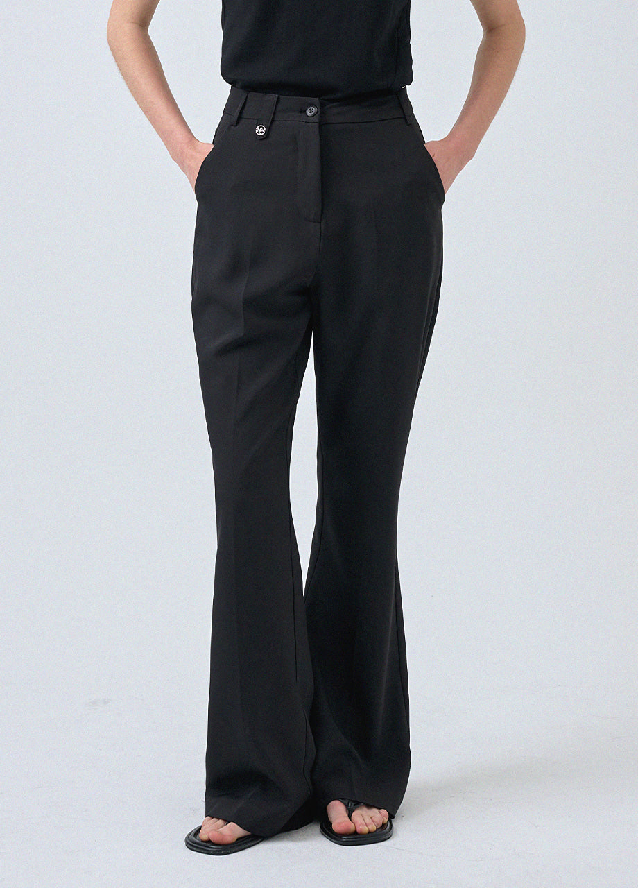 クラシックな感性のスラックスです。ロング丈のセミブーツカットで、気になる部分をカバーしながらスリムなラインを演出します。様々なスタイルにマッチする汎用性の高いアイテムです。*装飾が施された製品のため、クリーニング専門店でのお手入れをおすすめいたします。