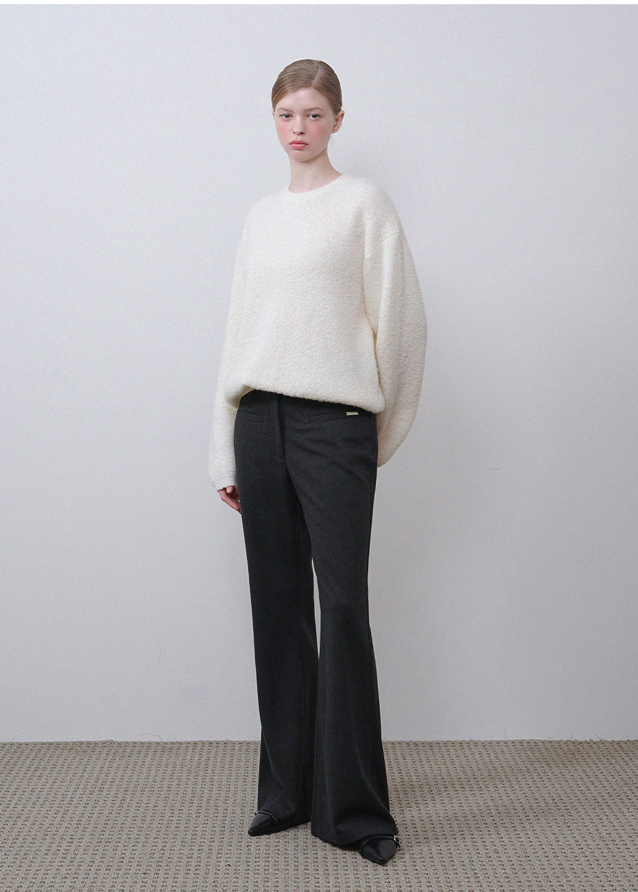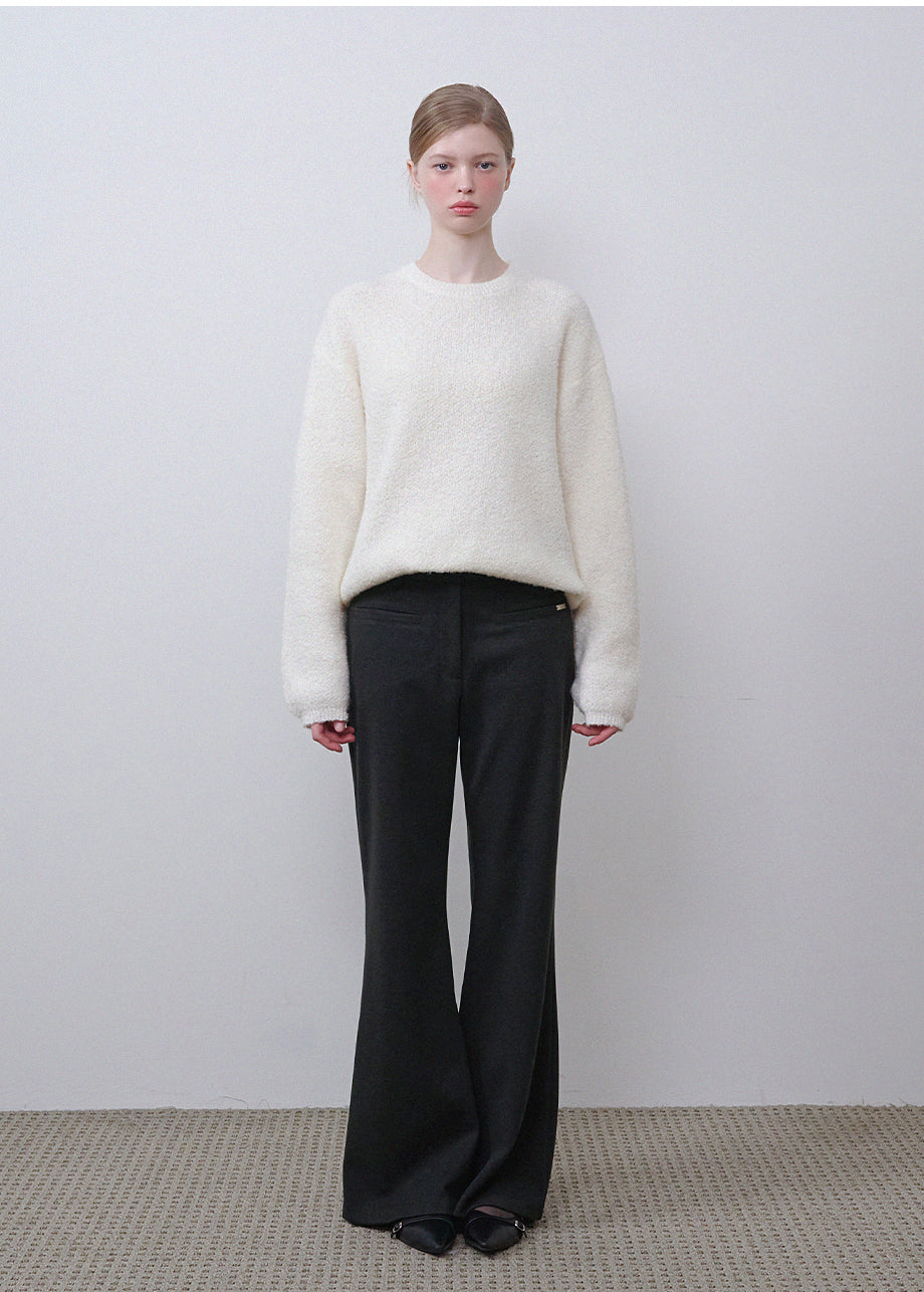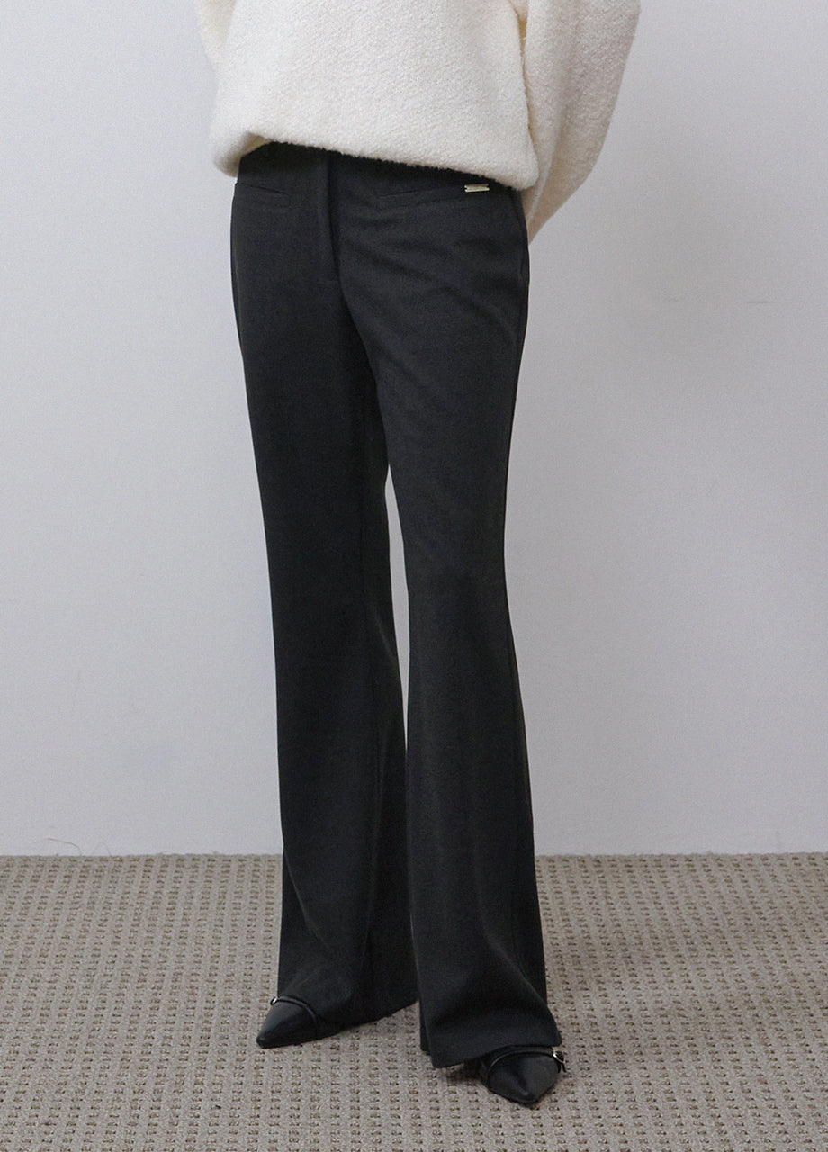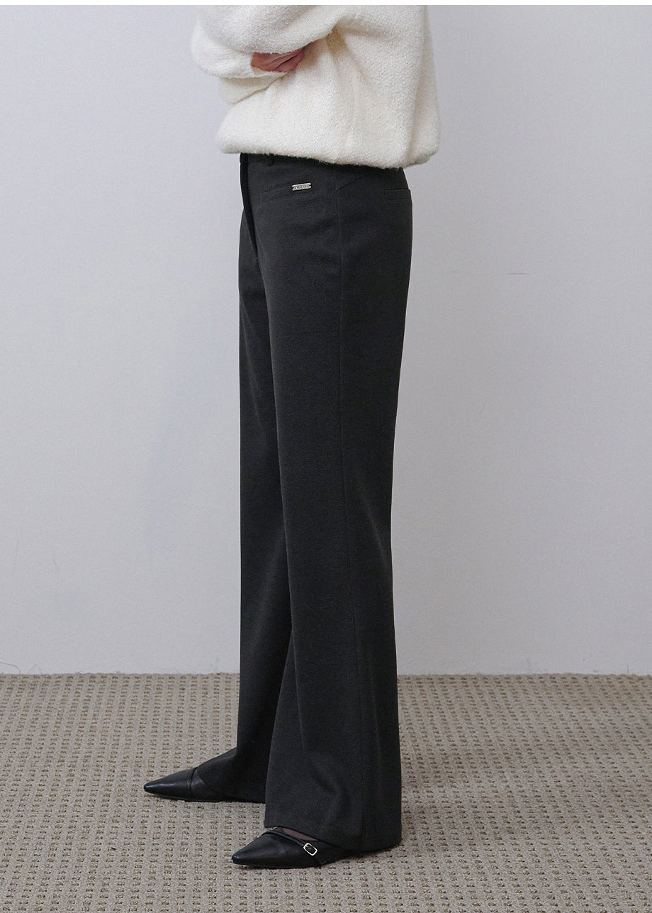 クラシックでシックなムードのスラックスパンツです。優れた耐久性とピーチのような柔らかな肌触りの生地を使用し、肌への刺激がなく、きれいなシルエットをキープした着心地が特徴です。内側の起毛素材で暖かさをプラスし、適度なストレッチがより快適な着用感を与えてくれます。最良のバランスに仕上げたローライズのセミフレアフィットで、誰でも負担なくすっきりとしたシルエットを楽しめます。ロング丈が自然に落ちるムードを演出し、スタイリングの幅を広げてくれます。フロントポケット横にあしらったペンダント装飾で、上質さを引き立てました。*装飾が施された製品のため、クリーニング専門店でのお手入れをおすすめいたします。