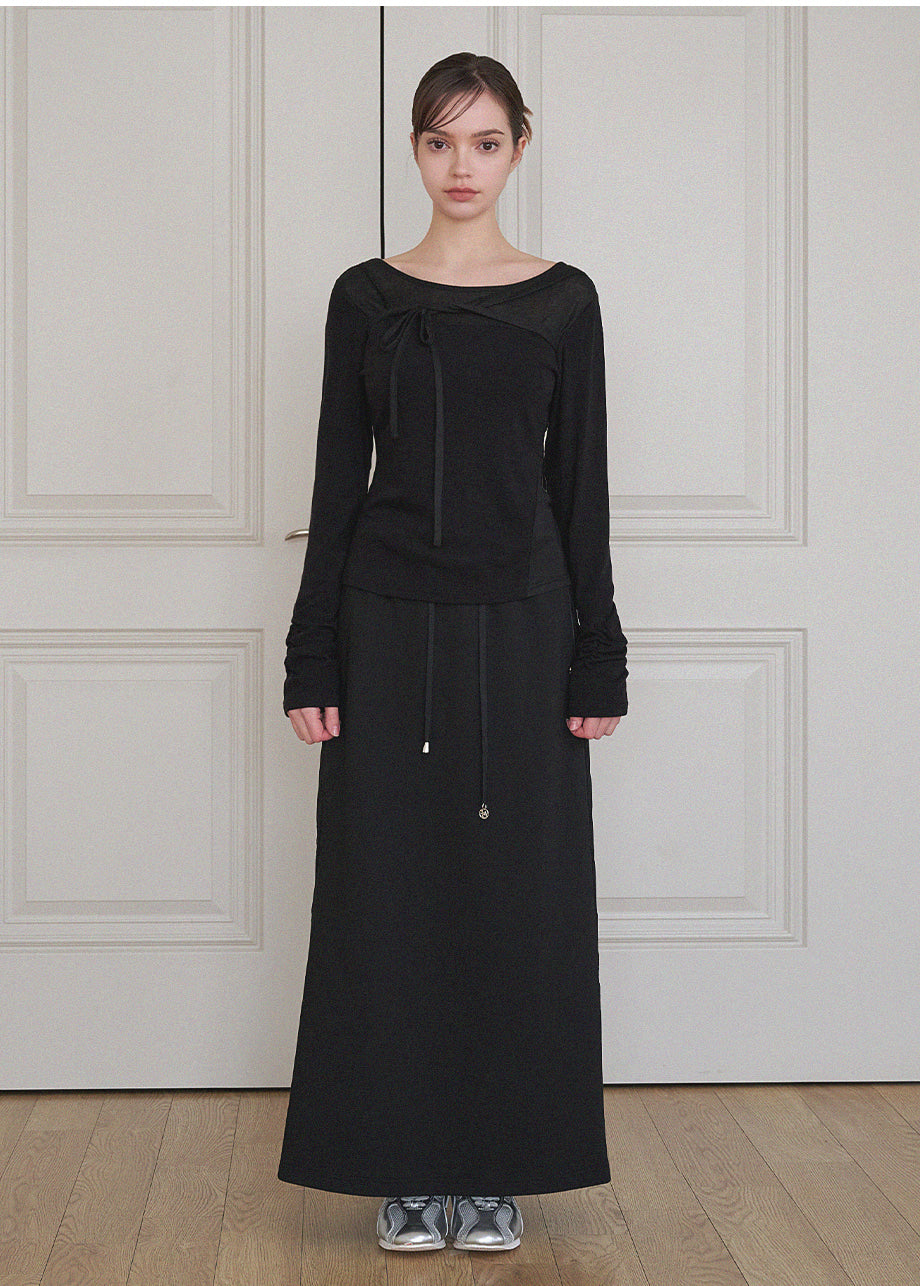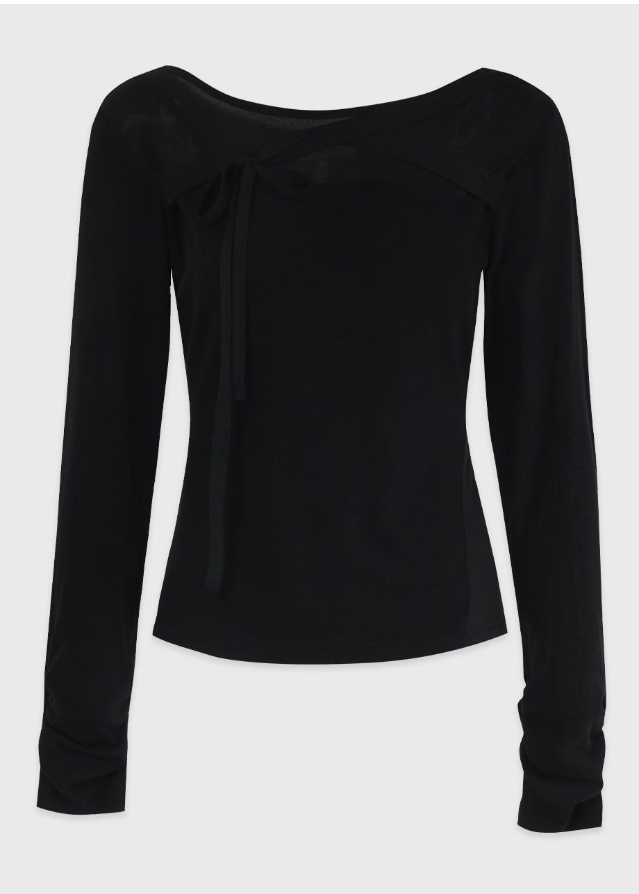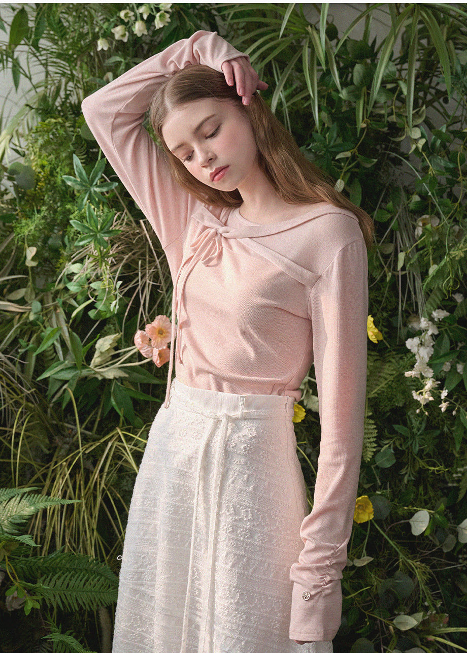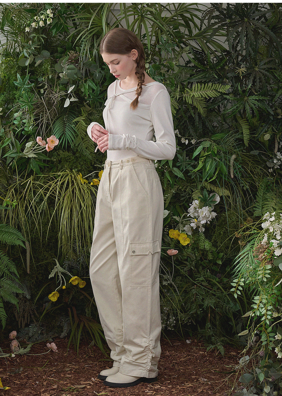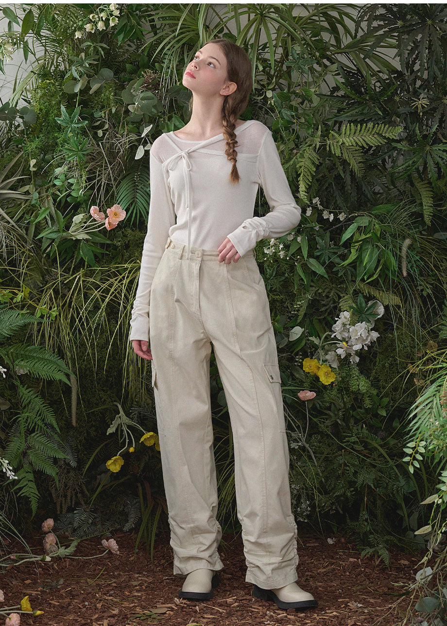 ロマンチックな感性のロングスリーブTシャツです。ネックラインから袖にかけて透け感のある異素材を配し、肩ストラップと袖のシャーリングがフェミニンな印象を引き立てます。*装飾が施された製品のため、クリーニング専門店でのお手入れをおすすめいたします。
