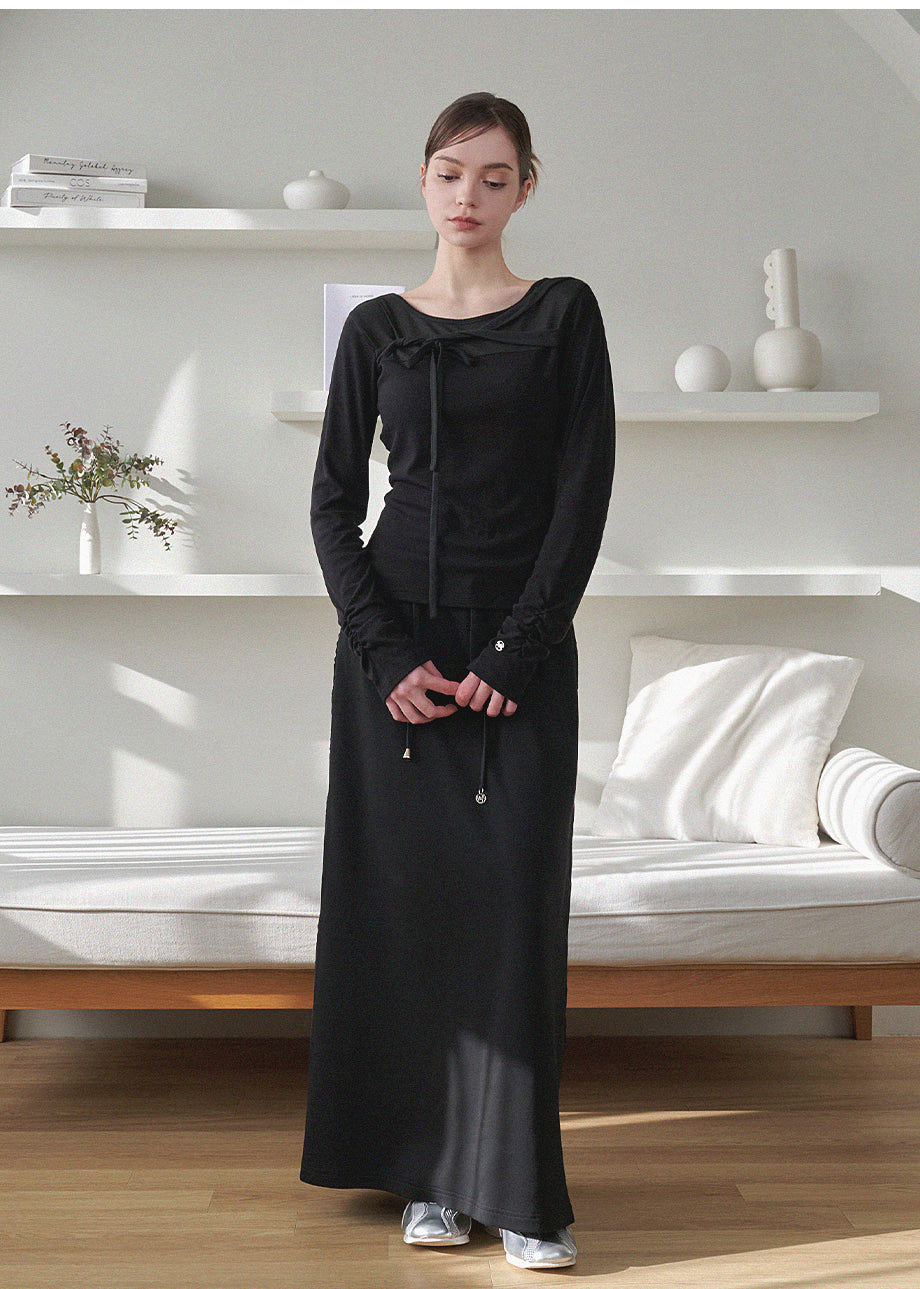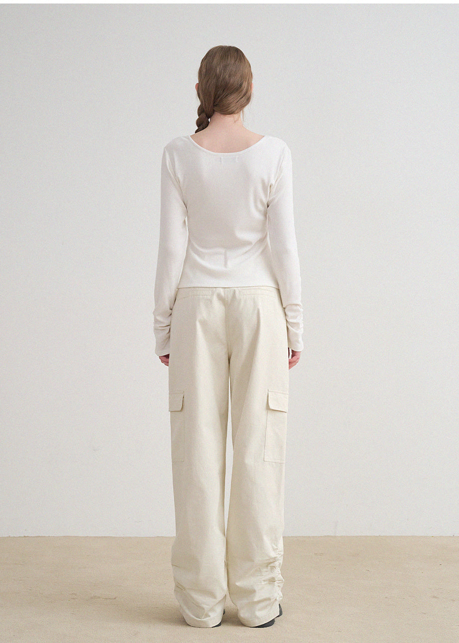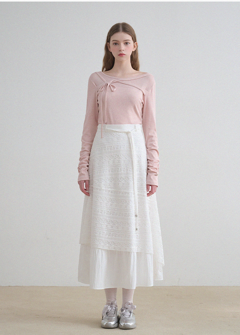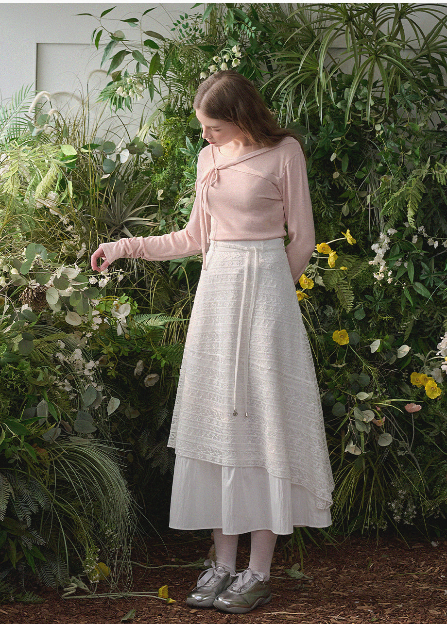 ロマンチックな感性のロングスリーブTシャツです。ネックラインから袖にかけて透け感のある異素材を配し、肩ストラップと袖のシャーリングがフェミニンな印象を引き立てます。*装飾が施された製品のため、クリーニング専門店でのお手入れをおすすめいたします。