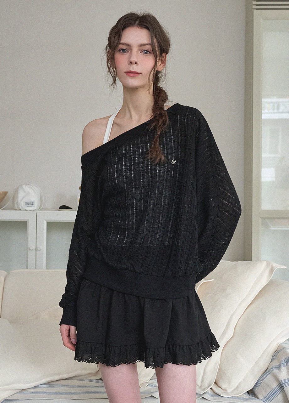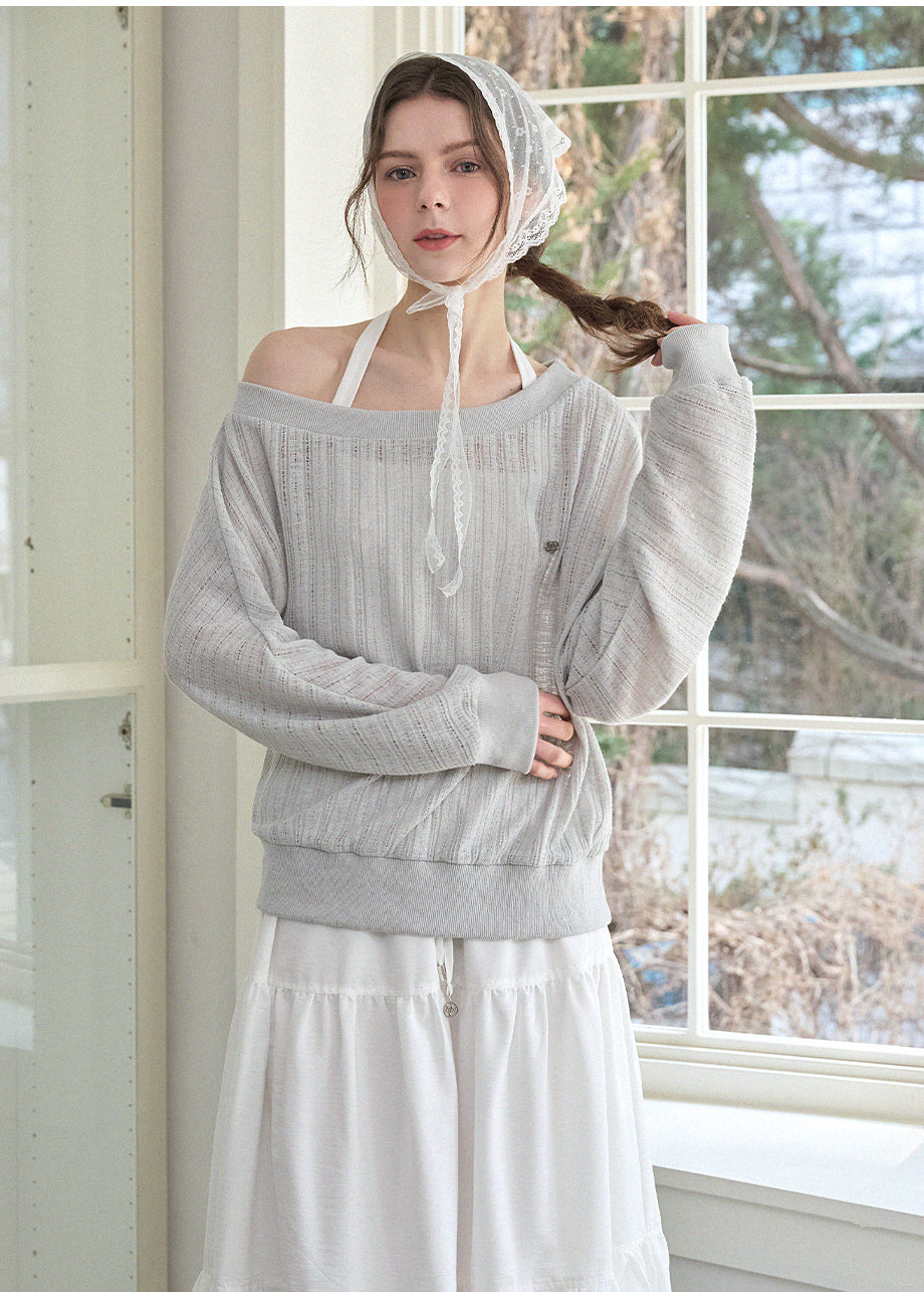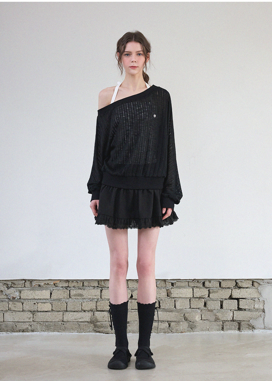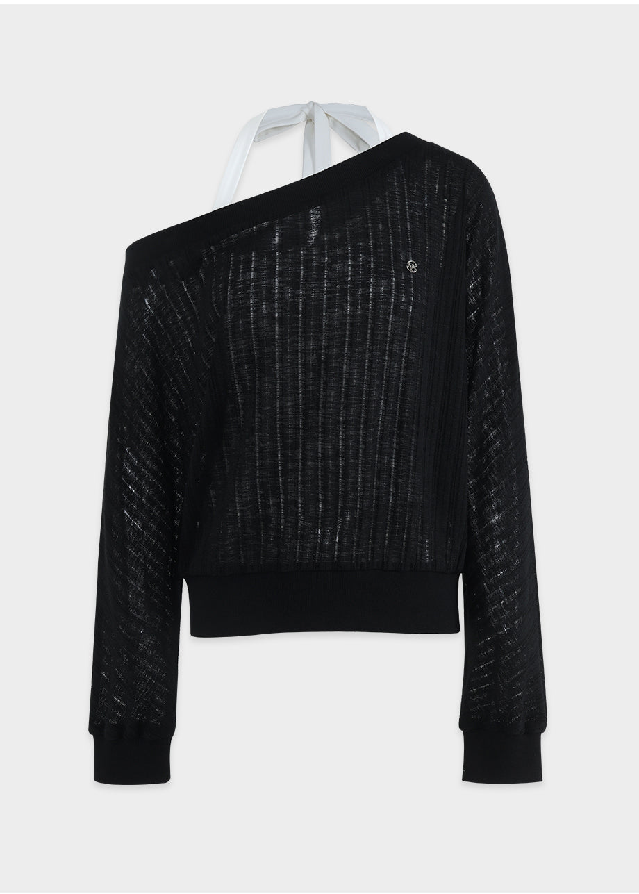 ヴィンテージ感のあるオフショルダーニット&スリーブレストップスのセットアップです。ルーズフィットのオフショルダーニットでフェミニンな印象に。インナーのホルターネックデザインがユニークなポイントとして引き立ちます。*装飾が施された製品のため、クリーニング専門店でのお手入れをおすすめいたします。