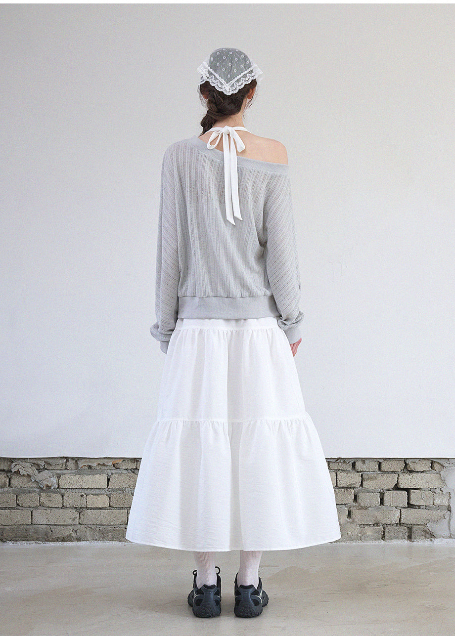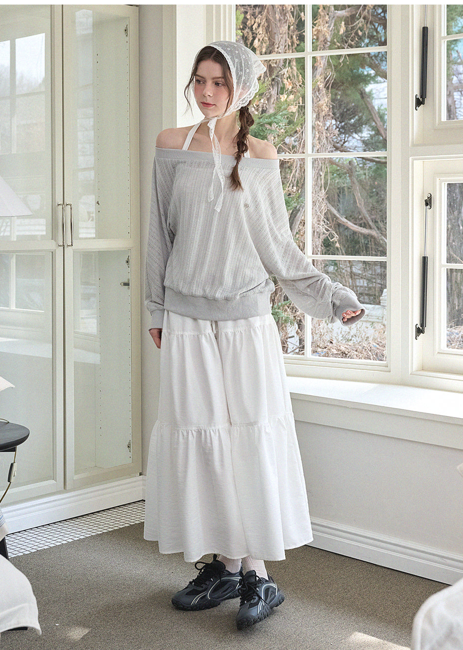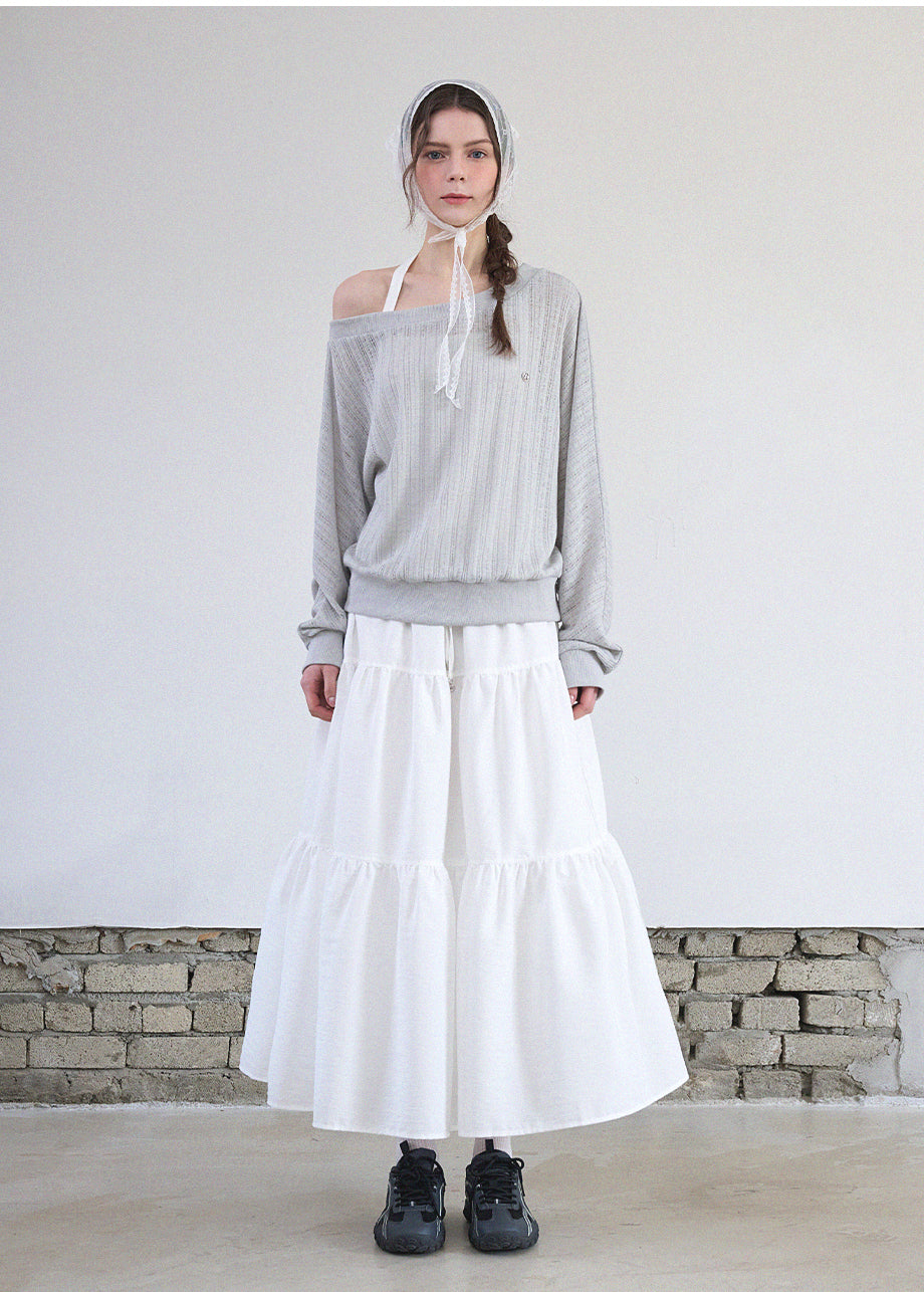 ヴィンテージ感のあるオフショルダーニット&スリーブレストップスのセットアップです。ルーズフィットのオフショルダーニットでフェミニンな印象に。インナーのホルターネックデザインがユニークなポイントとして引き立ちます。*装飾が施された製品のため、クリーニング専門店でのお手入れをおすすめいたします。