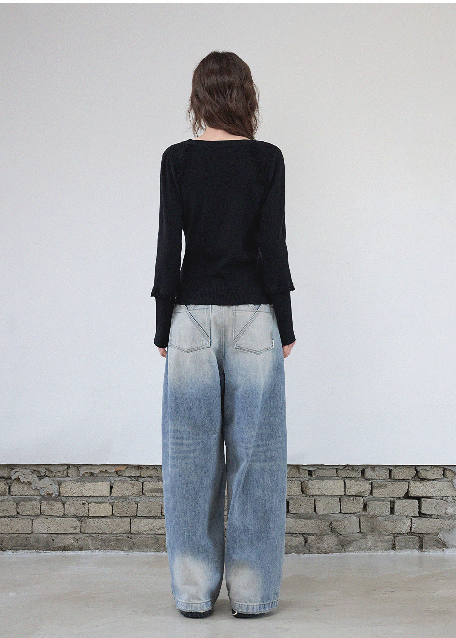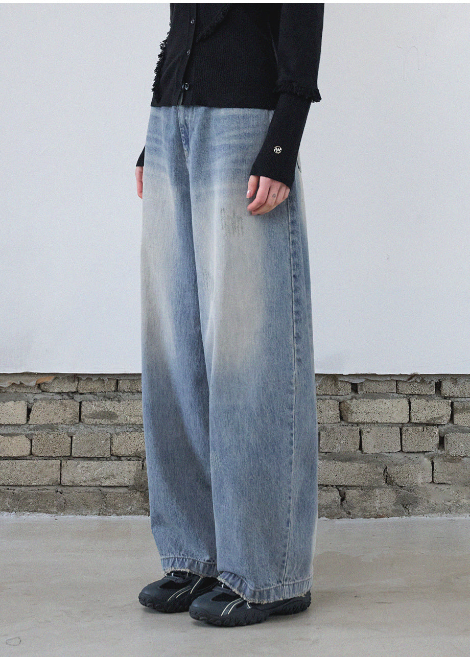 ヴィンテージ感のあるデニムワイドパンツです。ワイドなシルエットにバルーンスタイルで、トレンド感のあるコーデが楽しめます。フロントのミニポケットとバックポケットに施されたカットラインが、ユニークな雰囲気をプラスします。*装飾が施された製品のため、クリーニング専門店でのお手入れをおすすめいたします。