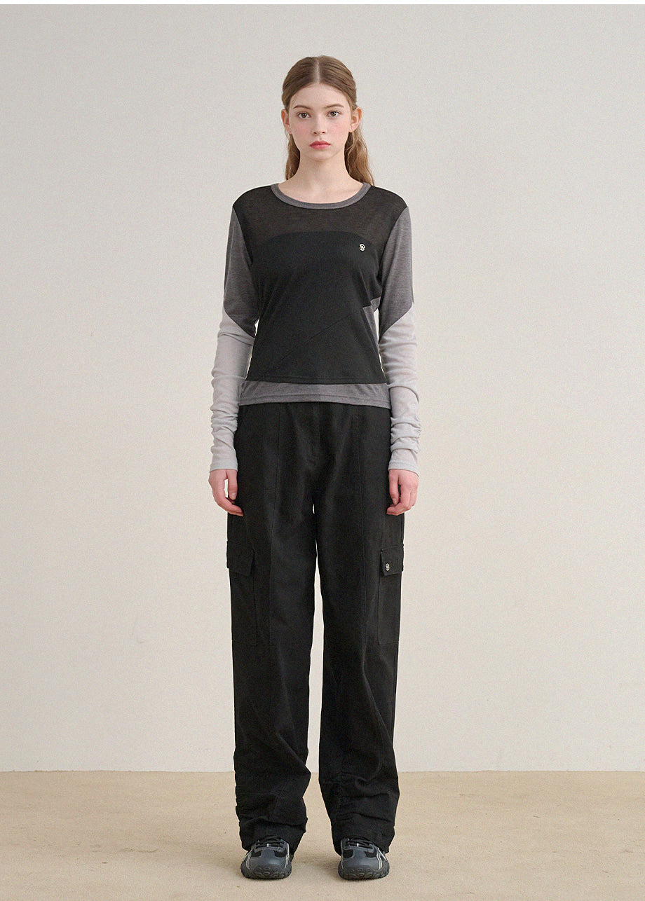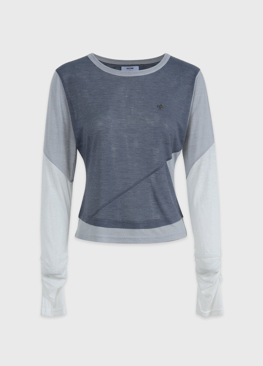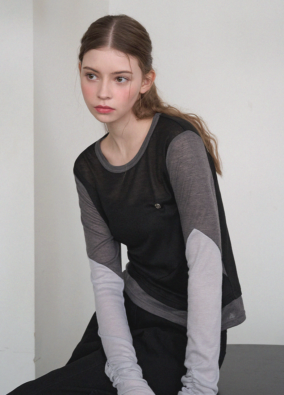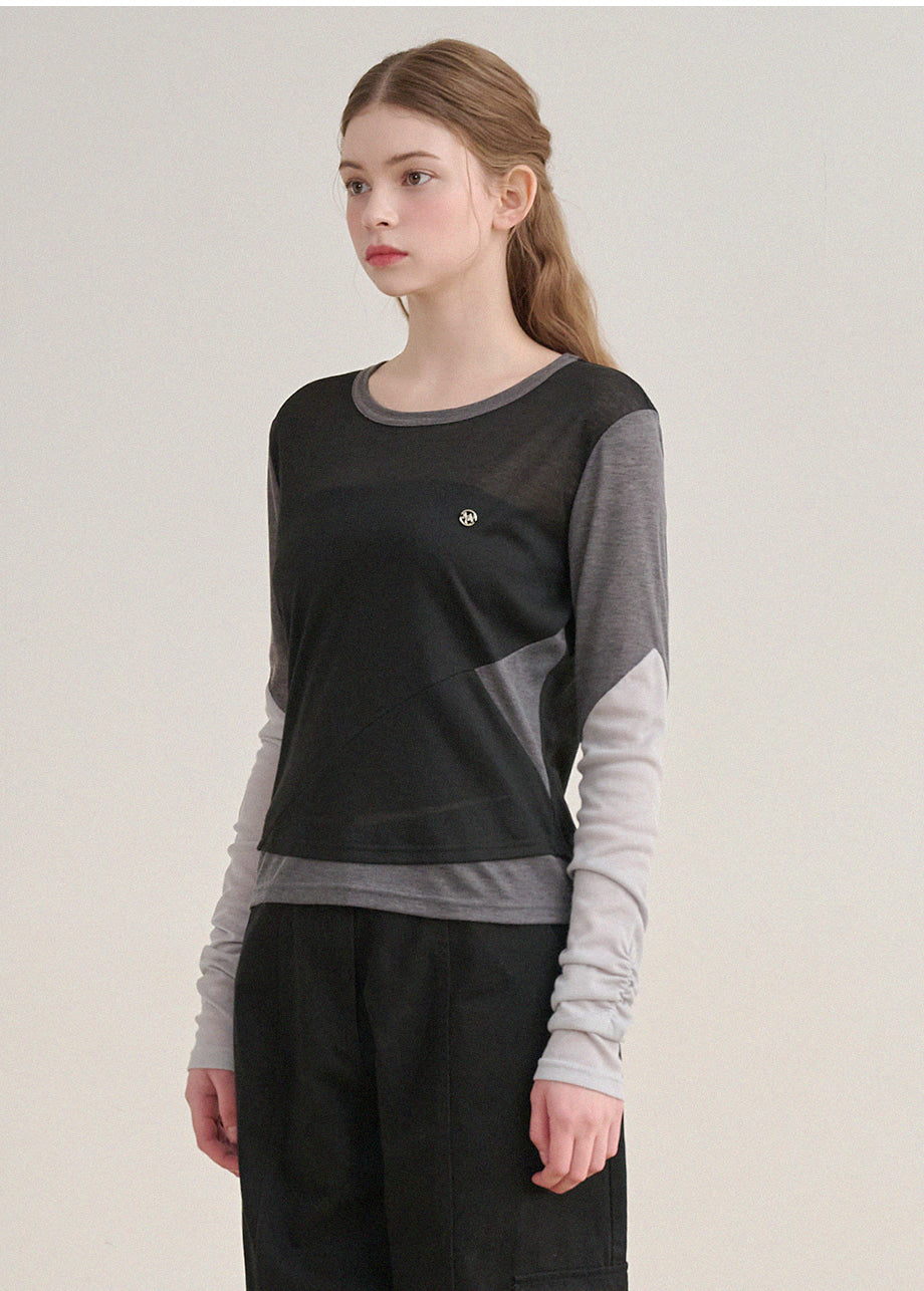 スポーティーな感性のロングスリーブTシャツです。ソフトな肌触りと伸縮性に優れた素材で、肌への刺激なく快適な着心地を実現しました。カラー配色とシャーリングディテールで、ユニークかつフェミニンなムードを演出します。*装飾が施された製品のため、クリーニング専門店でのお手入れをおすすめいたします。