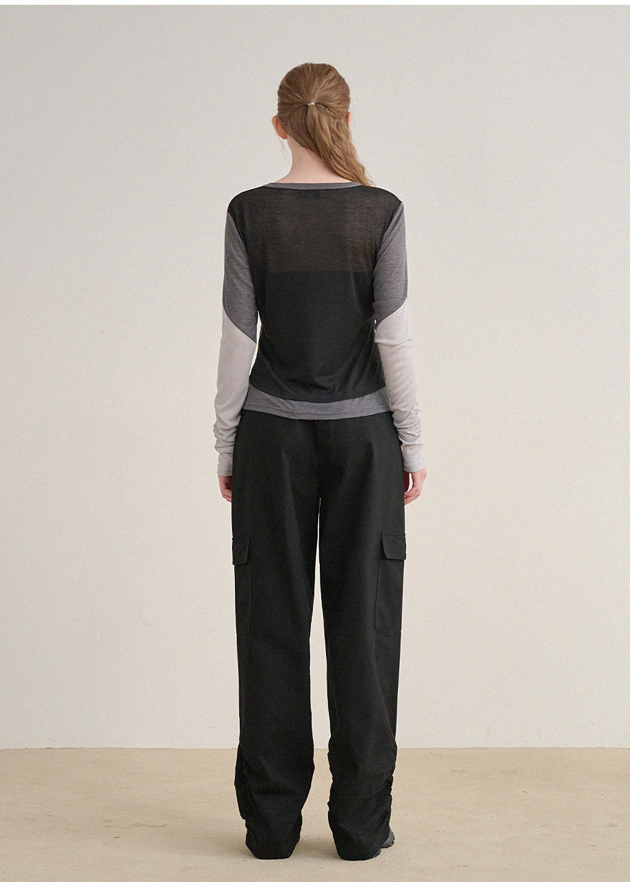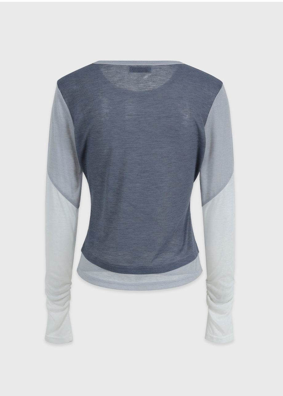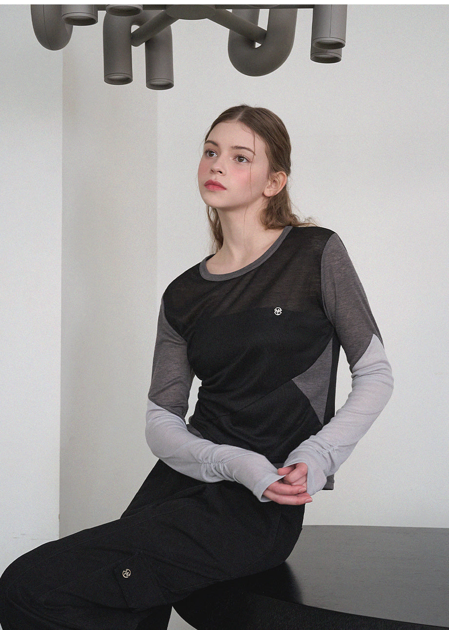 スポーティーな感性のロングスリーブTシャツです。ソフトな肌触りと伸縮性に優れた素材で、肌への刺激なく快適な着心地を実現しました。カラー配色とシャーリングディテールで、ユニークかつフェミニンなムードを演出します。*装飾が施された製品のため、クリーニング専門店でのお手入れをおすすめいたします。