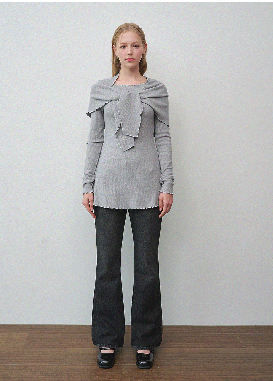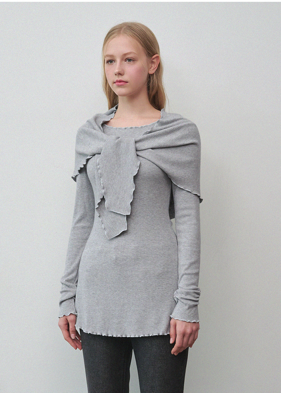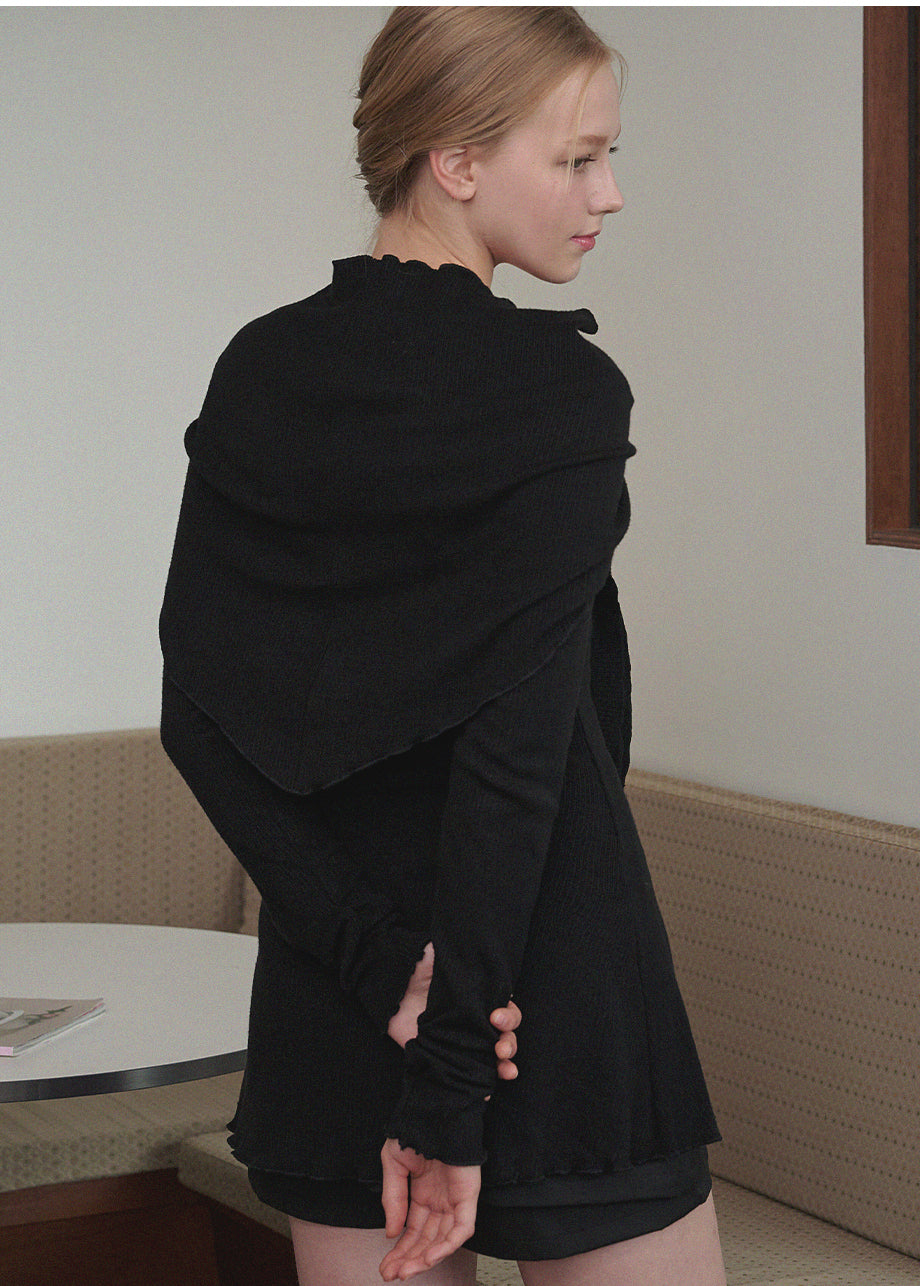 フェミニンでカジュアルな雰囲気のミニワンピースとスカーフのセットアップです。優れたストレッチ性を持つ柔らかなリブ丸編み生地で仕立てられており、チクチクせず、体型をカバーしながら快適な着心地を楽しめます。セットのスカーフはショールとして肩にかけたり、ウエストベルトとして使うことで、トレンド感のある洗練されたスタイリングが可能です。ボートネックにAラインシルエットで、単体ではもちろん、ボトムスとレイヤードしてギークシックなムードを演出するのもおすすめです。袖にはシャーリングディテールを施し、華奢な印象をプラス。ネックラインの後ろ中央にはペンダント風の装飾を加え、上品に仕上げました。*装飾が施された製品のため、クリーニング専門店でのお手入れをおすすめいたします。やむを得ず洗濯機をご使用の際は、ネットに入れて冷水で洗濯することをおすすめいたします。