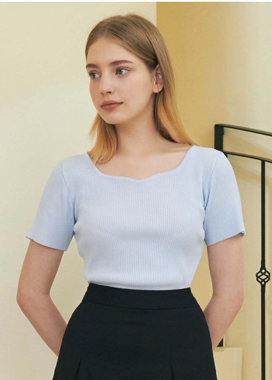 デイリーフェミニンムードが感じられるニットTシャツです。しっかりとした夏用の高密度糸で編み上げ、涼しく快適な着心地を実現しました。