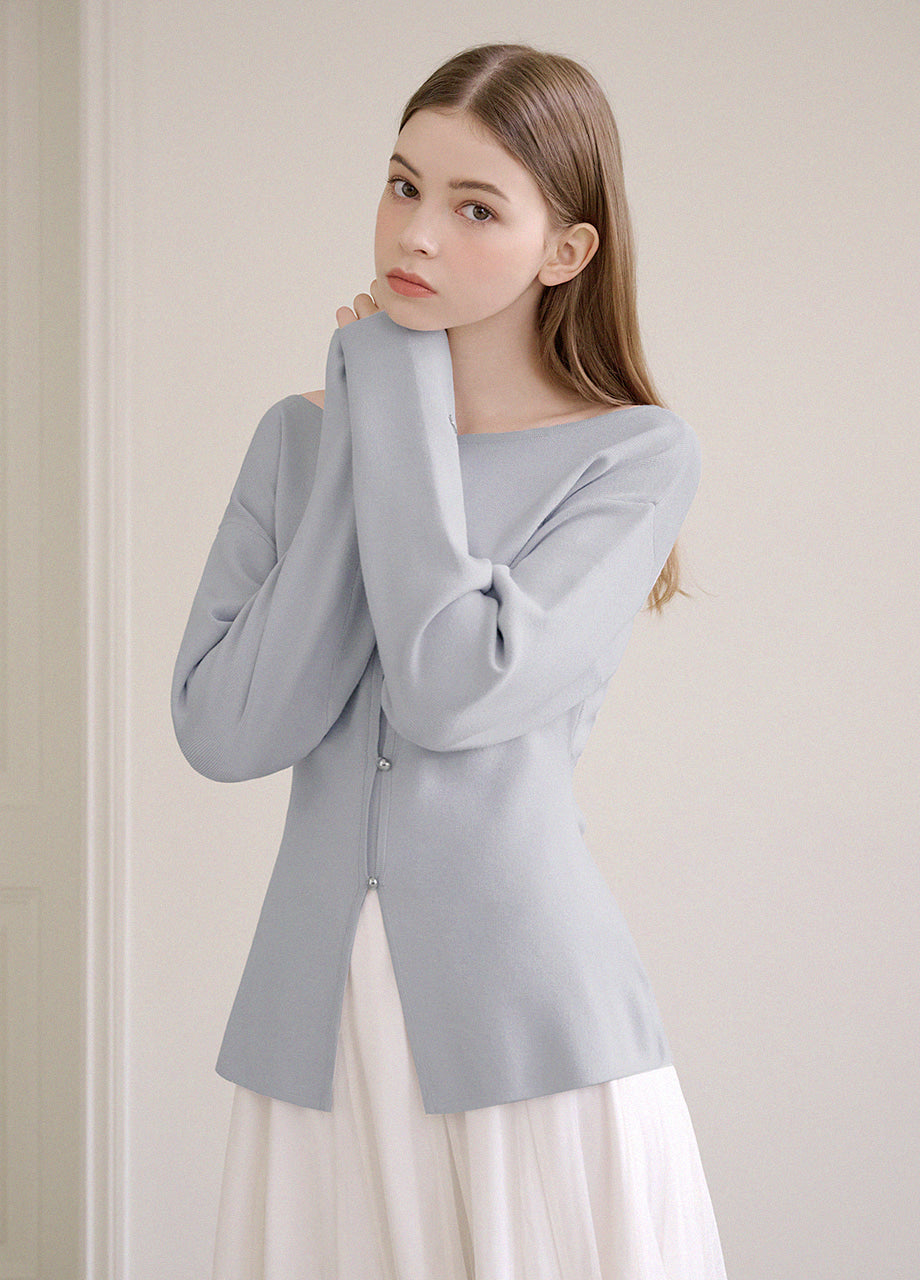 フェミニンな感性のロングスリーブニットです。ボートネックとウエストを引き締めるラインが、スリムなシルエットを演出します。*装飾が施された製品のため、クリーニング専門店でのお手入れをおすすめいたします。