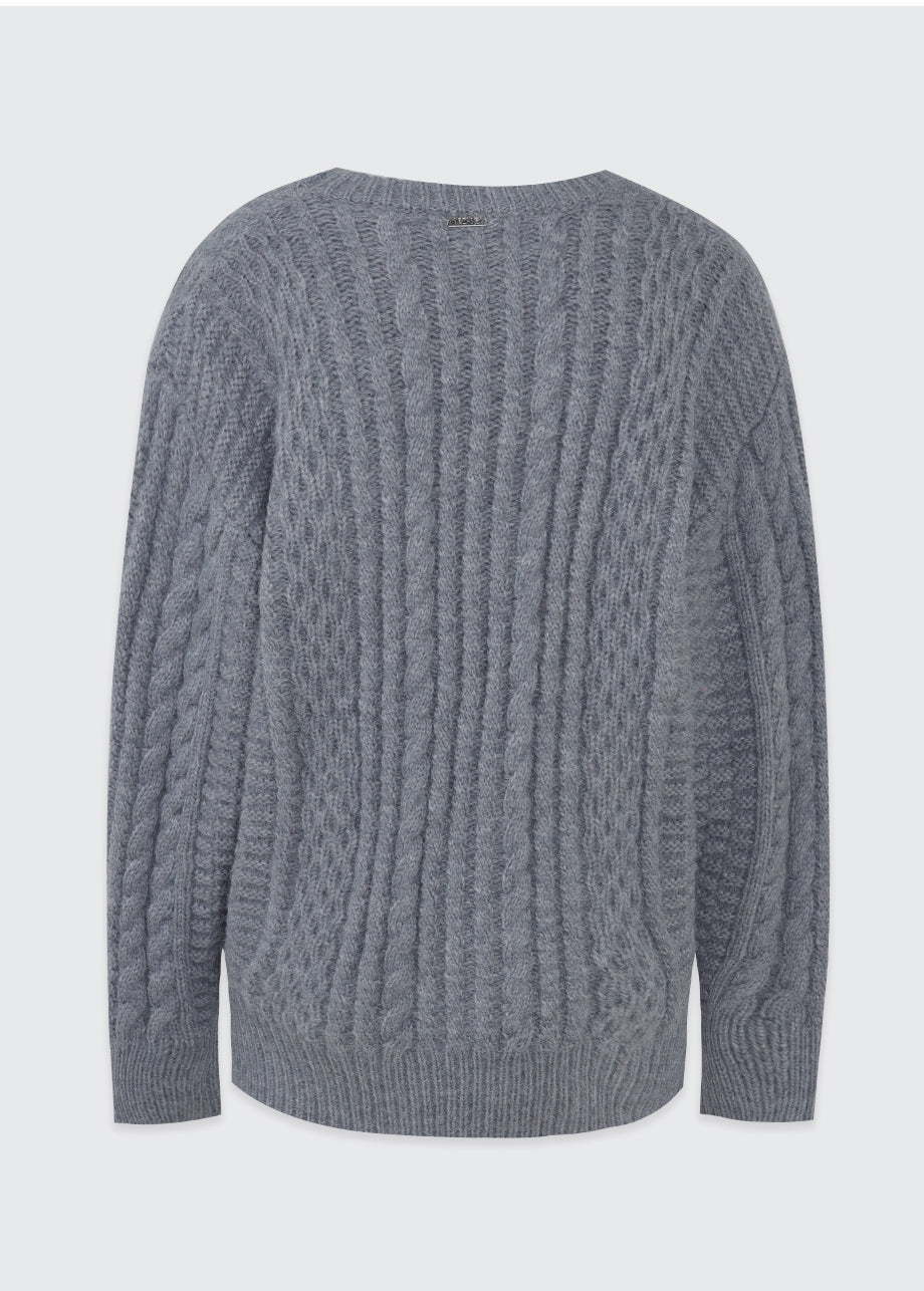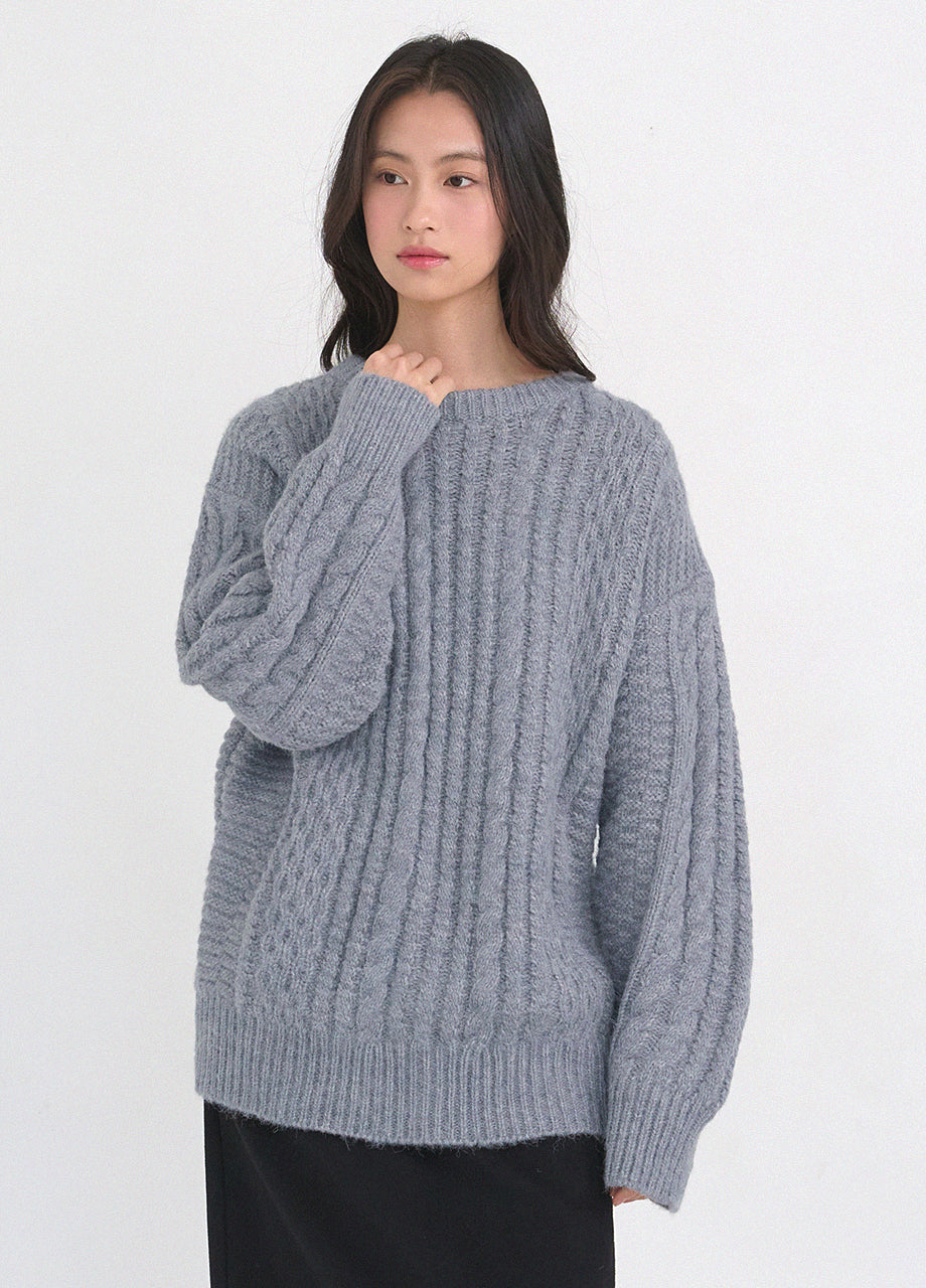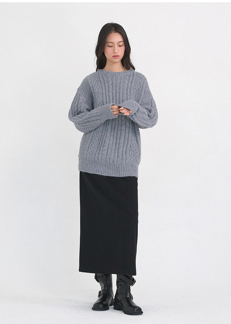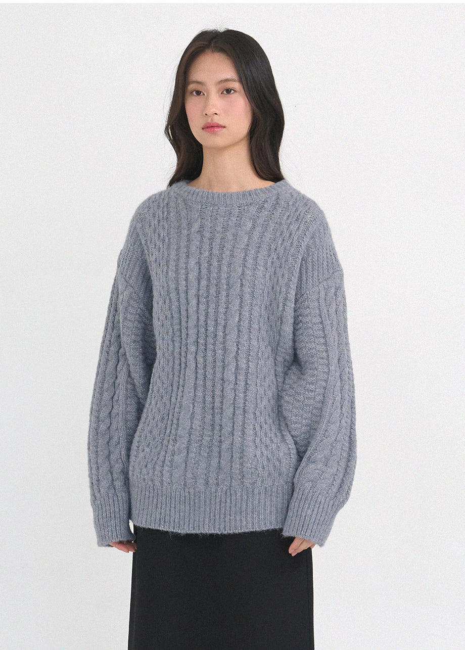 クラシックカジュアルムードのニットです。柔らかく密度の高い高品質なウール混糸を使用し、優れた保温性と快適な着心地が特徴です。コージーな雰囲気のツイスト編みでオーバーフィットに仕上げ、シーズンムードを感じられるスタイリングが楽しめます。しっかりとした編み地で耐久性を高め、長くご愛用いただけます。カジュアルなデザインで単独でもインナーニットとしても多様に活用可能です。バックネック中央にはペンダント風の装飾を加え、上品に仕上げました。*装飾や特殊な素材の製品のため、クリーニング専門店でのお手入れをおすすめいたします。