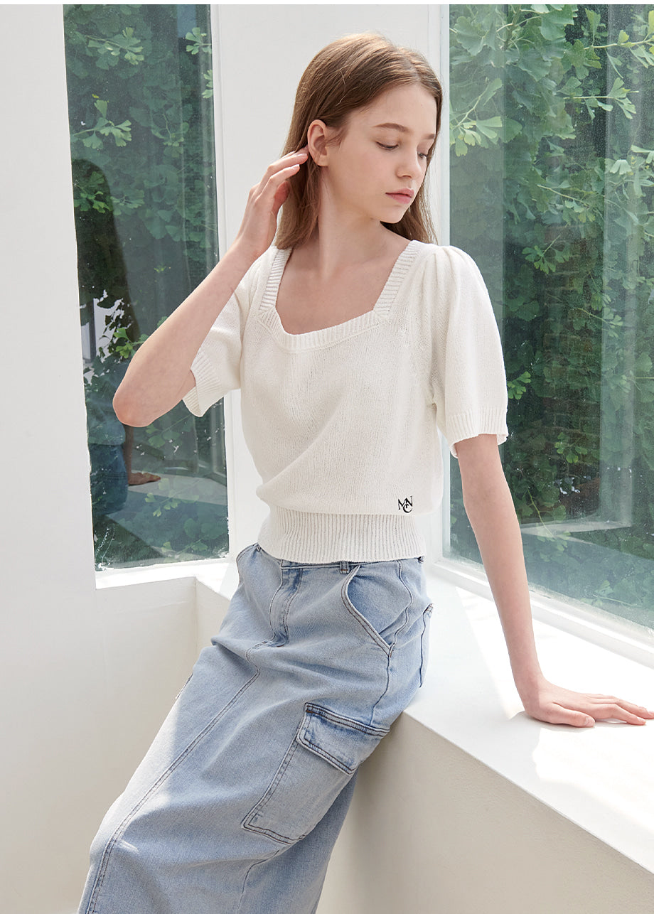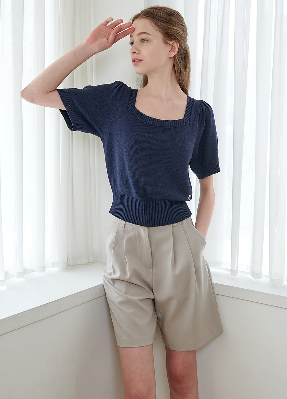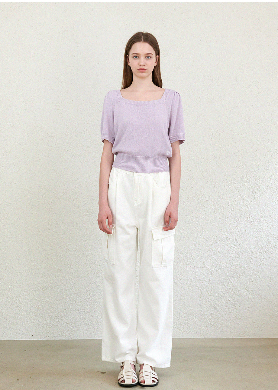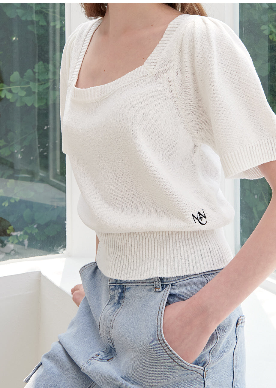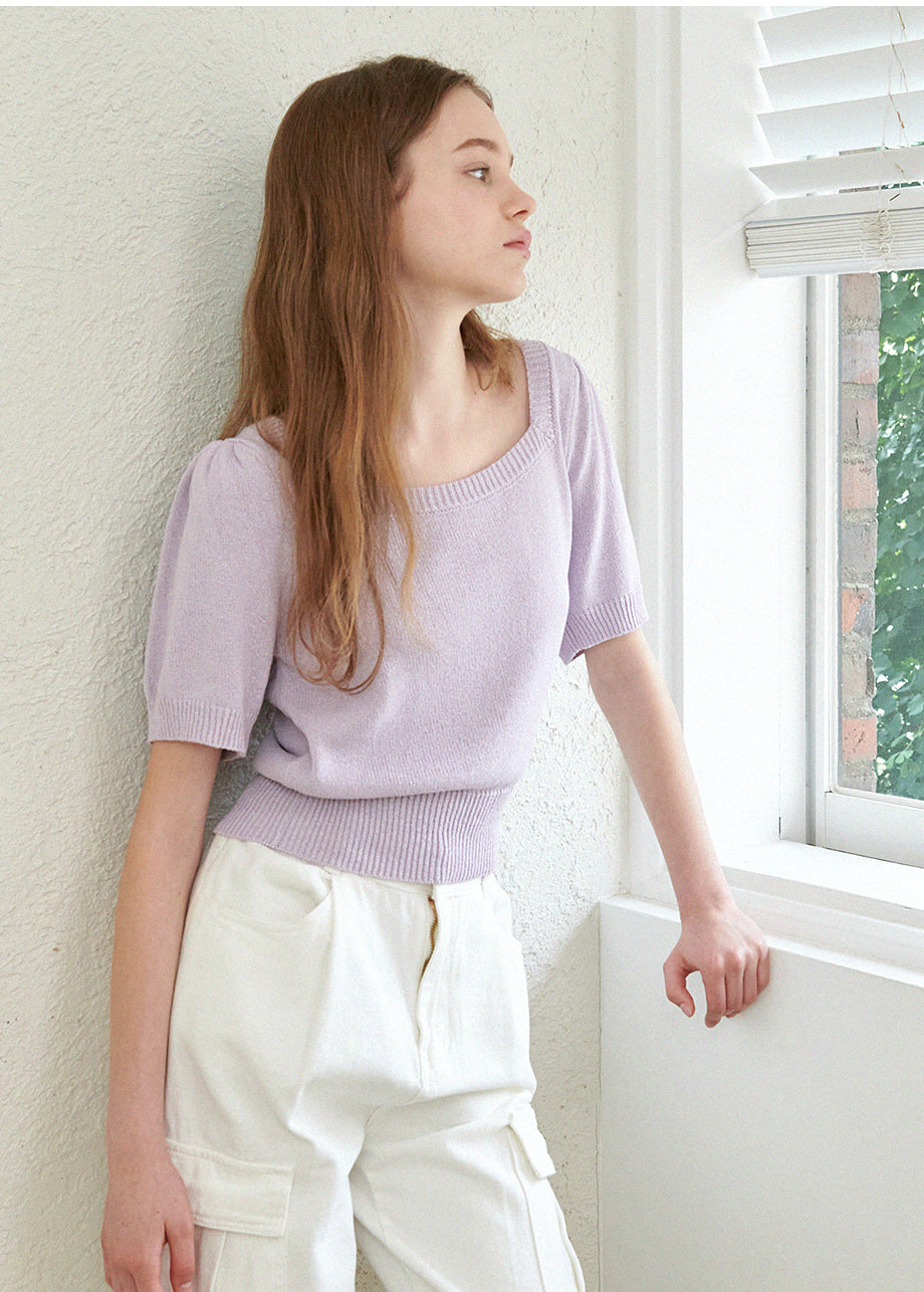 カジュアルなムードの半袖ニットです。しっかりとした夏用糸で編み上げられたニットで、涼しく快適に着用いただけます。