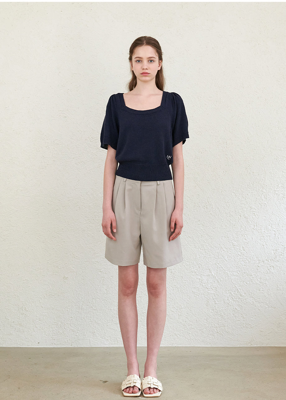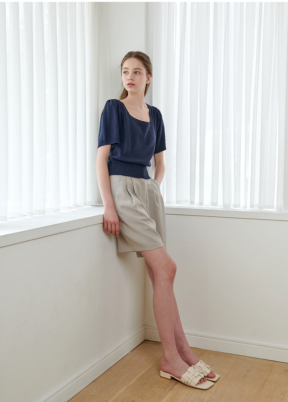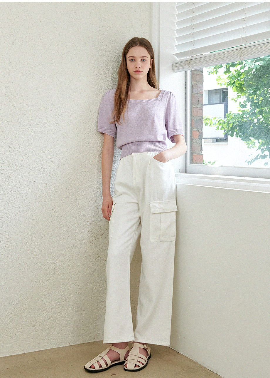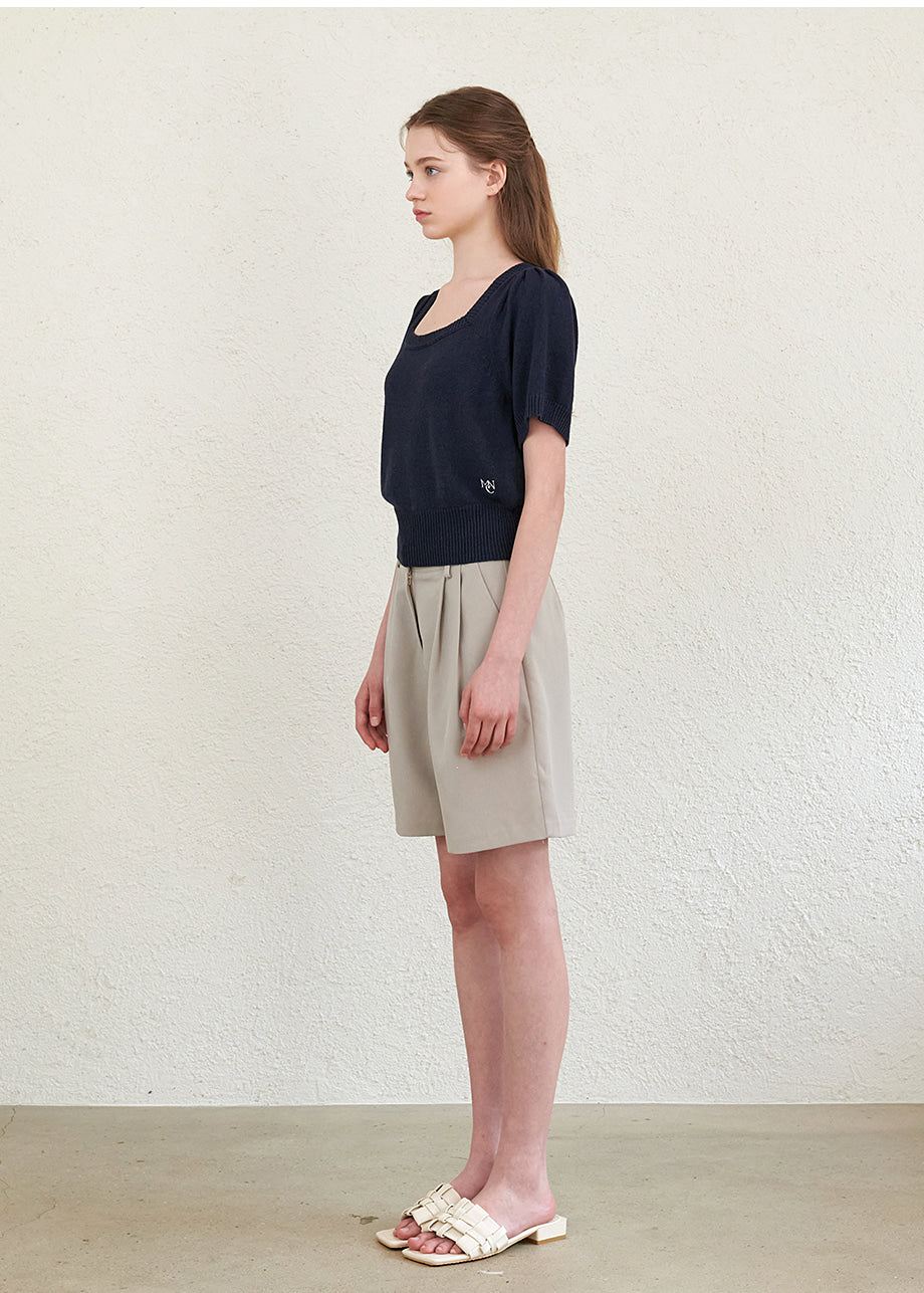 カジュアルなムードの半袖ニットです。しっかりとした夏用糸で編み上げられたニットで、涼しく快適に着用いただけます。