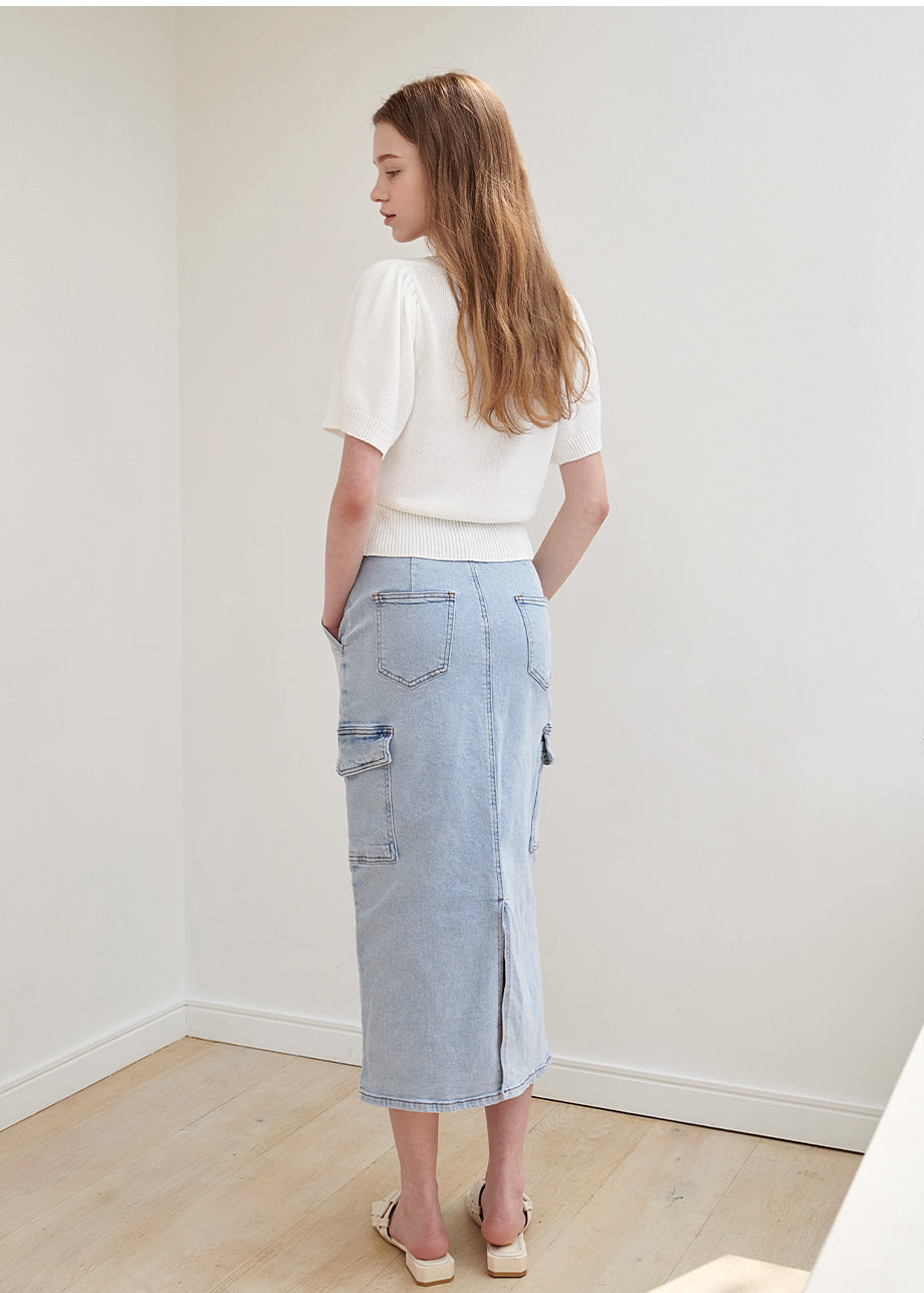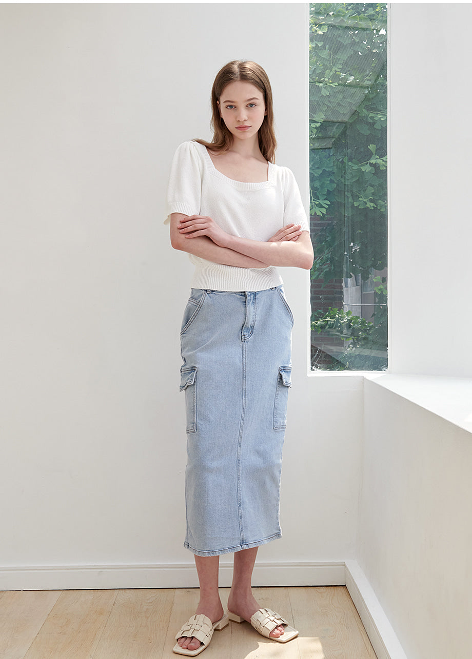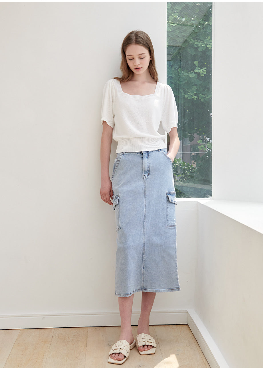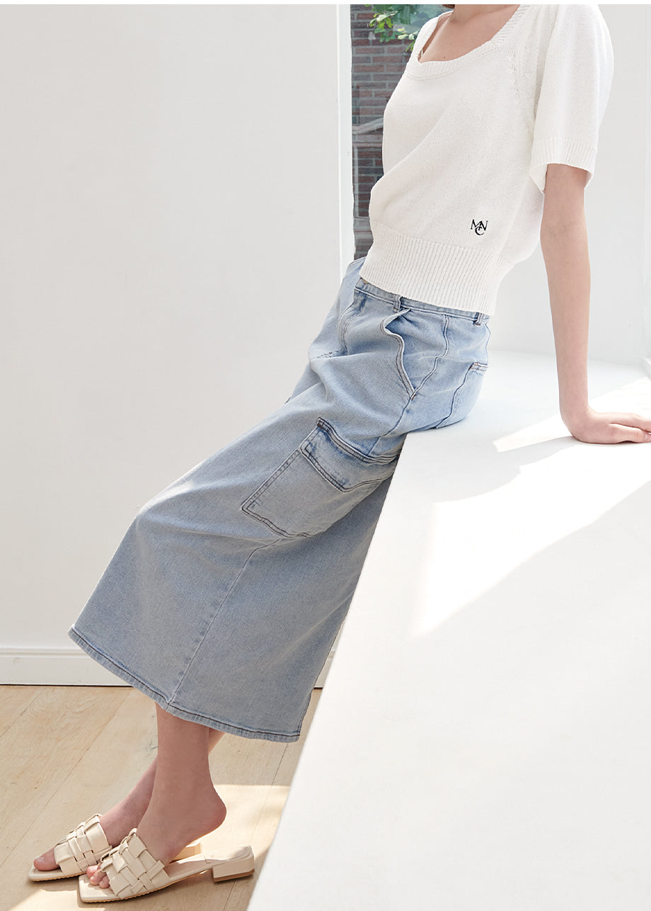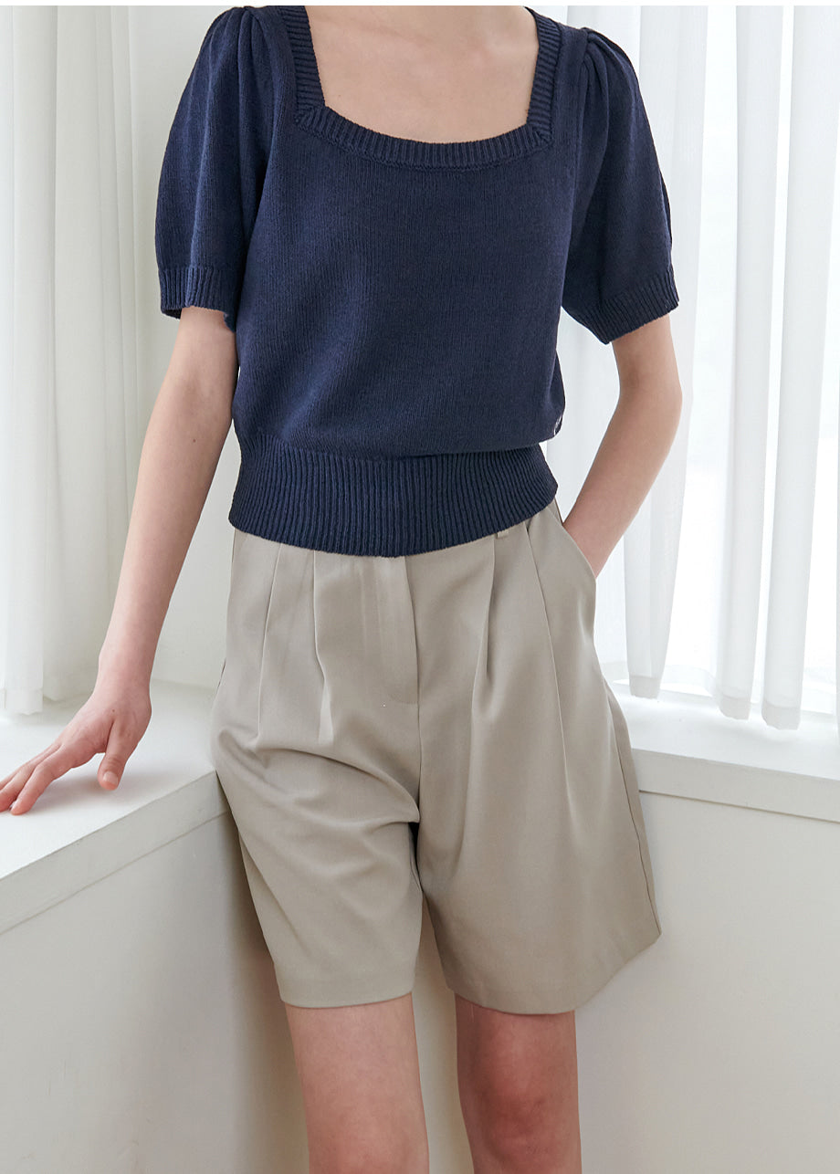 カジュアルなムードの半袖ニットです。しっかりとした夏用糸で編み上げられたニットで、涼しく快適に着用いただけます。