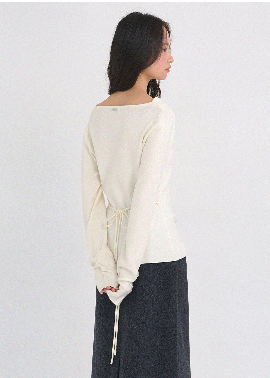 クラシックフェミニンムードのニットです。肌触りと耐久性に優れたニット糸を使用し、刺激のない柔らかく快適な着心地が特徴です。ボディラインを拾いにくい編み立てで、気軽に着用いただけます。カウルネックデザインのセミスリムフィットで、単品でもアウターのインナーとしても活躍。ウエストにはストラップが付いており、前後どちらでもお好みに合わせて結ぶことで、より洗練されたスタイルが完成します。袖にはシャーリングディテールを加え、女性らしくセンスのあるコーディネートを演出。バックネック中央にペンダント装飾をあしらい、上品に仕上げました。*装飾が施された製品のため、クリーニング専門店でのお手入れをおすすめいたします。