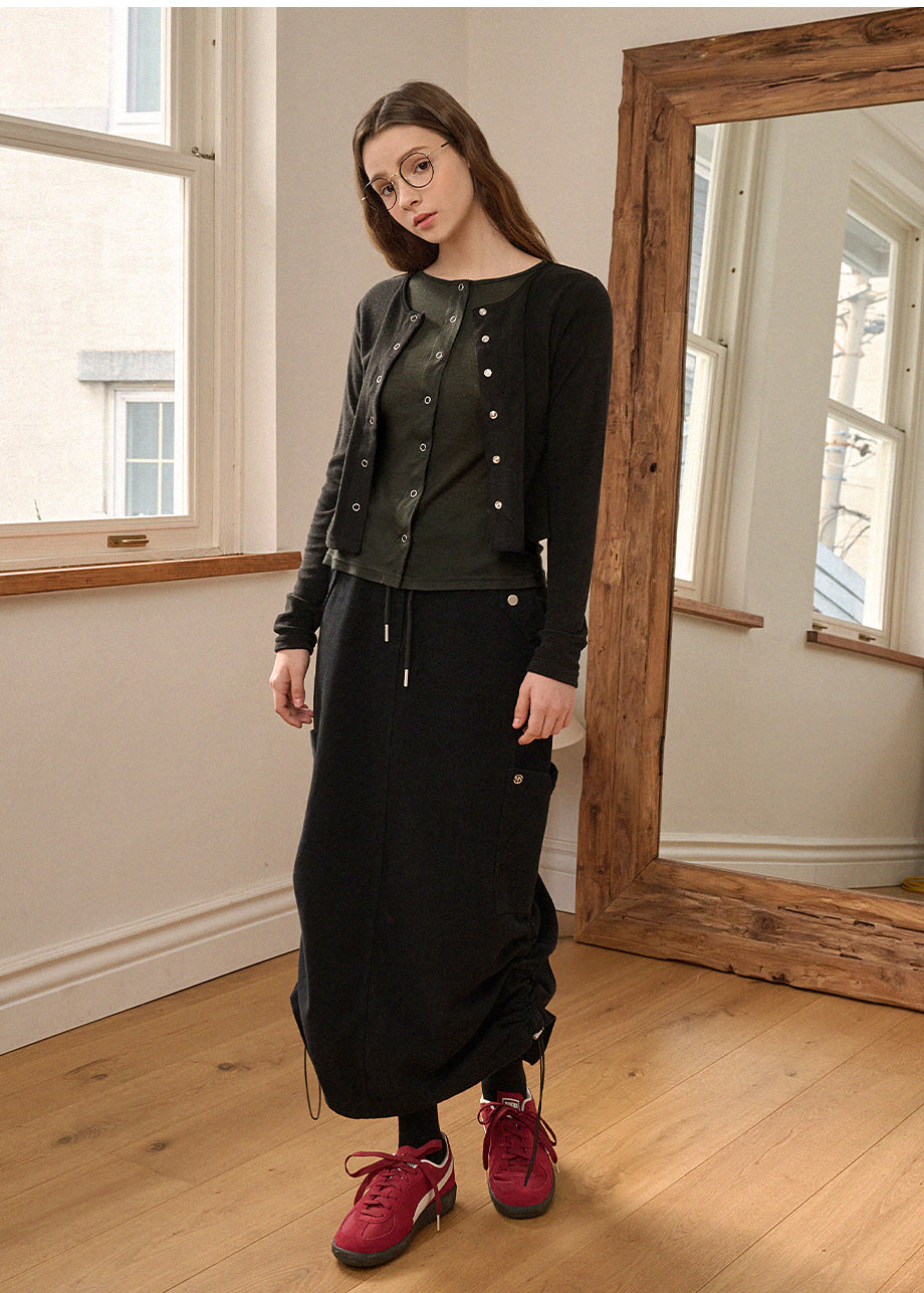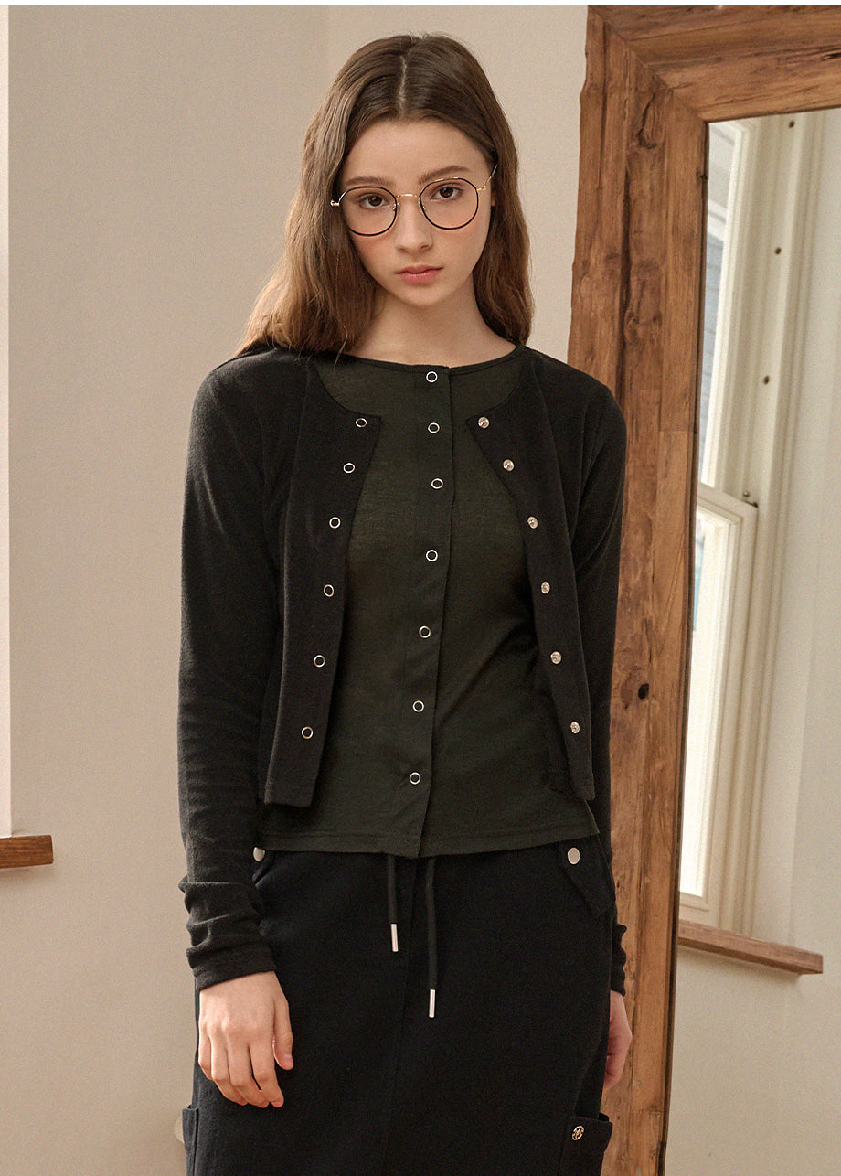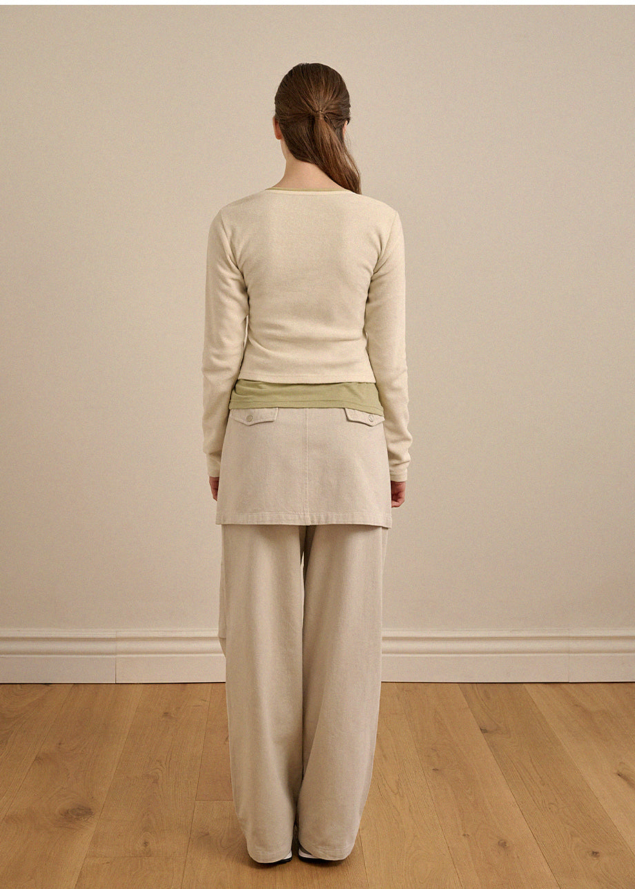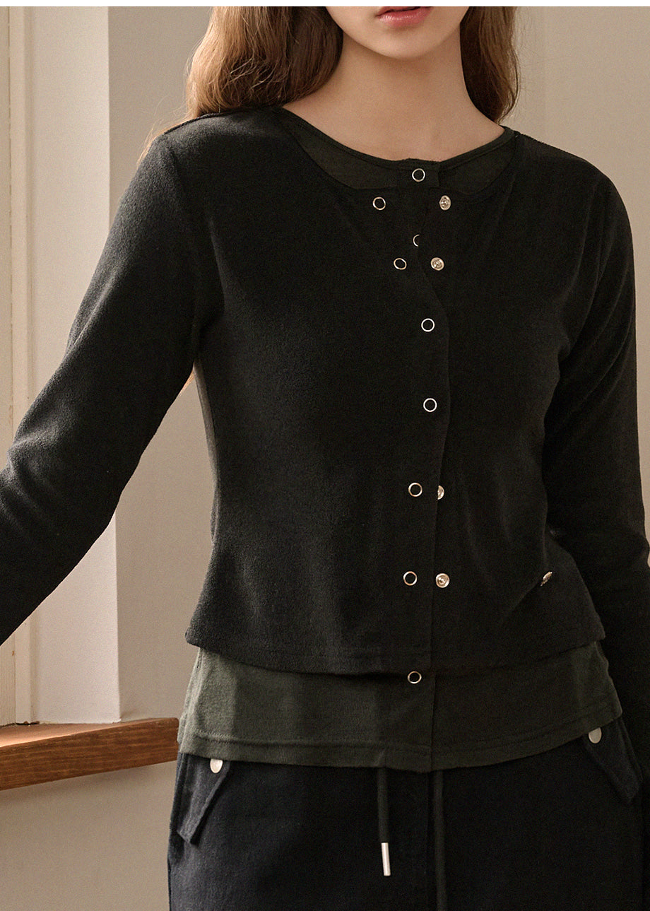 デイリーユニークムードのレイヤードカーディガンです。裏地には透け感のある柔らかい素材を、表地には適度な厚みのテリー素材を使用し、ムードと保温性を兼ね備えました。