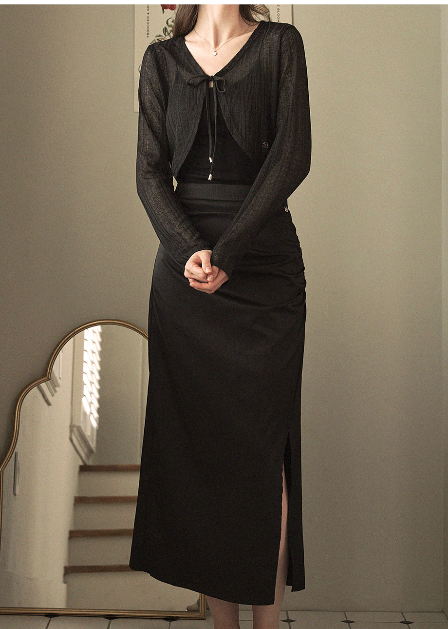 デイリームードで着用できる夏用の長袖カーディガンです。軽くてしっかりとした清涼感のある夏素材で、快適に着用いただけます。