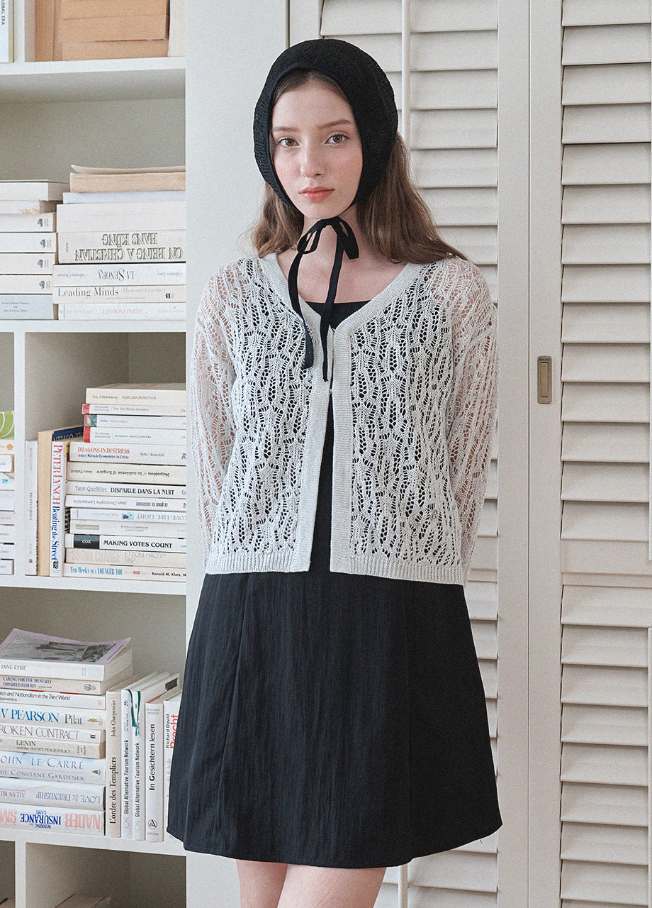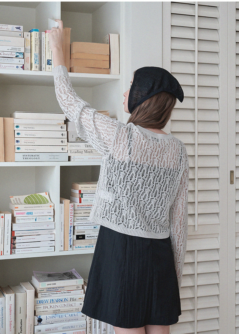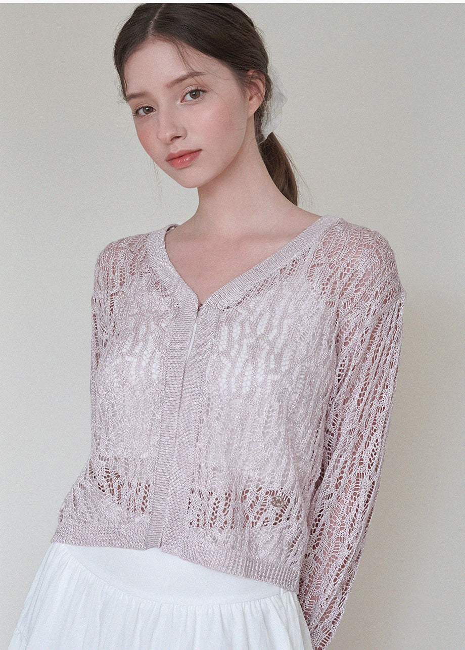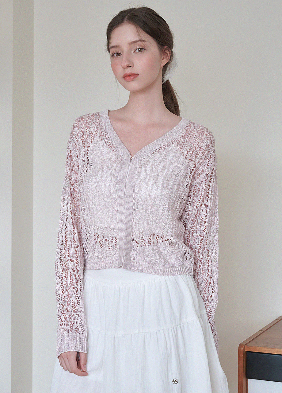 フェミニンな雰囲気の長袖カーディガン。通気性の良いニットと控えめなテクスチャーが、春夏の軽い羽織りに最適です。*装飾や特殊なデザインが施された製品のため、クリーニング専門店でのお手入れをおすすめいたします。