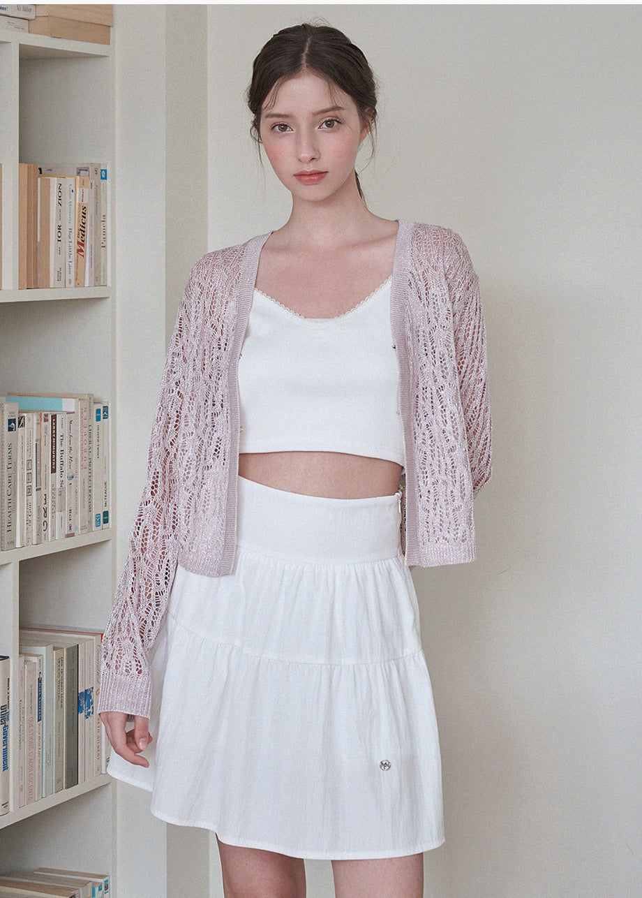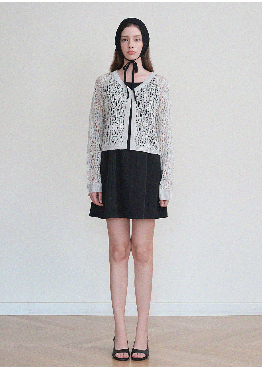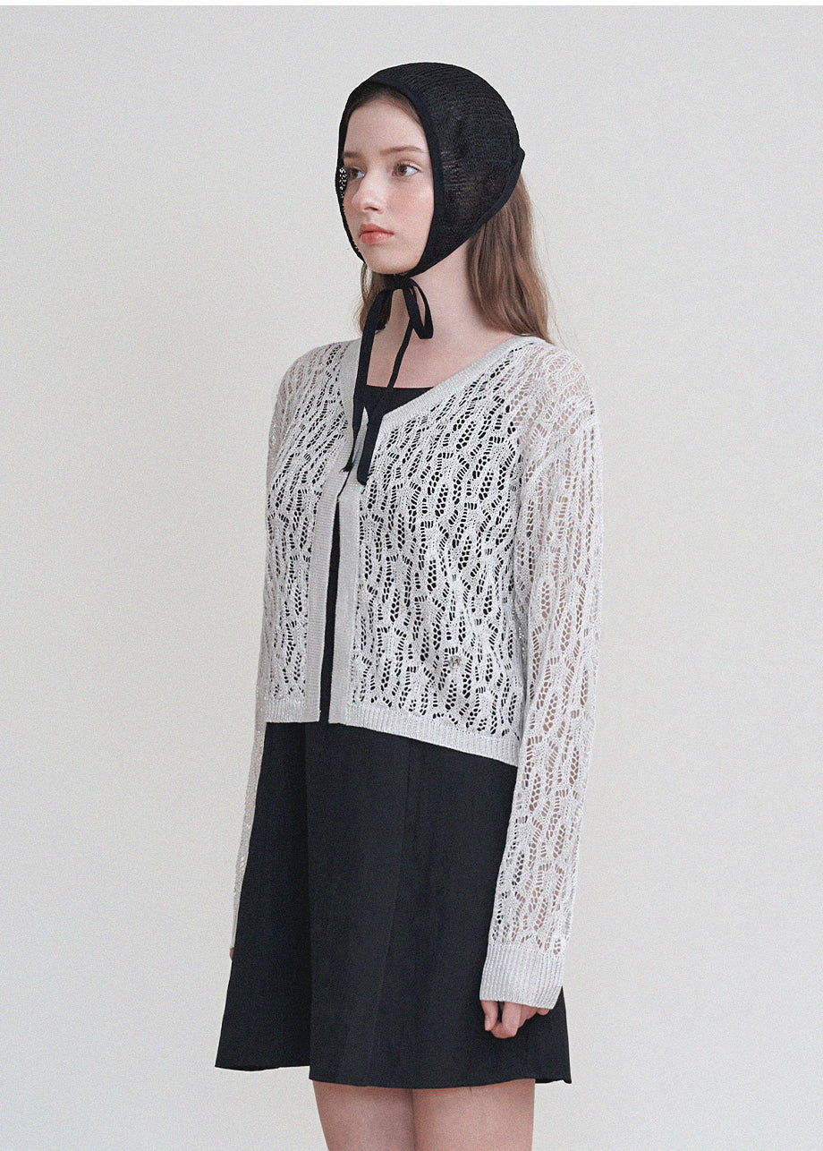 フェミニンな雰囲気の長袖カーディガン。通気性の良いニットと控えめなテクスチャーが、春夏の軽い羽織りに最適です。*装飾や特殊なデザインが施された製品のため、クリーニング専門店でのお手入れをおすすめいたします。