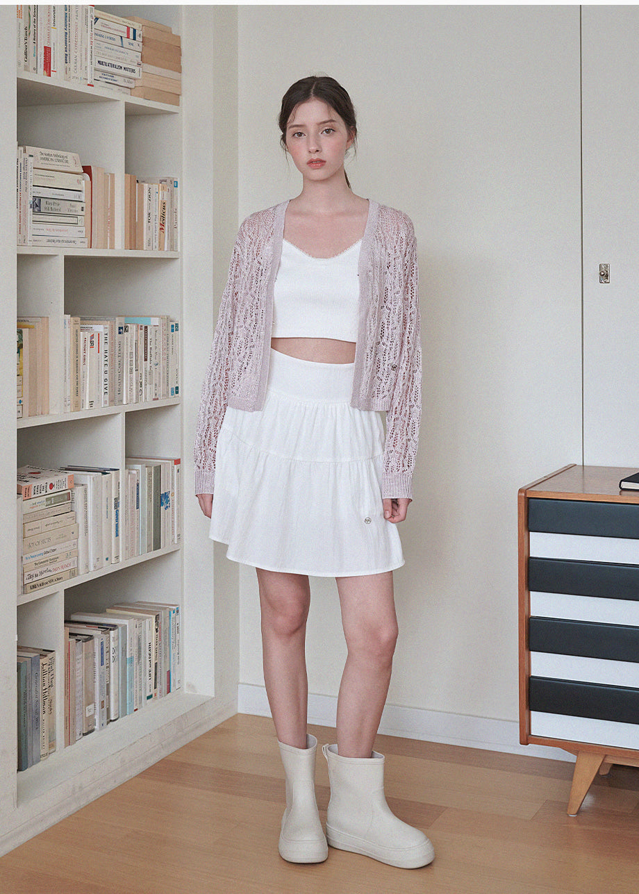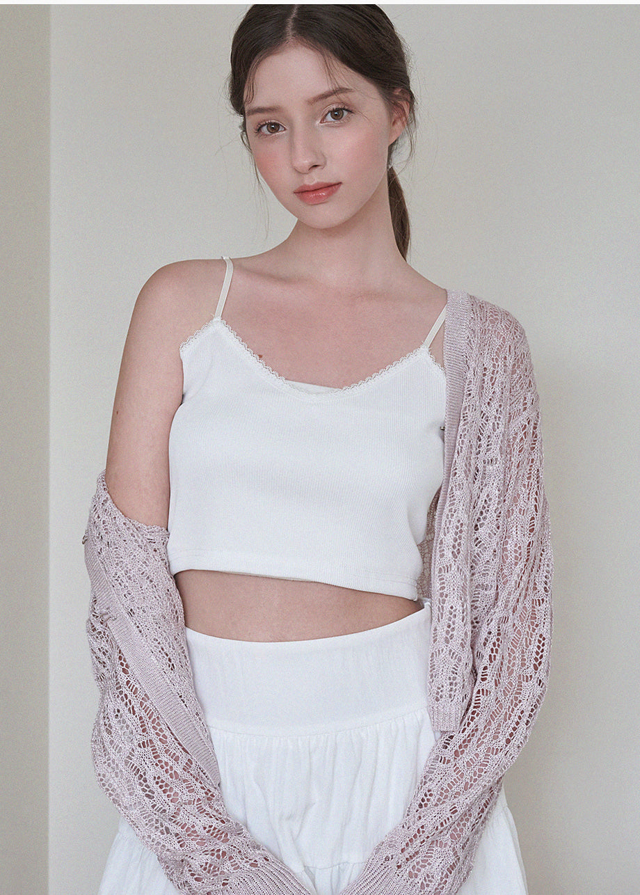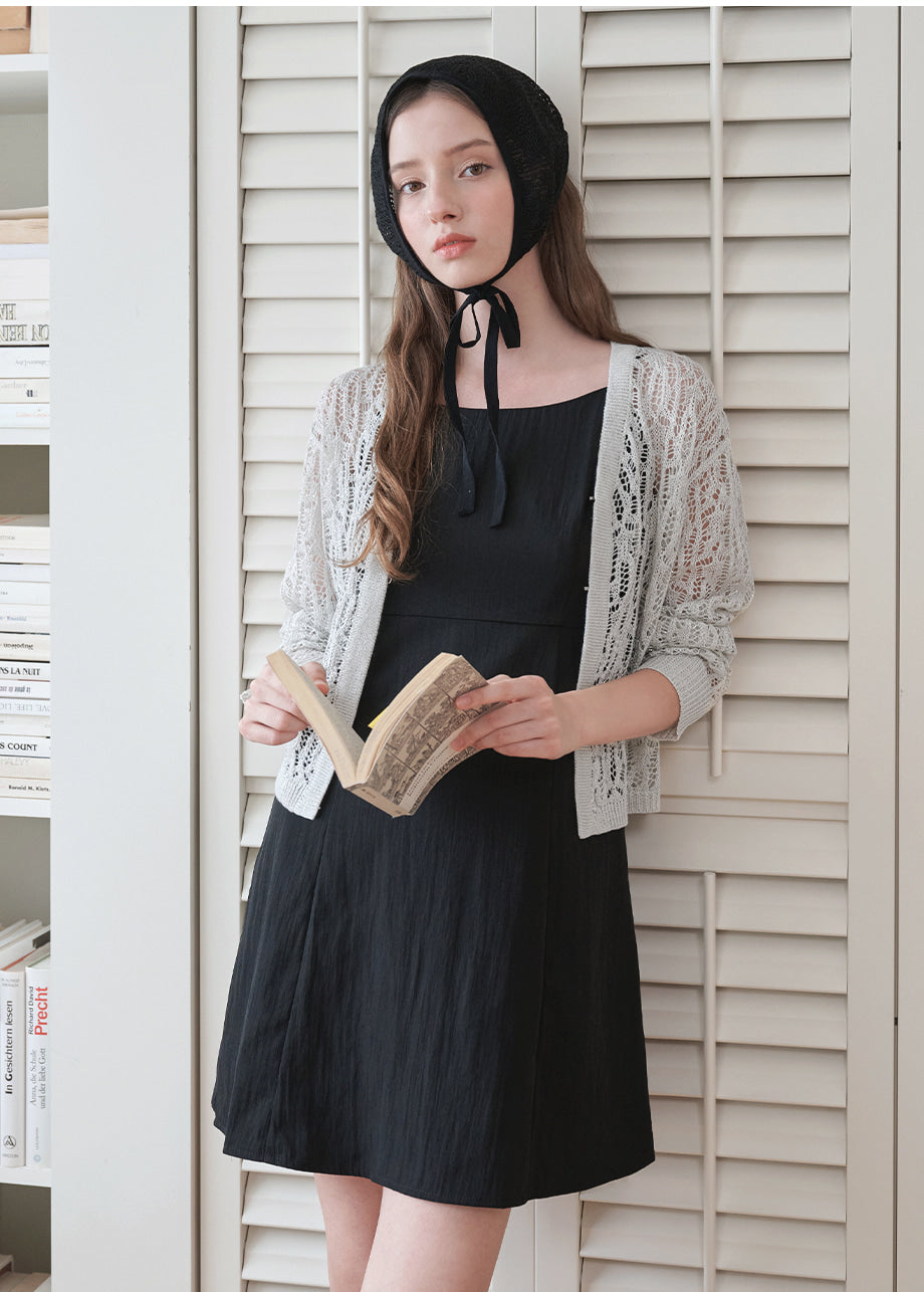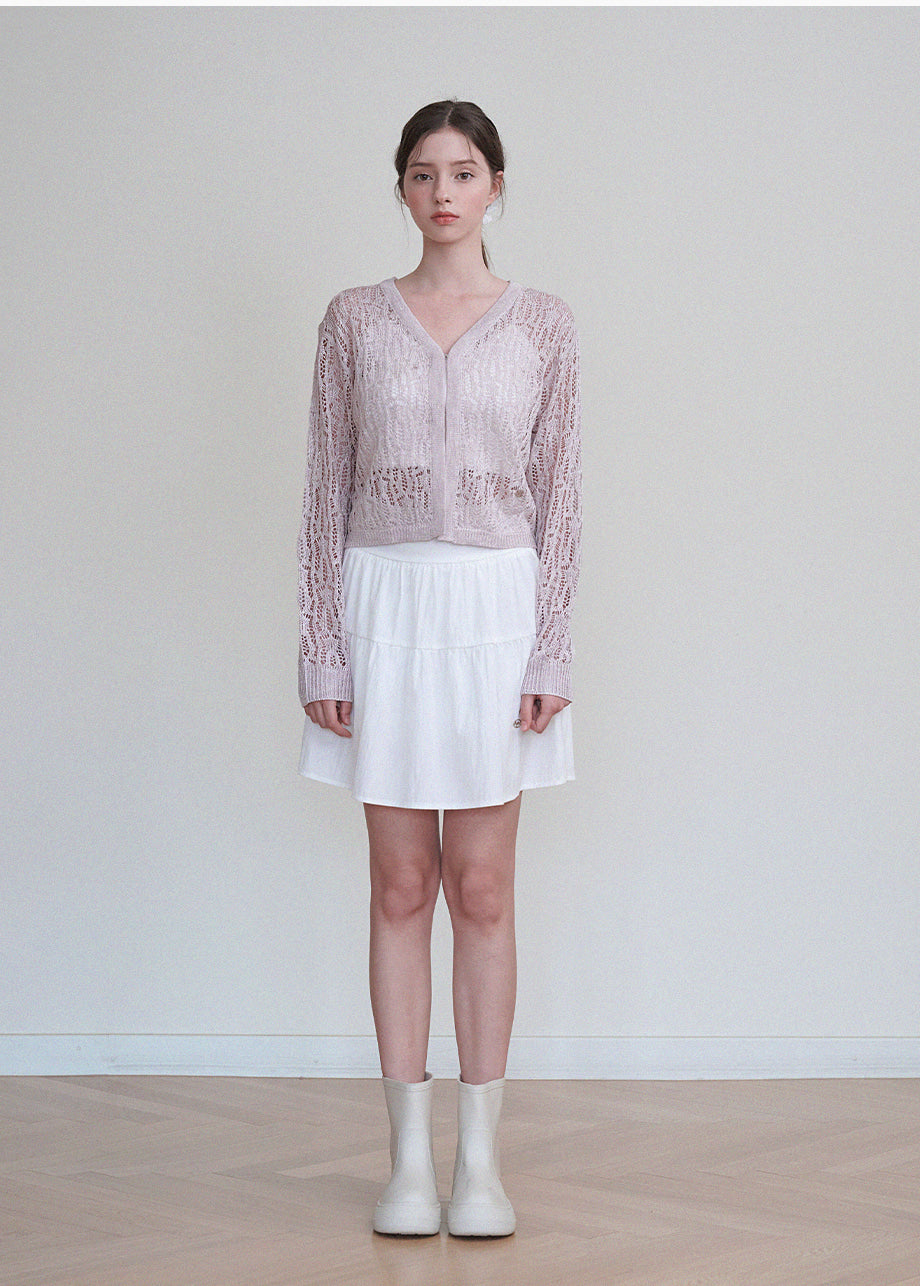 フェミニンな雰囲気の長袖カーディガン。通気性の良いニットと控えめなテクスチャーが、春夏の軽い羽織りに最適です。*装飾や特殊なデザインが施された製品のため、クリーニング専門店でのお手入れをおすすめいたします。