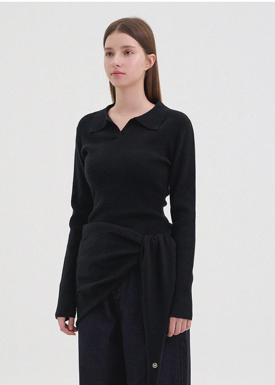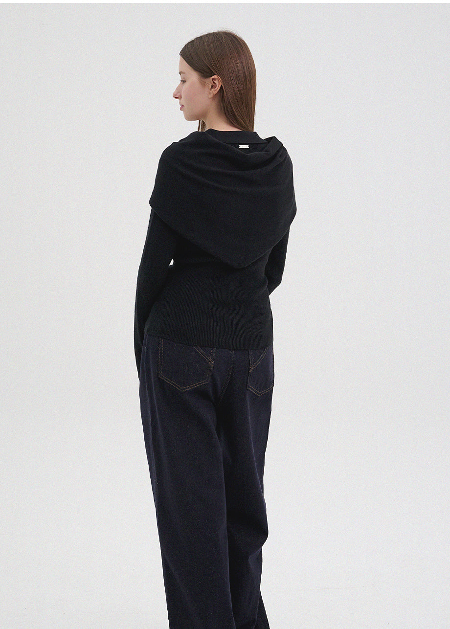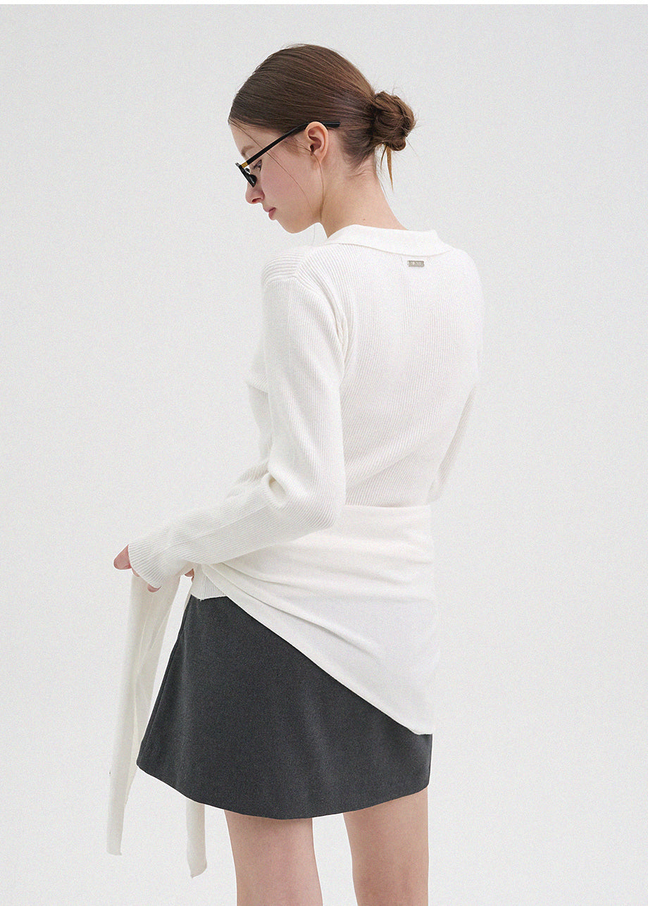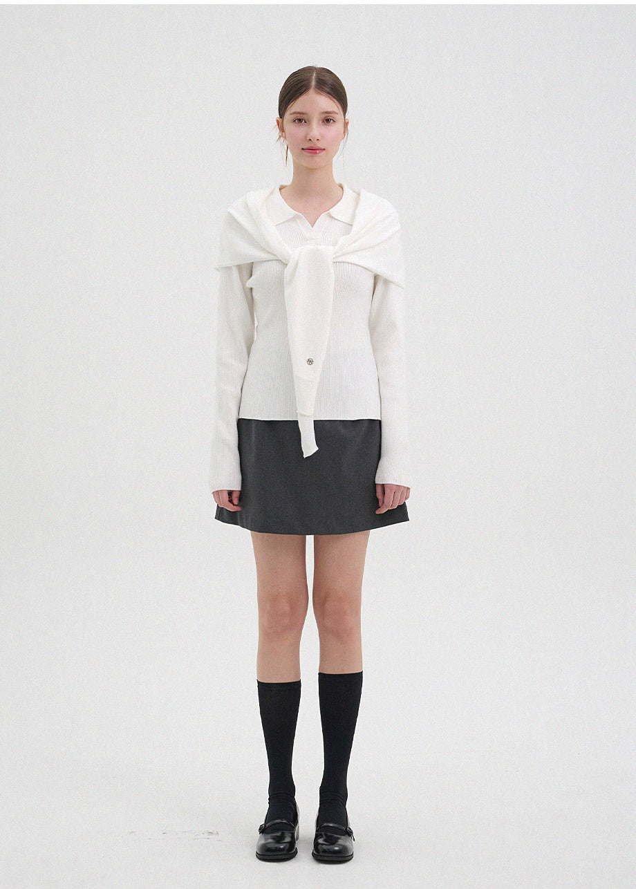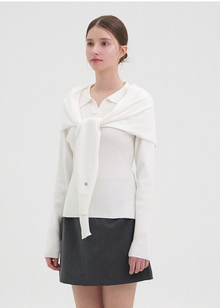 クラシックカジュアルムードのニット。柔らかく伸縮性に優れたリブ編み素材を使用し、肌にやさしく暖かく快適な着心地が魅力。軽やかな着用感で、秋は一枚着として、冬は厚手アウターのインナーとしても活躍します。オープンカラーのデザインで首元もすっきり。セットのスカーフは肩掛けやウエストマークなど、アレンジ次第でさまざまなスタイリングを楽しめます。後ろ襟元のペンダントディテールで仕上げ、上質感をプラスしました。*装飾が施された製品のため、クリーニング専門店でのお手入れをおすすめいたします。