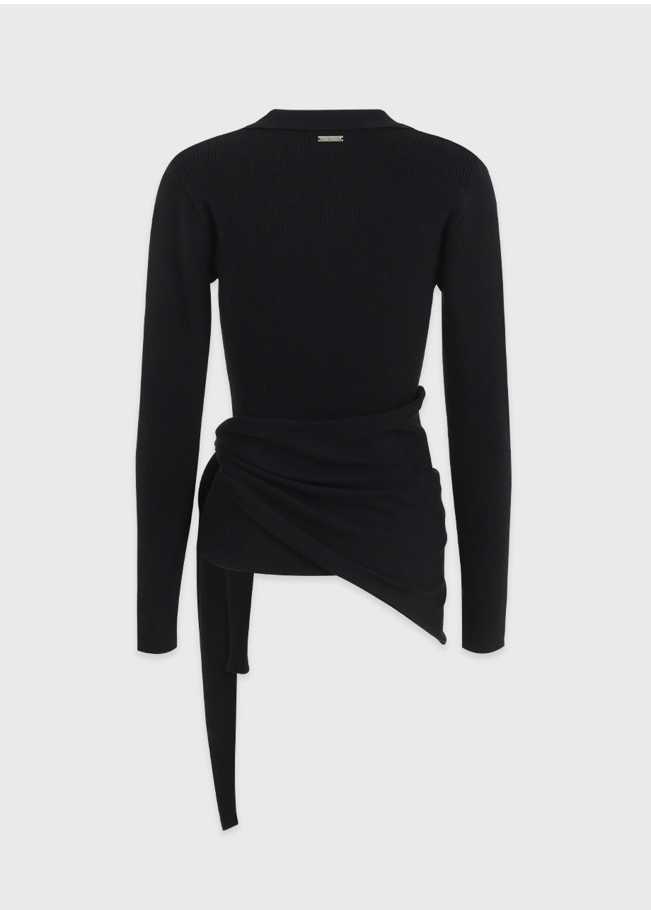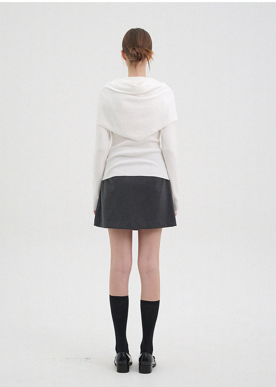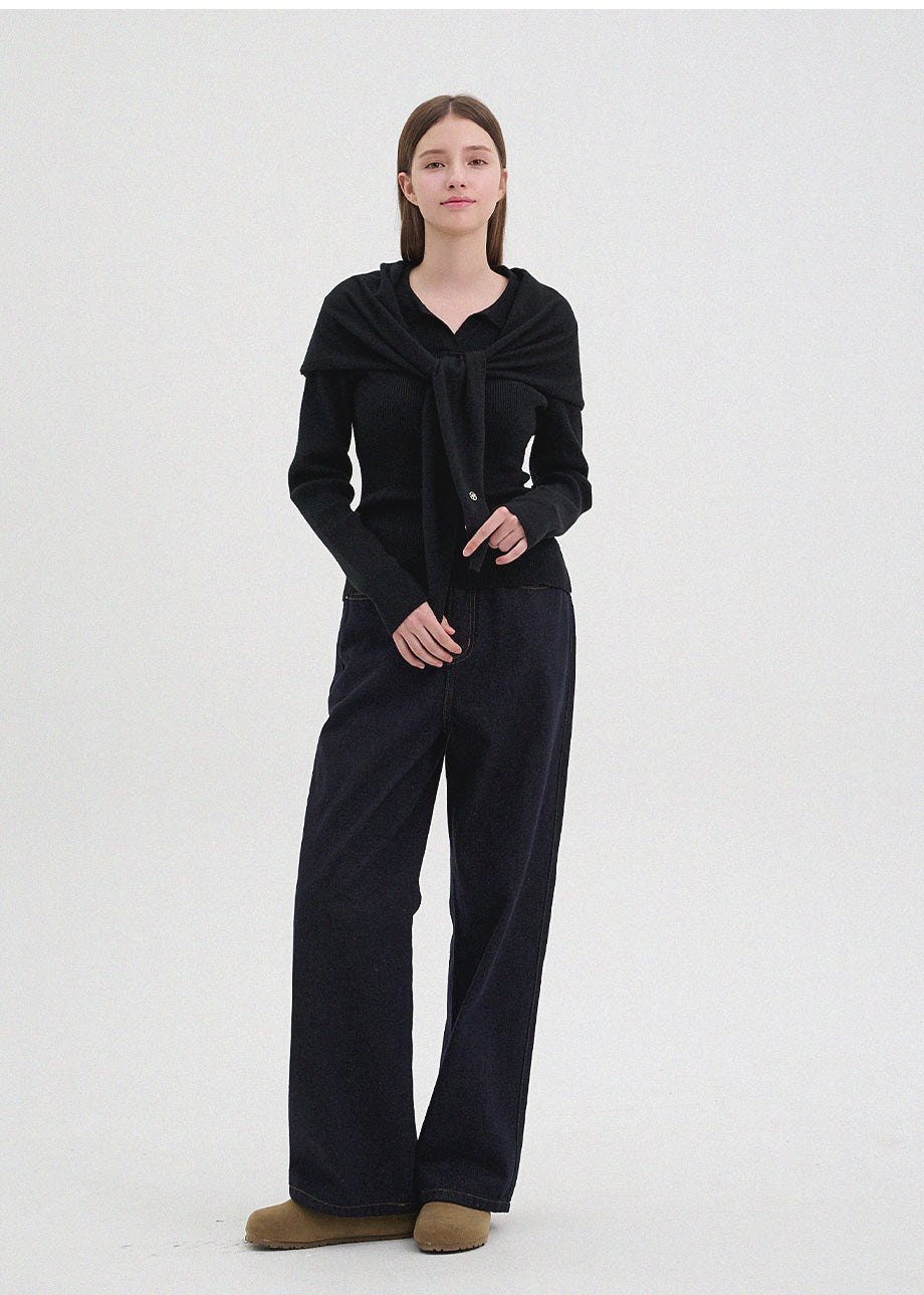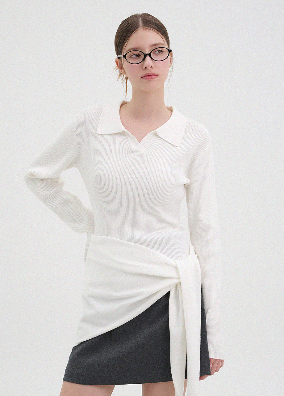 クラシックカジュアルムードのニット。柔らかく伸縮性に優れたリブ編み素材を使用し、肌にやさしく暖かく快適な着心地が魅力。軽やかな着用感で、秋は一枚着として、冬は厚手アウターのインナーとしても活躍します。オープンカラーのデザインで首元もすっきり。セットのスカーフは肩掛けやウエストマークなど、アレンジ次第でさまざまなスタイリングを楽しめます。後ろ襟元のペンダントディテールで仕上げ、上質感をプラスしました。*装飾が施された製品のため、クリーニング専門店でのお手入れをおすすめいたします。